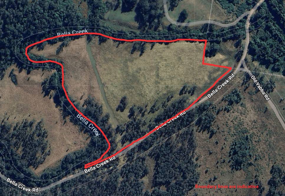 Located at the start of Bella Creek Road, this 28-acre property (11.69 Hectares) is suitable for cattle or horses and has a pretty outlook with the Bella Creek hills providing the backdrop all round.  The block has recently been burnt off, in preparation for spring growth, has a few great house sites to position your new forever home and is fenced along the road.