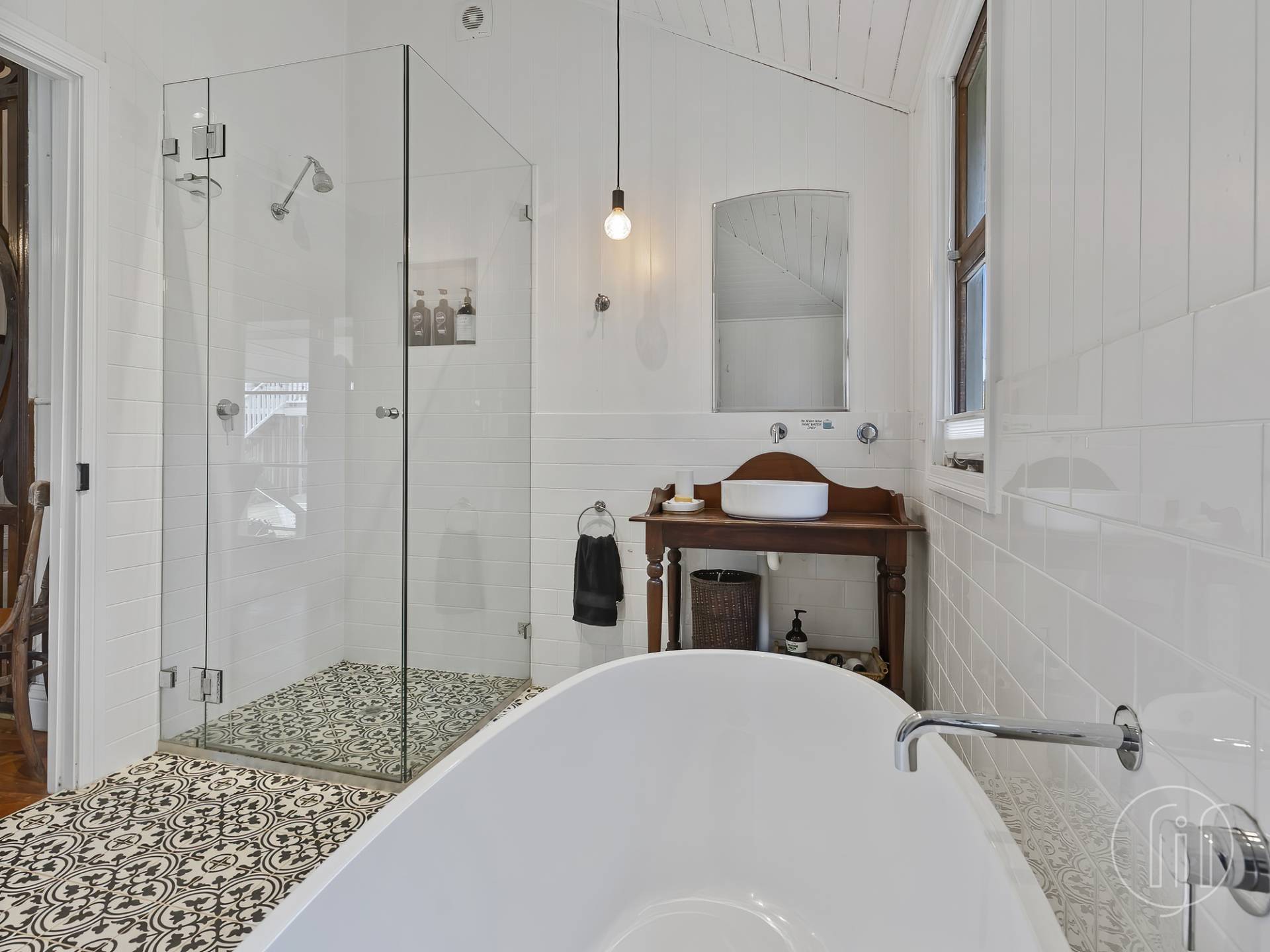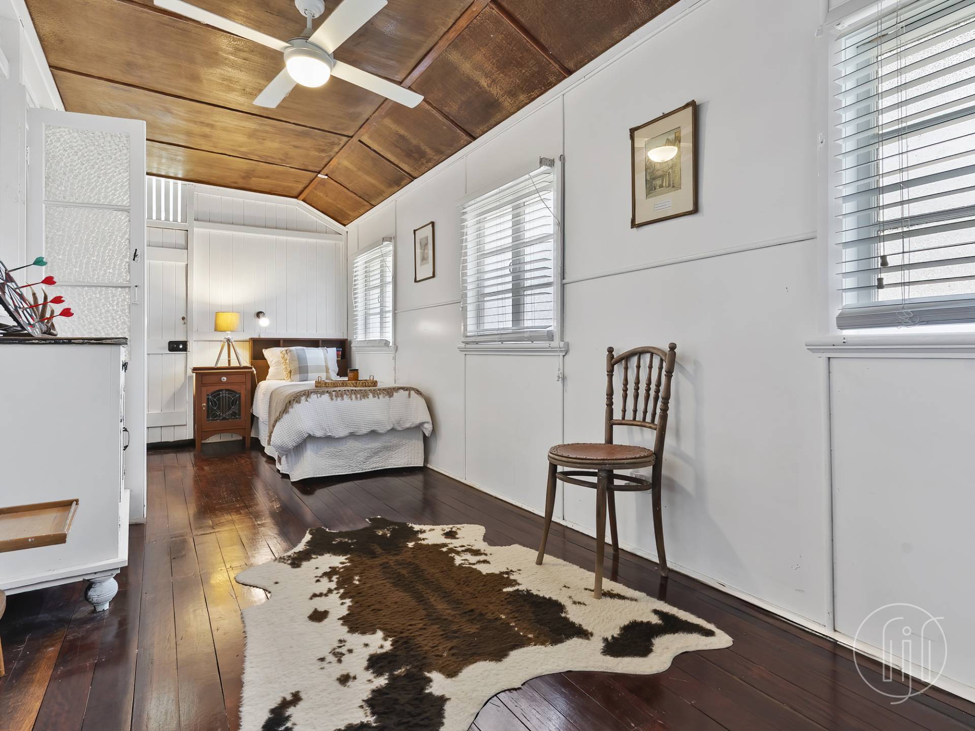 The main residence is a beautifully maintained Queenslander showcasing everything we love from this style of home.  Polished timber floors, high ceilings, VJ walls and ceilings and stunning period trims feature right through.