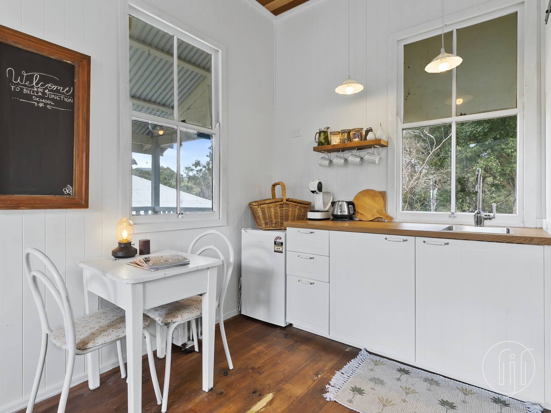 Sitting proudly behind the home you’ll find a stunning studio.  Originally the Bella Junction Provisional School House, this dwelling was relocated here in 1932 and has since been meticulously renovated to capture the old-time charm together with the Queenslander flair.  Polished timber floors, VJ walls, and a high timber ceiling plus kitchenette, good sized bathroom and your own covered verandah to relax, ponder and dream.