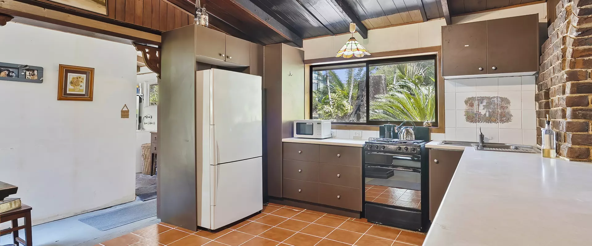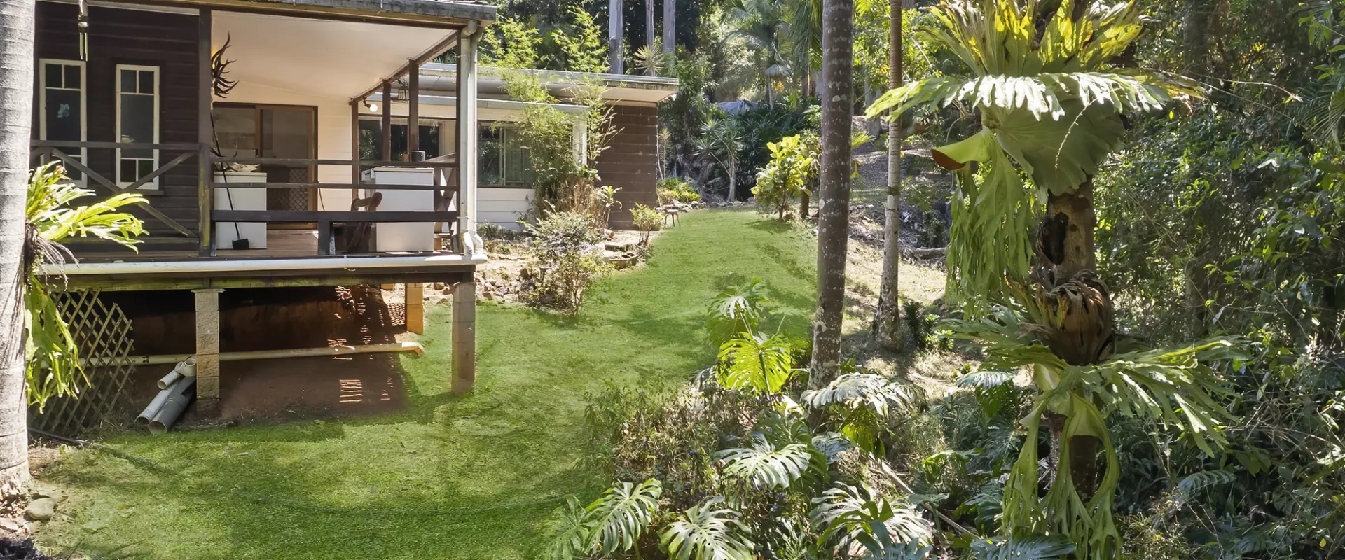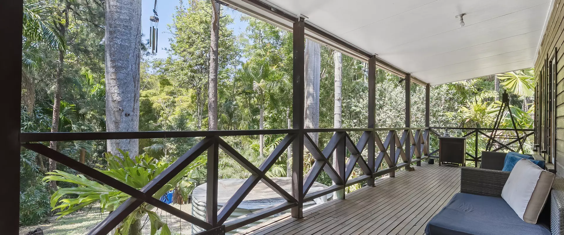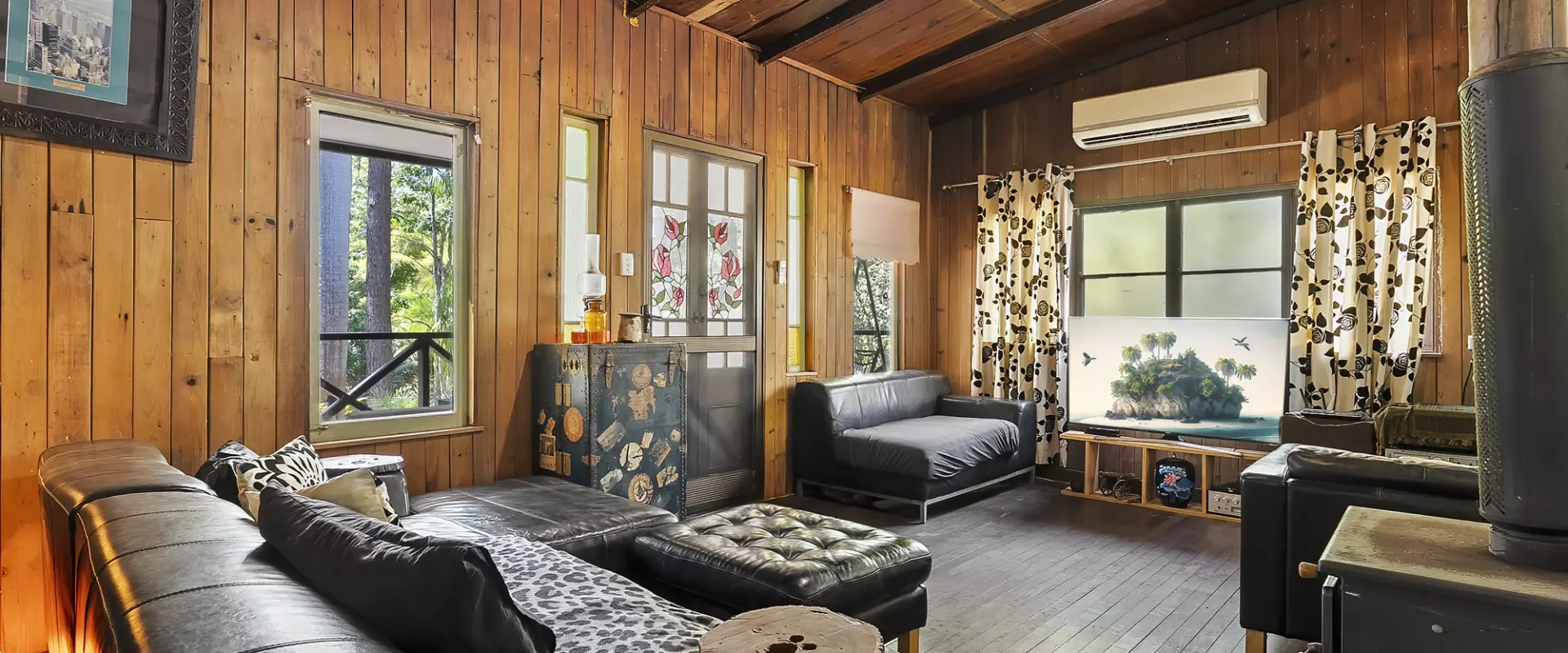 Inside, you’ll find three bedrooms, a spacious bathroom and laundry, and a large country-style kitchen with freestanding gas cooker. There's a separate dining room and a generous lounge featuring a slow-combustion heater for winter and reverse-cycle air conditioning for the warmer months. Both the master bedroom and lounge open directly onto the wide covered veranda, where you can sit back and enjoy the tranquil rainforest views.
