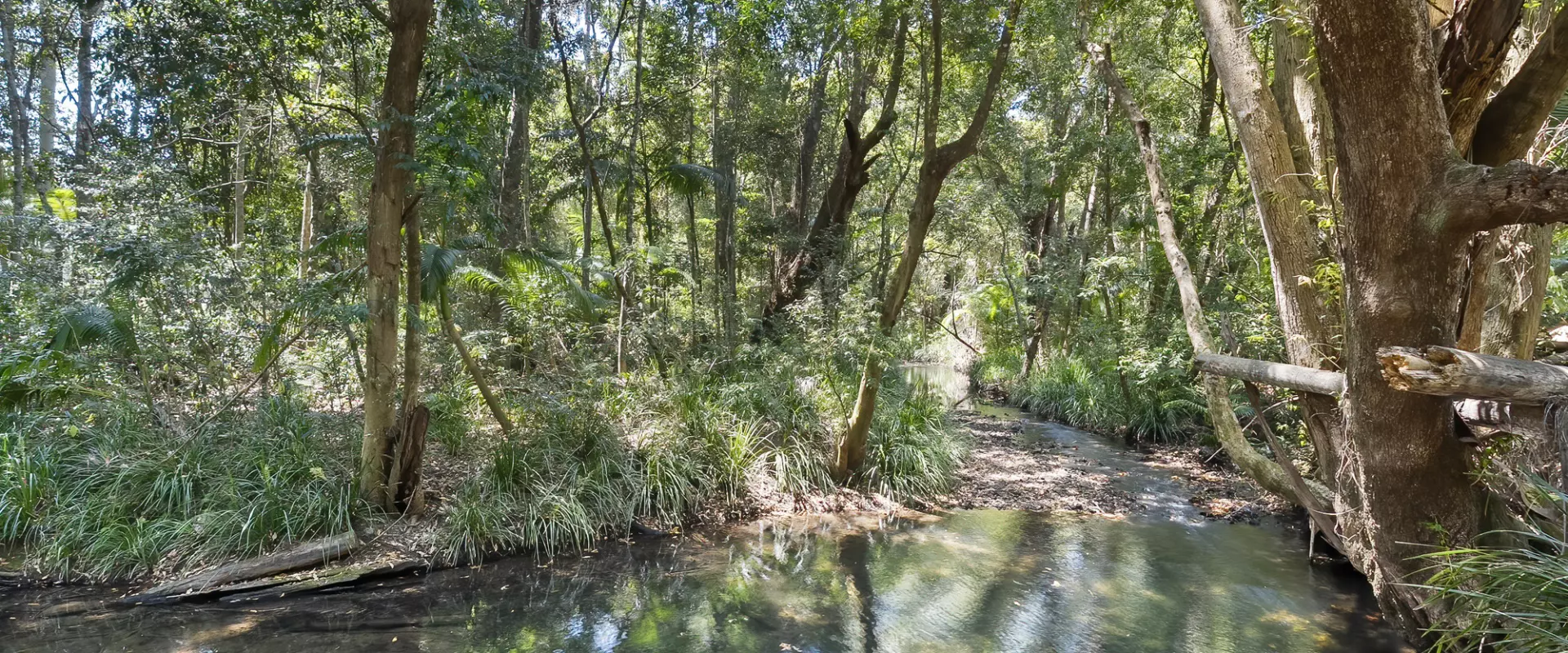 Coonoongibber Creek follows the boundary of this the property before meeting Araucaria Creek, creating clear swimming holes and shady pockets for relaxing on warm days. Look out for the platypus in the water and listen to the birdlife in the trees. A Morton Bay Fig tree completes the setting, adding a sense of permanence and character to the landscape.