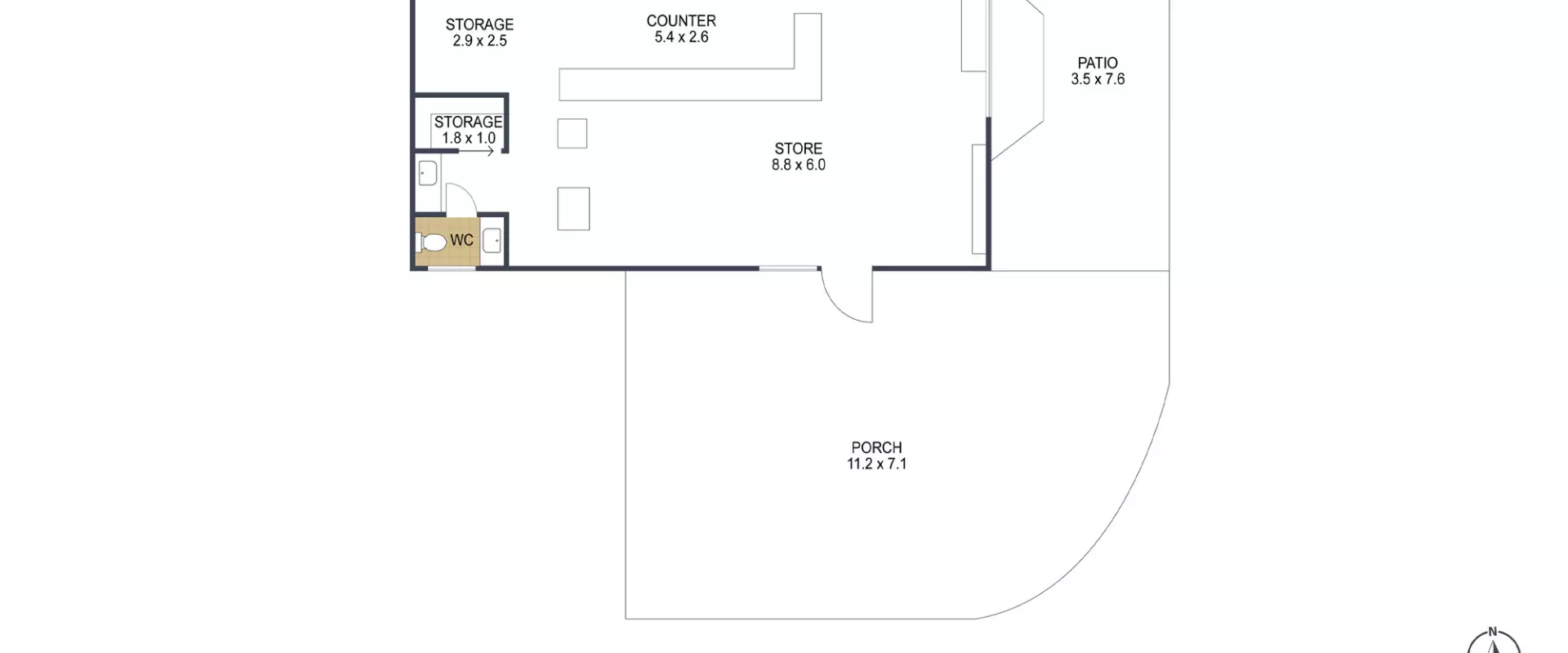 Inside, the open-plan layout is bright and functional, complemented by toilet and kitchenette facilities. The tenancy also includes a counter and fitted wall displays, making it easy to move straight in and start trading. Additional improvements include approximately 10m² of covered storage plus a small lock-up shed, ideal for stock or equipment.