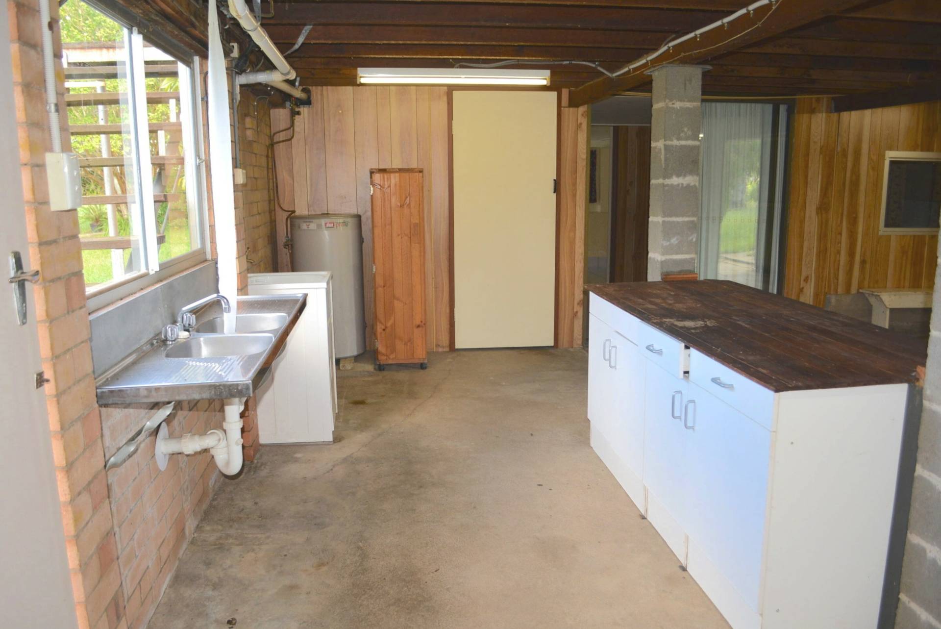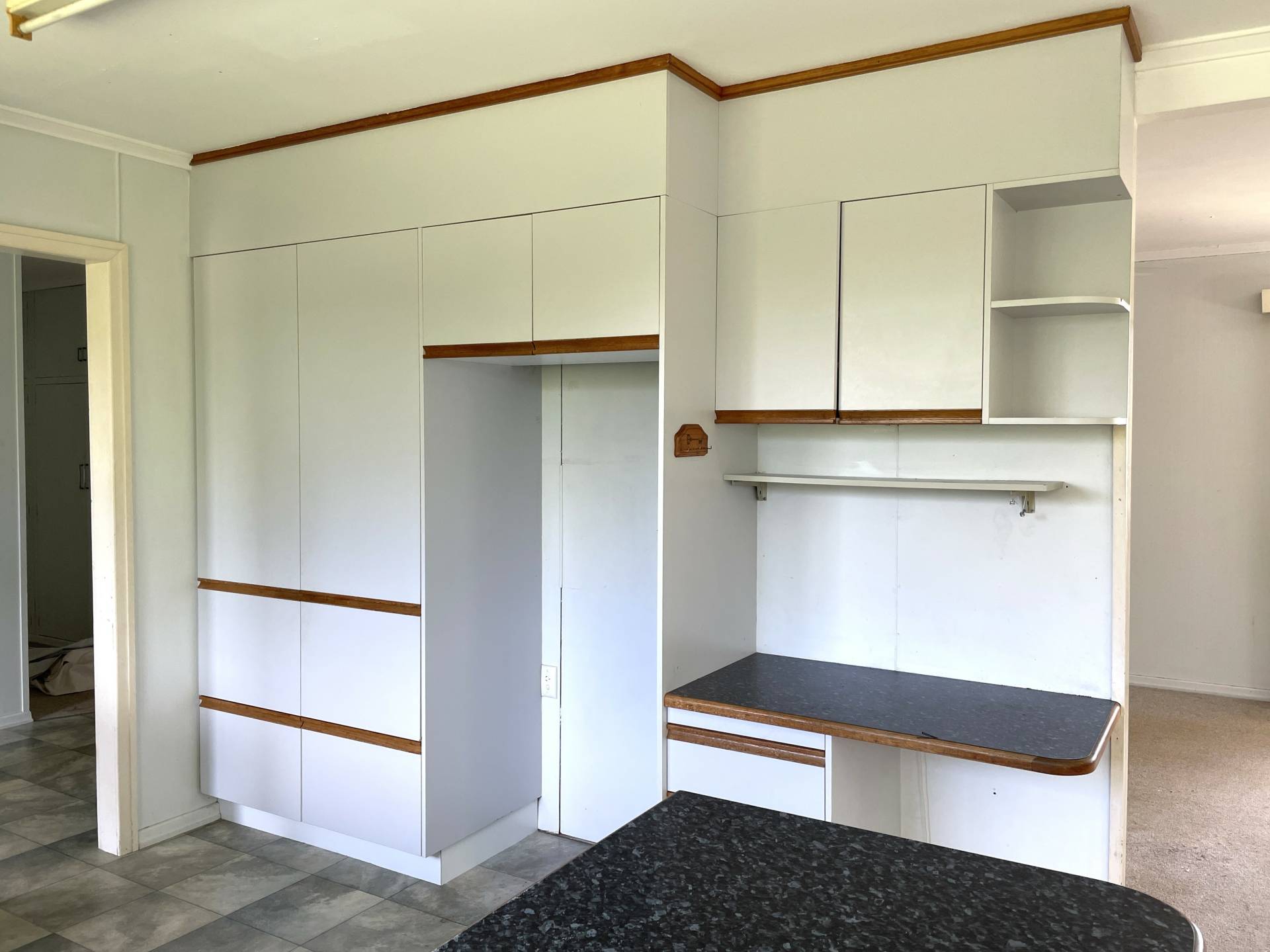 *  Kitchen with ample cupboard space, gas cooktop & under bench electric oven, plus small breakfast bar.