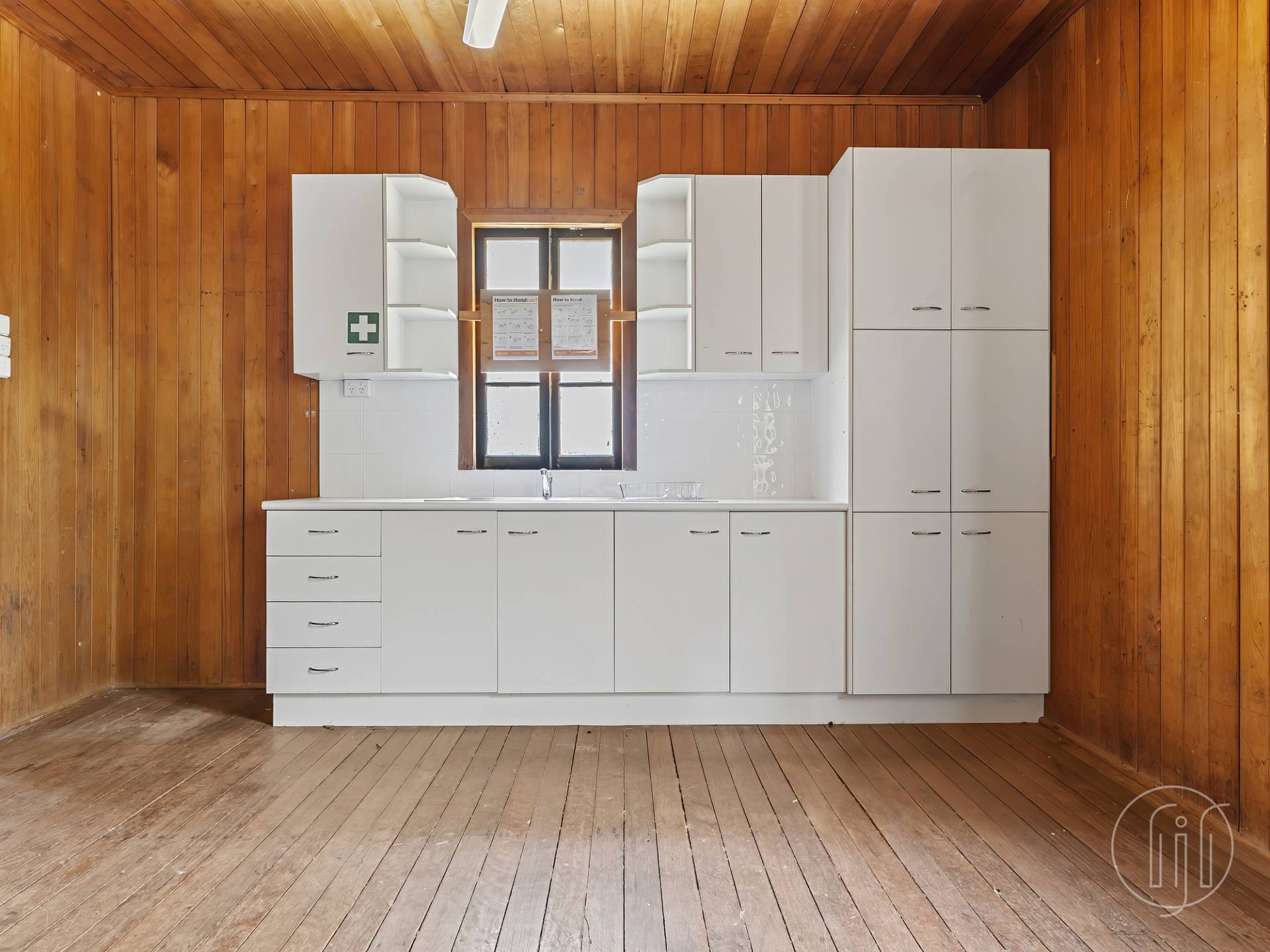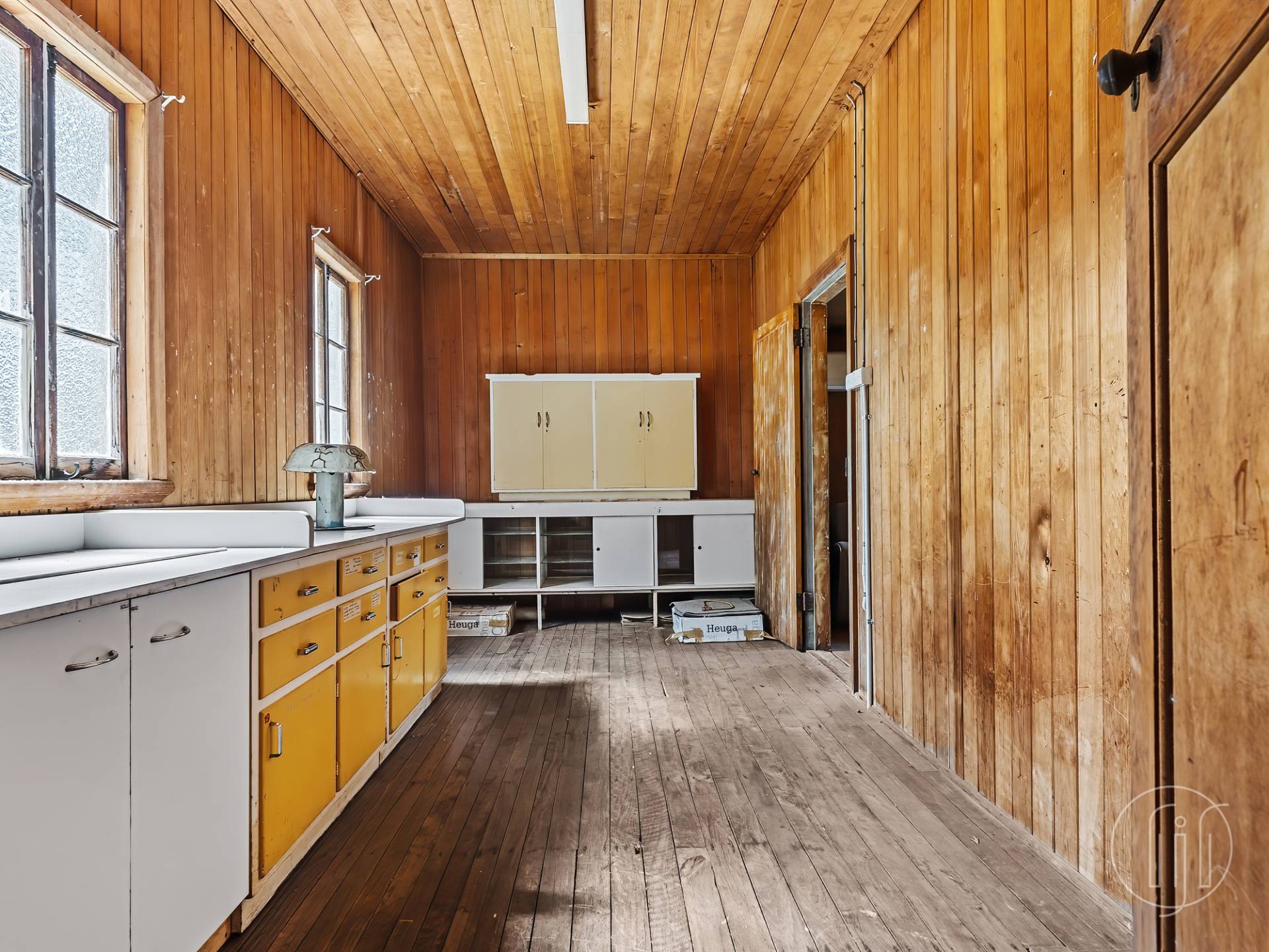 ·  A large open space accessed directly from the main entrance, with timber-lined VJ walls & ceilings and original timber floors, adjoining the kitchen area – a generous space full of warmth and history