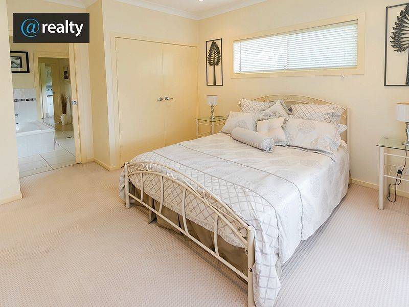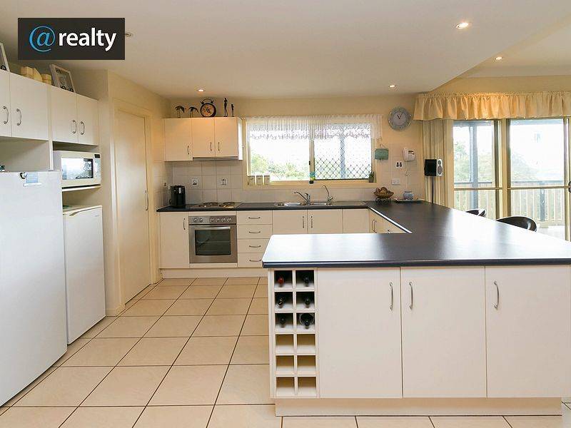 You enter a wide entry foyer, via double doors, and go through to a fully tiled, open plan living area. The kitchen, separated from the living area by a breakfast bar, has heaps of bench space, electric cooking and good storage that includes a walk-in pantry. Living areas have brightly painted feature walls, air conditioning and excellent views. The main bedroom, separated from the other two, is air conditioned, has a large walk-in-robe and en-suite. The second bedroom has direct access to the main bathroom. Every bedroom has sliding door access to the veranda.