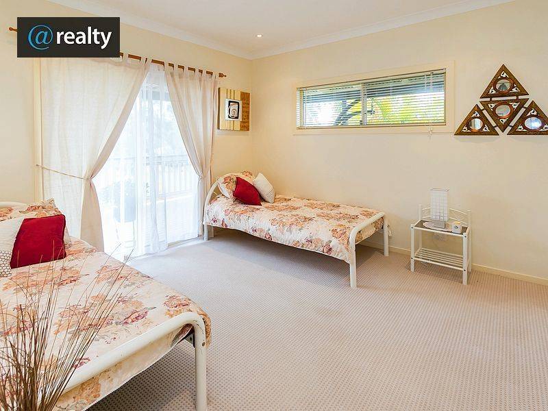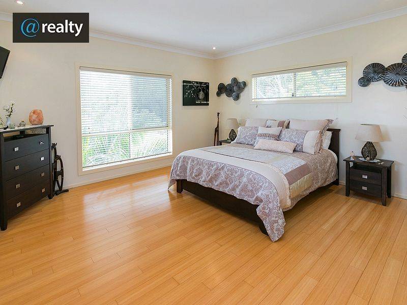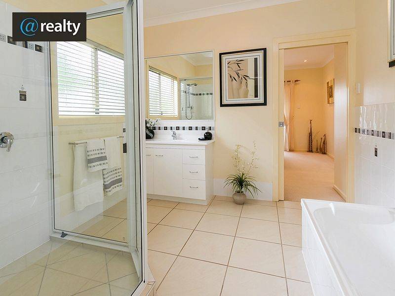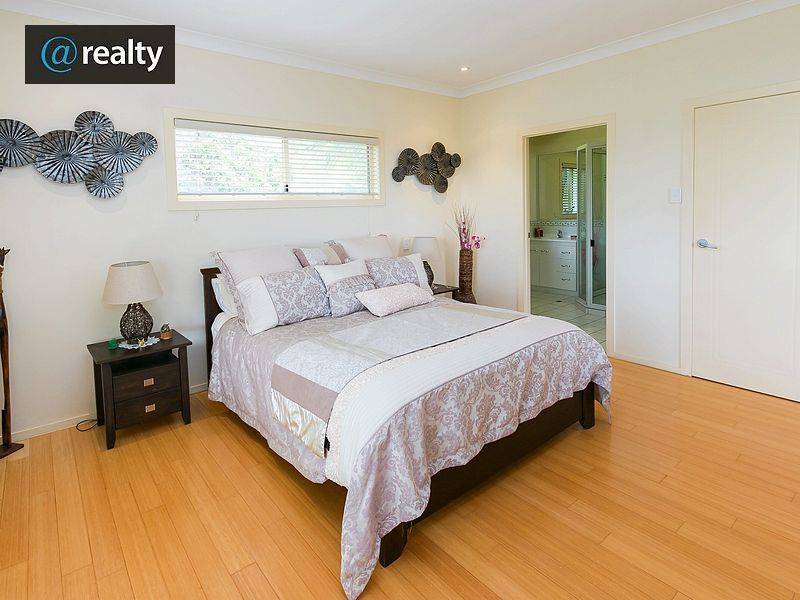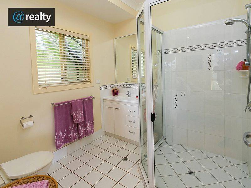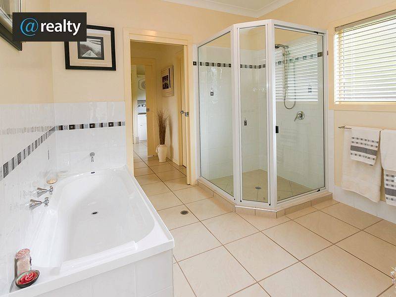 Stairs from the veranda lead to a pool with a sun deck, surrounded by tropical plants, and then on to a 5 bay garage. At approximately 15m X 7m, this shed will cater for all your workshop and storage needs.