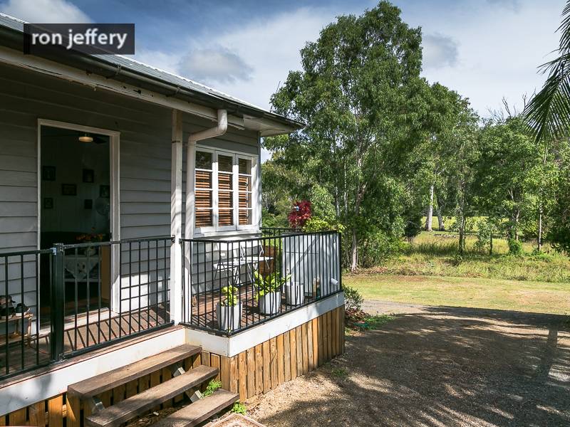 This period home, recently re-located to Kandanga, sits in a prime position. It is now opposite the new Kandanga Hotel and a short stroll from the Post Office and General Store. Kandanga is in the middle of the Mary Valley, 20 minutes from Gympie, 40 minutes from the coast at Noosa and 2 hours from the middle of Brisbane. The long 1,700m2 block feels much larger because it adjoins the Valley Rattler rail line.