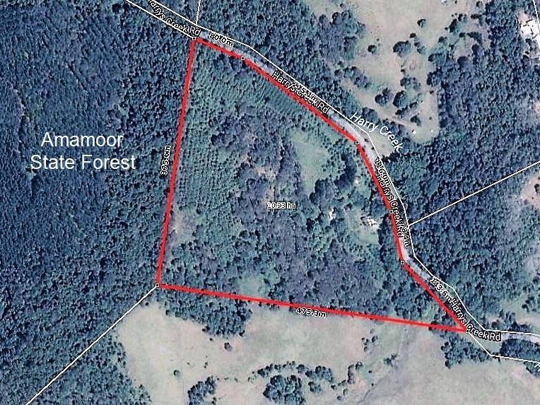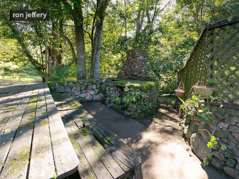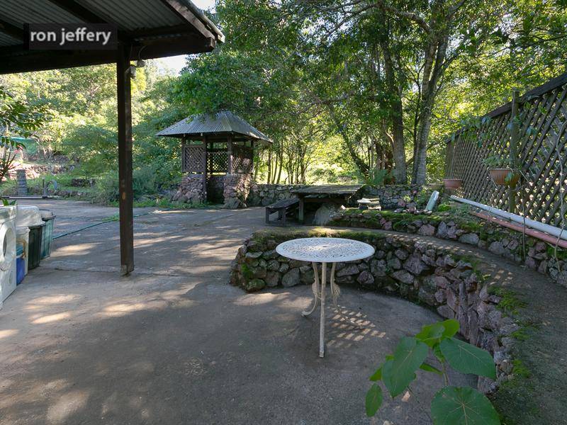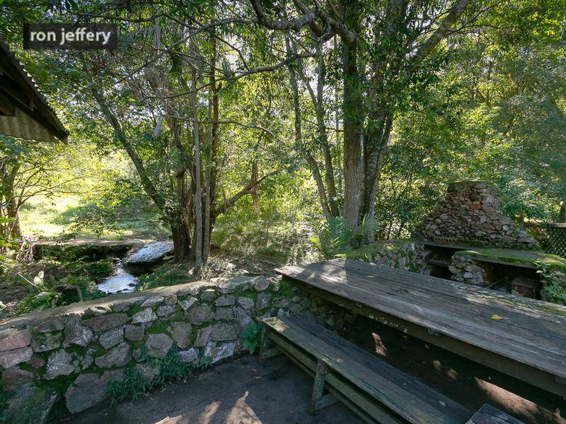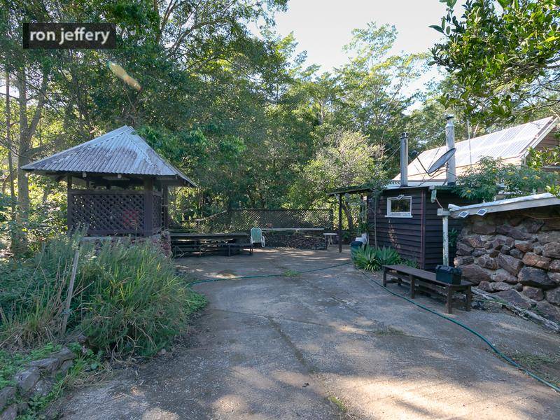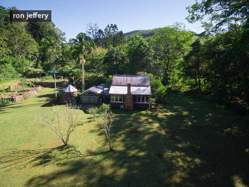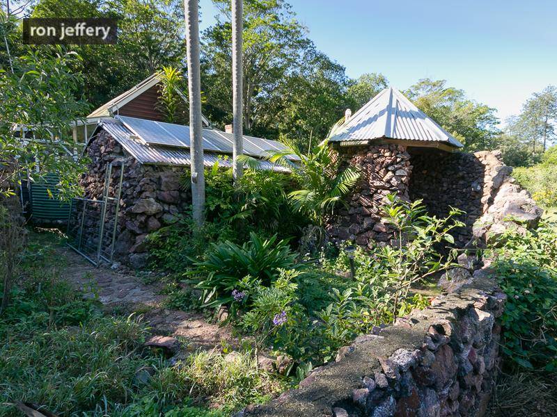 The land, totalling 27 acres (10.93 ha), is naturally treed, apart from an extensive orchard that includes Mangos, Macadamias and Citrus trees, and the clearing surrounding the cottage. It adjoins the forest. While affectionately known as Amamoor Stone House, the home is a cute timber cottage, complemented by extensive stone walls and stone outbuildings.