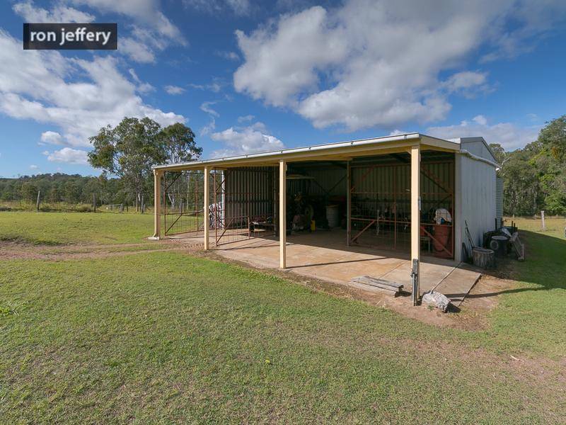 Outbuildings include an extra-long double garage and a great semi-open machinery shed. The property is fenced into 6 paddocks, has a set of cattle yards and is well watered by tanks, a dam and of course Yabba Creek.