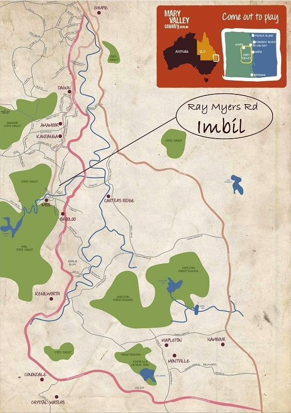 Imbil is set on the banks of Yabba Creek, adjoining Imbil State Forest and is the gateway to Borumba Dam. 17 Ray Myers Rd is just 2 km from the village of Imbil.