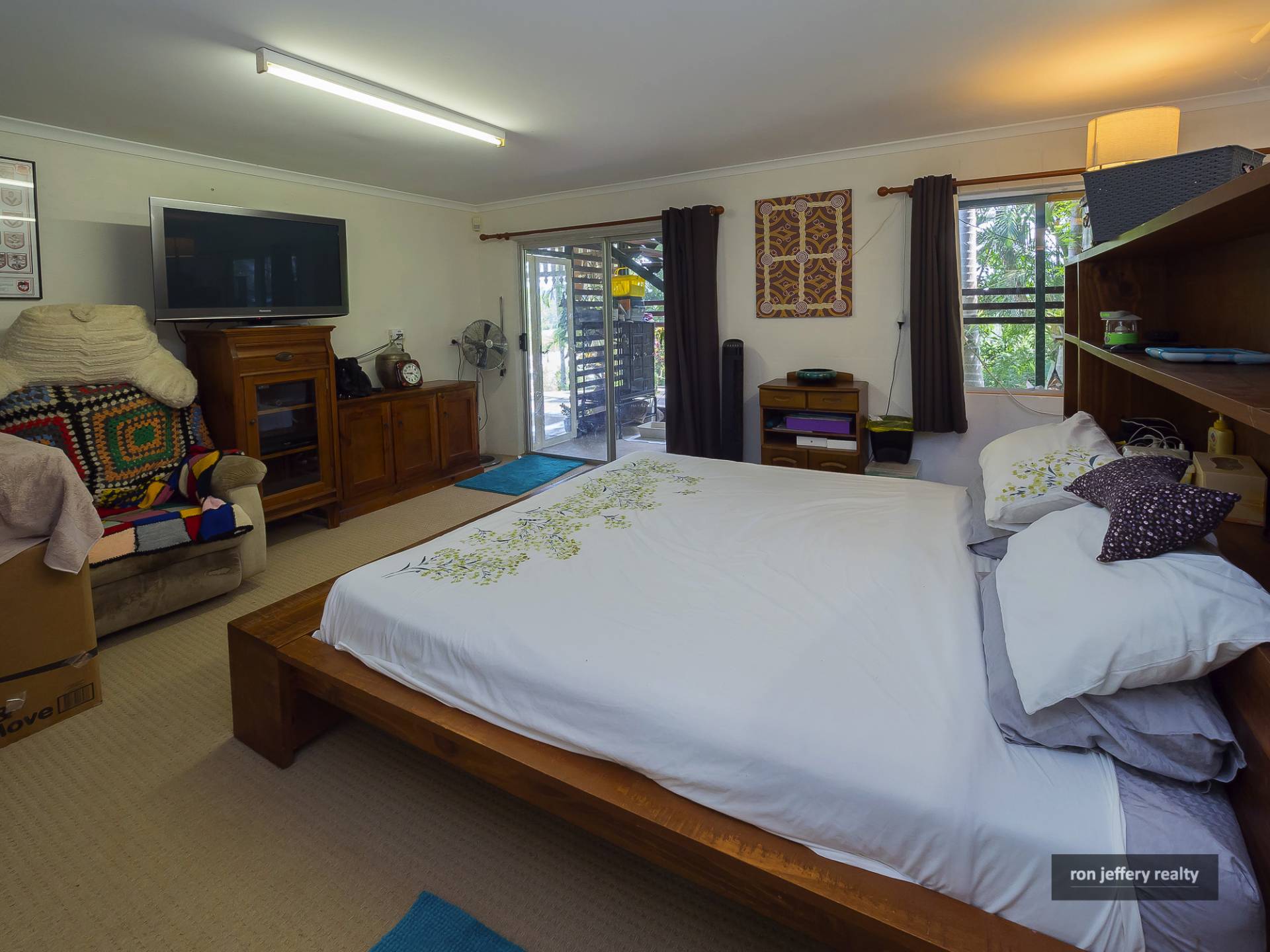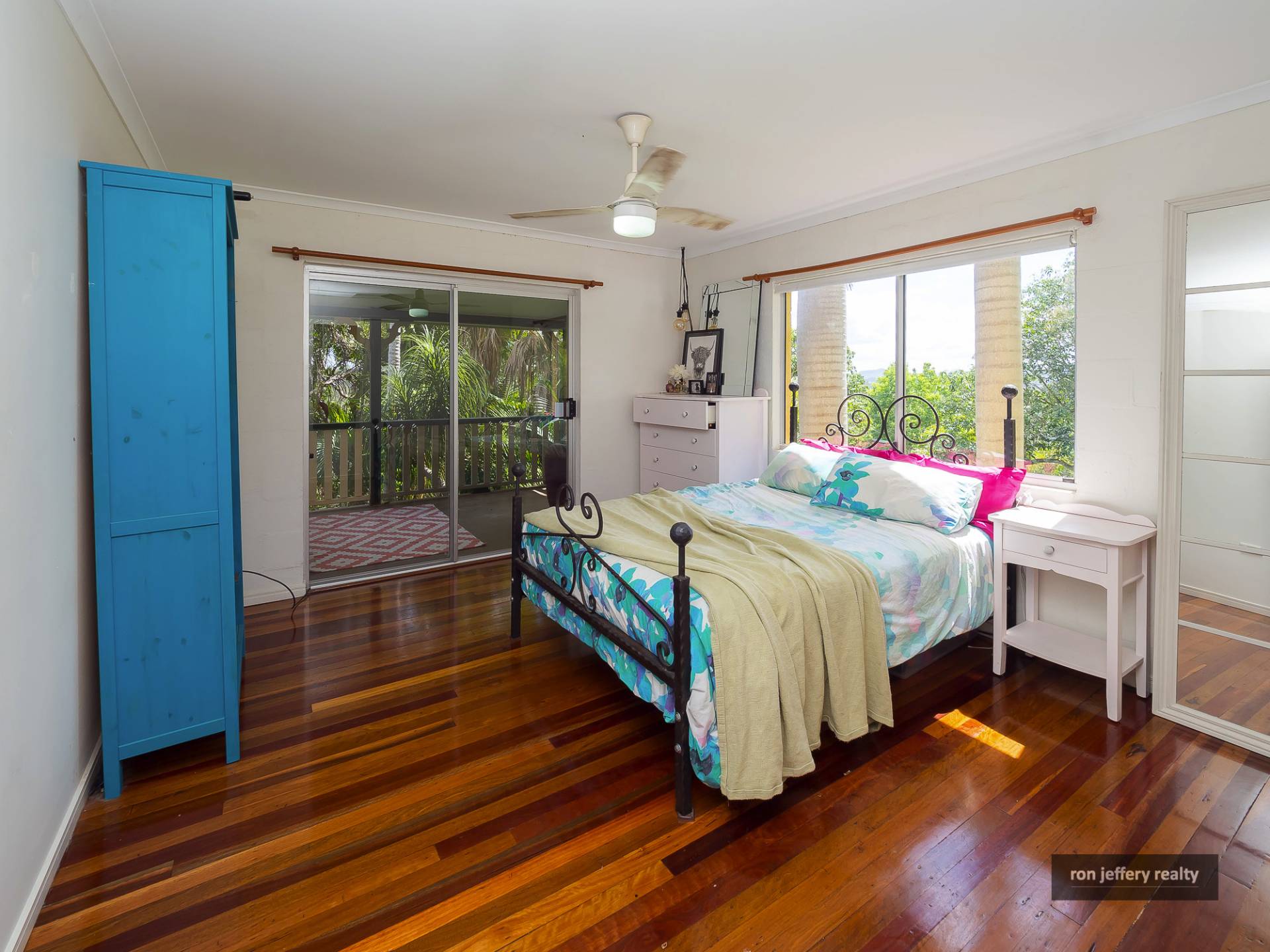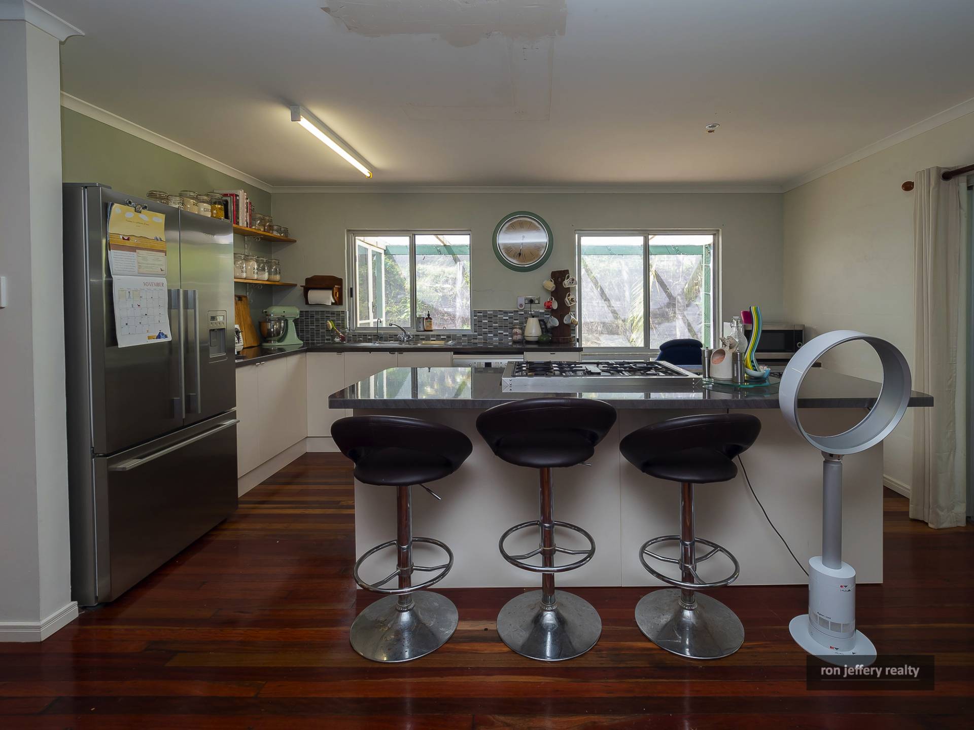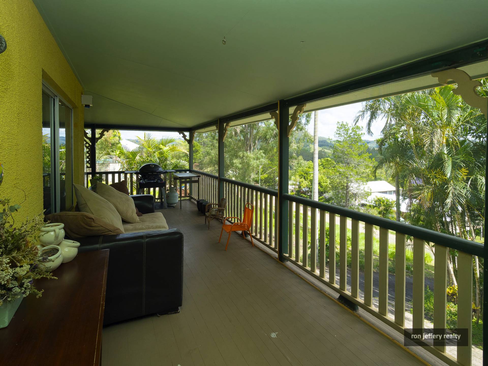 Upstairs, there is a wide veranda on two sides of the home offering extensive views and plenty of entertainment options. You enter the home straight into a large open plan living room with polished timber floors and air conditioning. In fact, there are timber floors right through the home.
