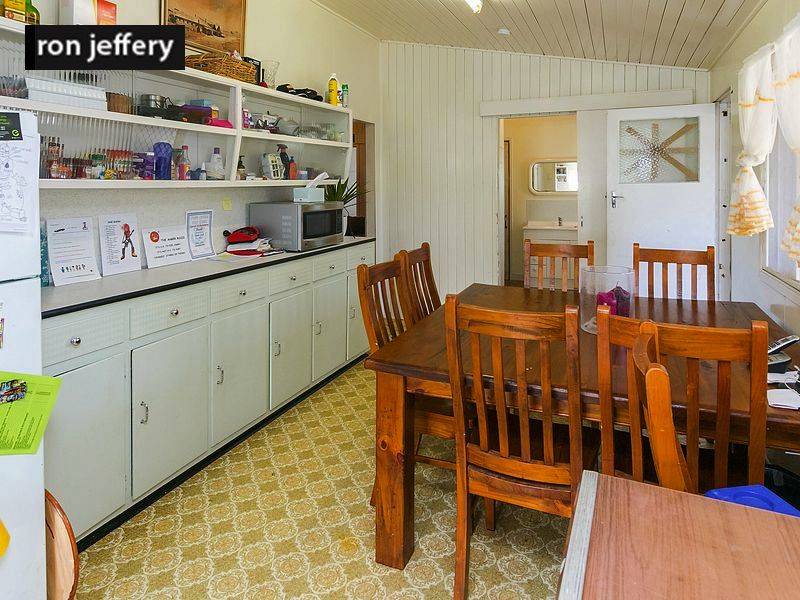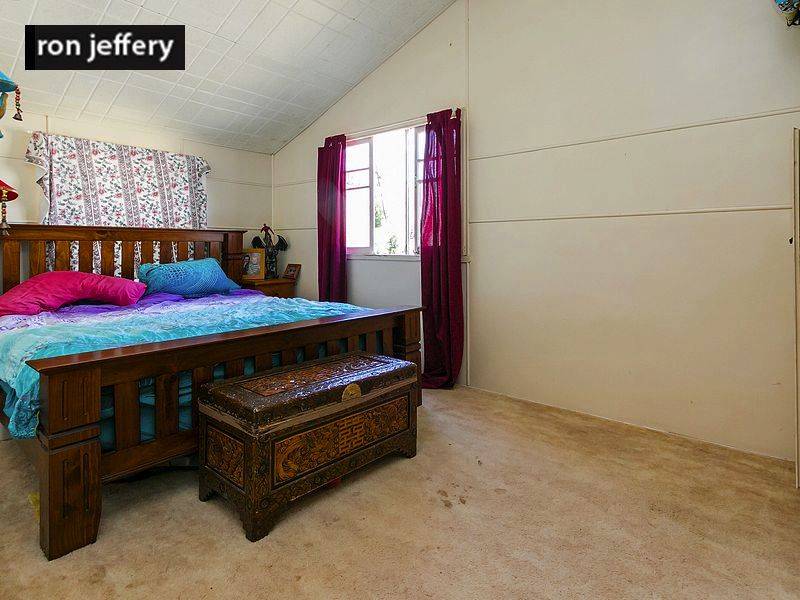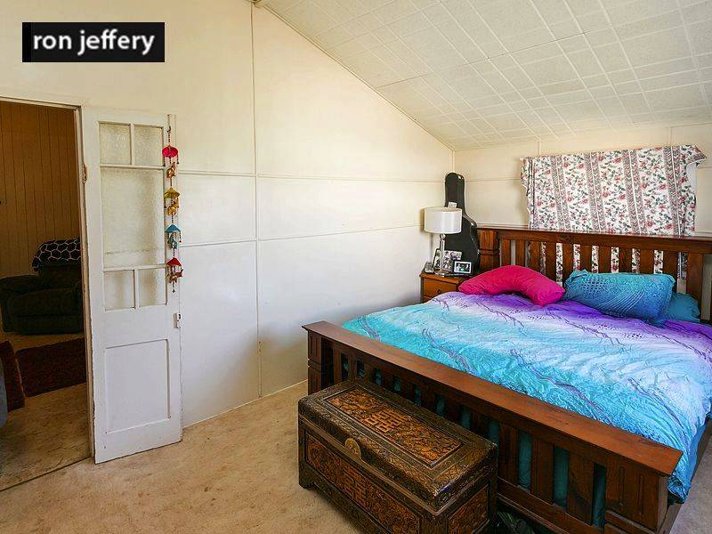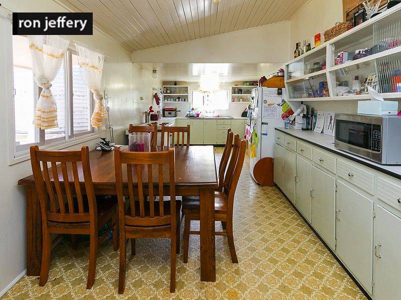 While it is not your typical Queenslander style, it does have some of the Queenslander features. It rambles like Queenslanders do! It has high, timber ceilings in the lounge room, dining room & kitchen and timber lined walls in the lounge. The combined kitchen/dining room is a long galley style while the lounge room is centrally located and gives access to the bedrooms. There is a good sized main bedroom plus two others. The bathroom has a bath and separate shower while the separate toilet has access from the rear landing.