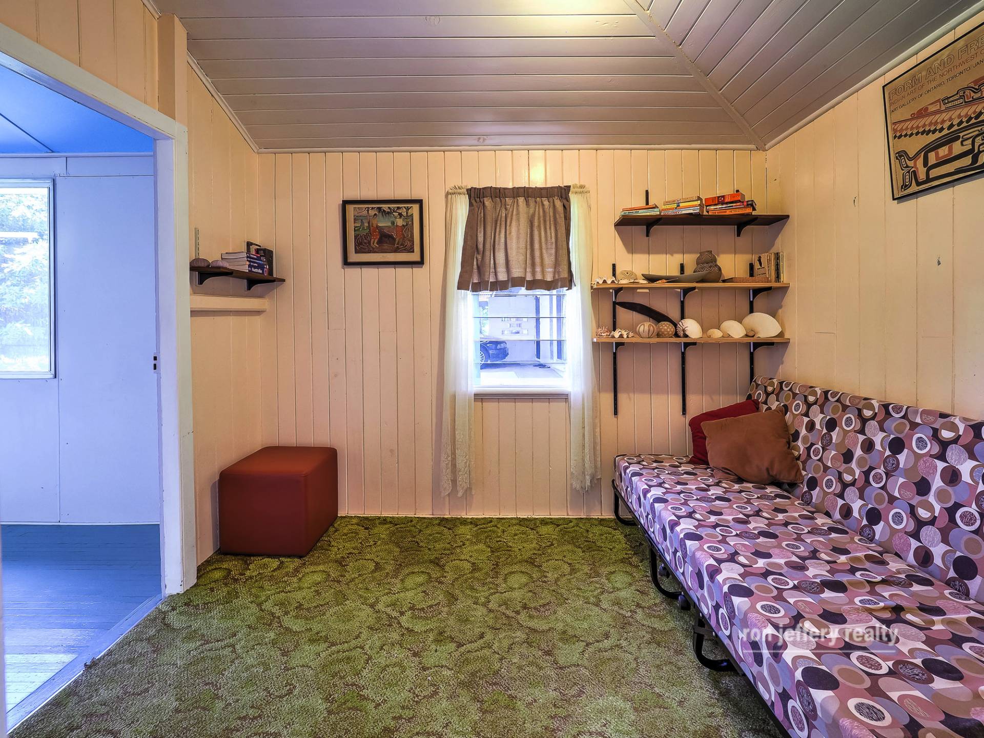 There are stairs at the front leading you to the main house, and when you’re inside, it’s a Queenslander! You arrive to a totally enclosed veranda on 3 sides. You can still see out through the continuous windows around the three sides, but it’s inside, and it adds so much room to the living space.