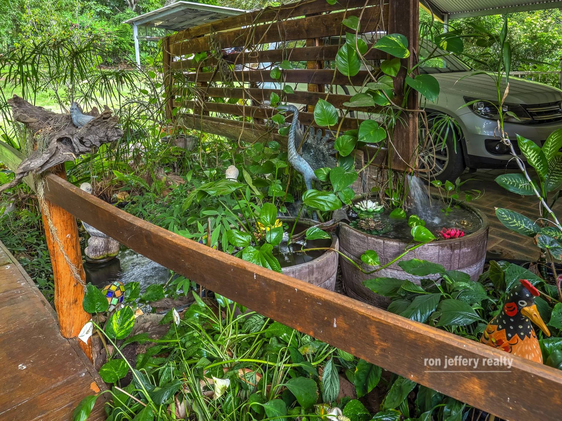 When you drive down the picturesque driveway of this property, you have no idea what is hidden within. The buildings are nestled into the garden setting, towards the rear of the 4-acre (1.76 ha) block. The garden has been almost 40 years in the making, and it shows!