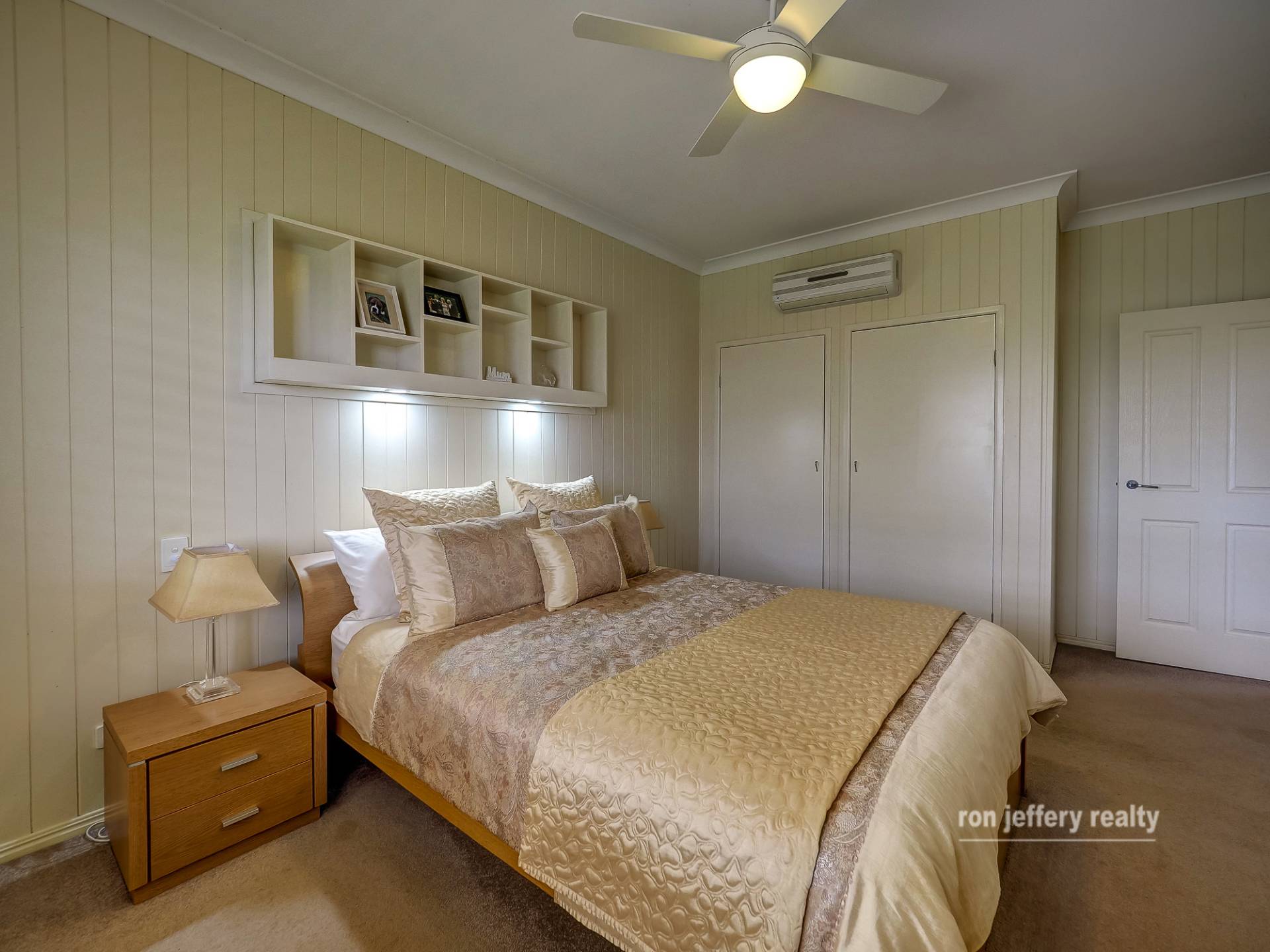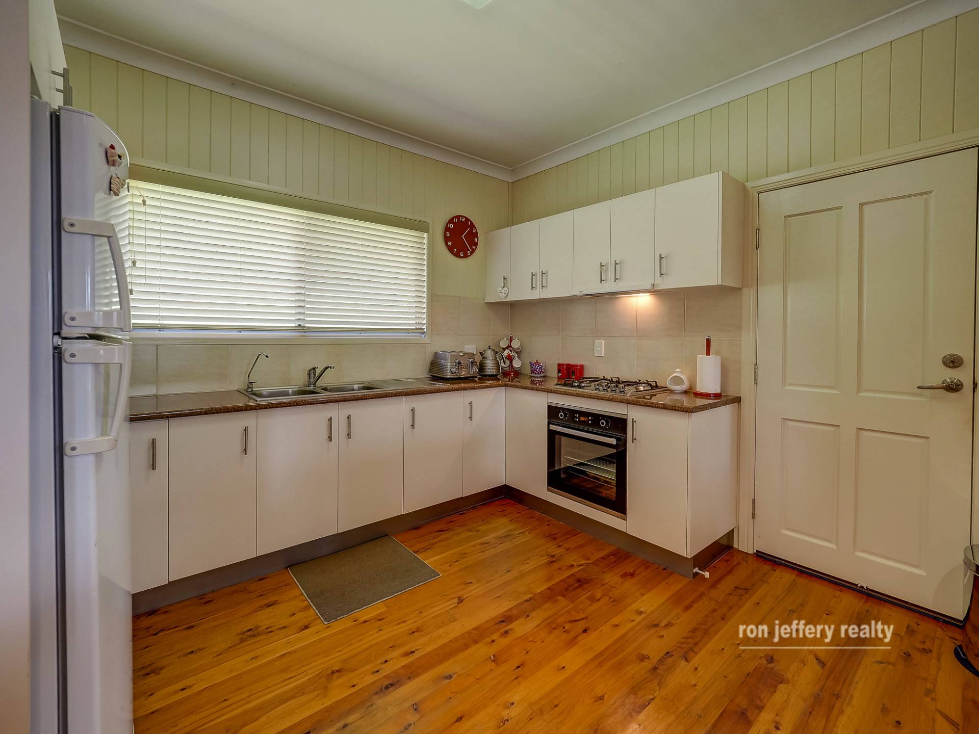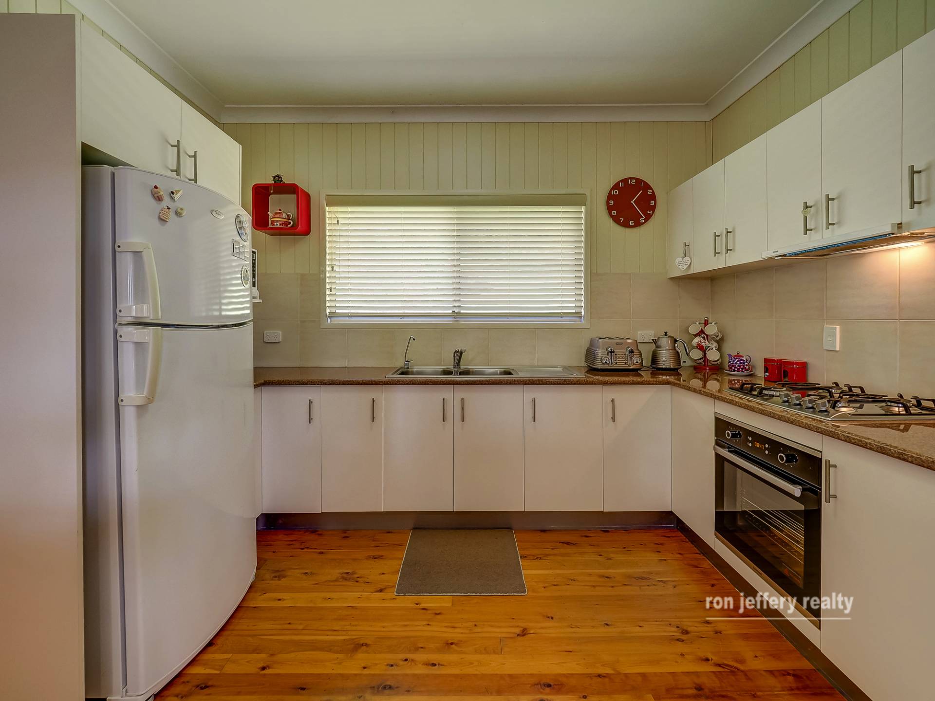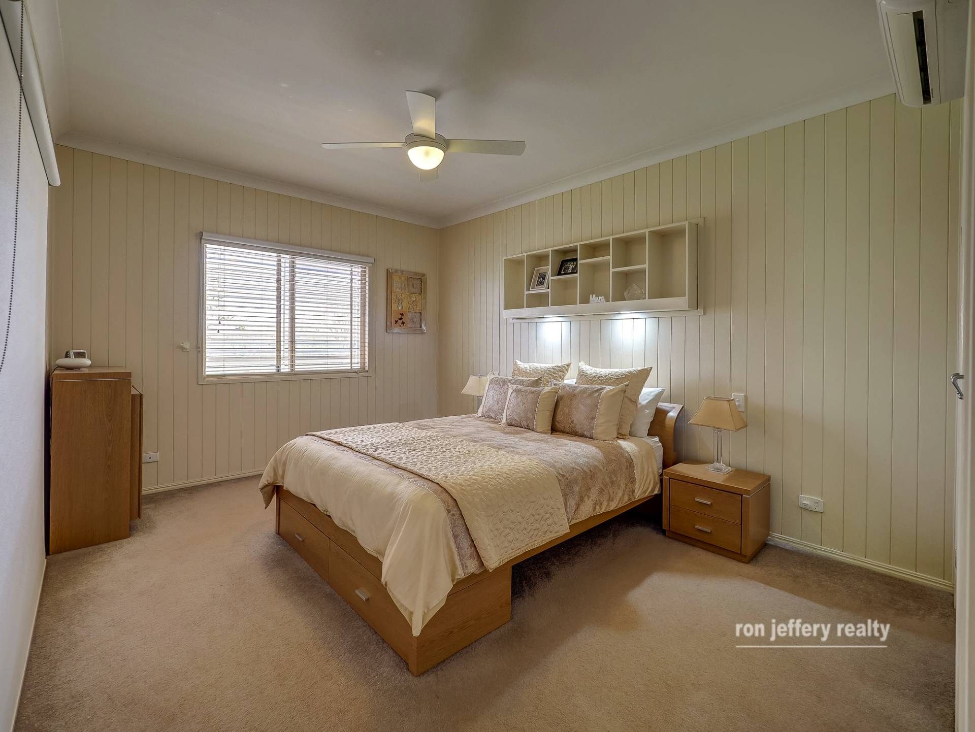 The living area is semi open plan with polished timber floors, high ceilings, VJ walls and oodles of access to the outdoors, both front and back. There are 4 sets of French doors plus two others. You’re spoilt for choice! The spacious kitchen has a gas cooktop and an island bench complete with a breakfast bar. There are 3 bedrooms upstairs, all with built-in-robes, a well-appointed main bathroom plus an extra shower and toilet in the laundry.