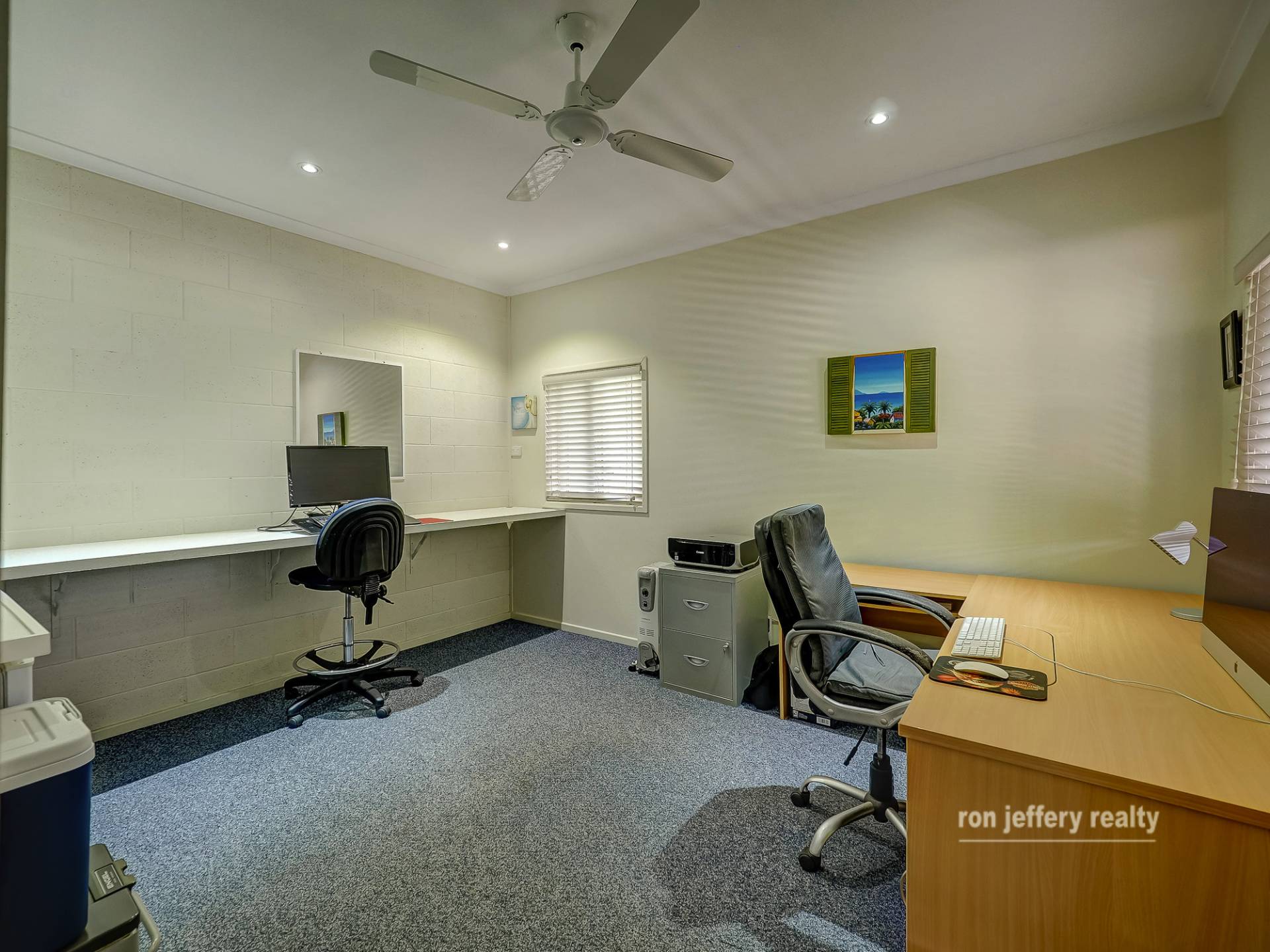 The grounds around the house are a parkland, with a sprinkling of trees. It’s on the side of a hill but level around the house. Access to inside the home is either via external stairs to the wide front veranda or internally, past the study (4th bedroom), delivering you to the living area.