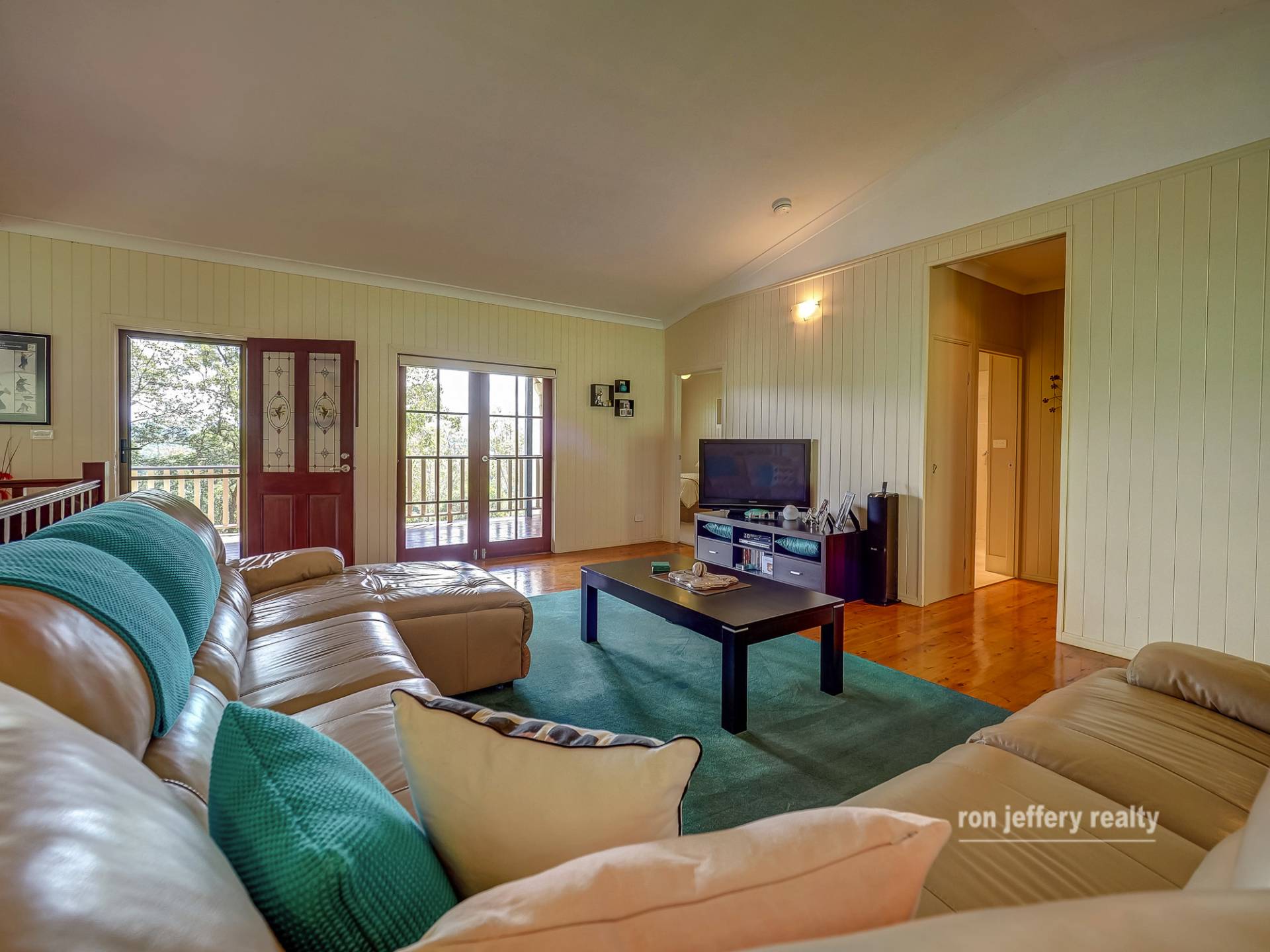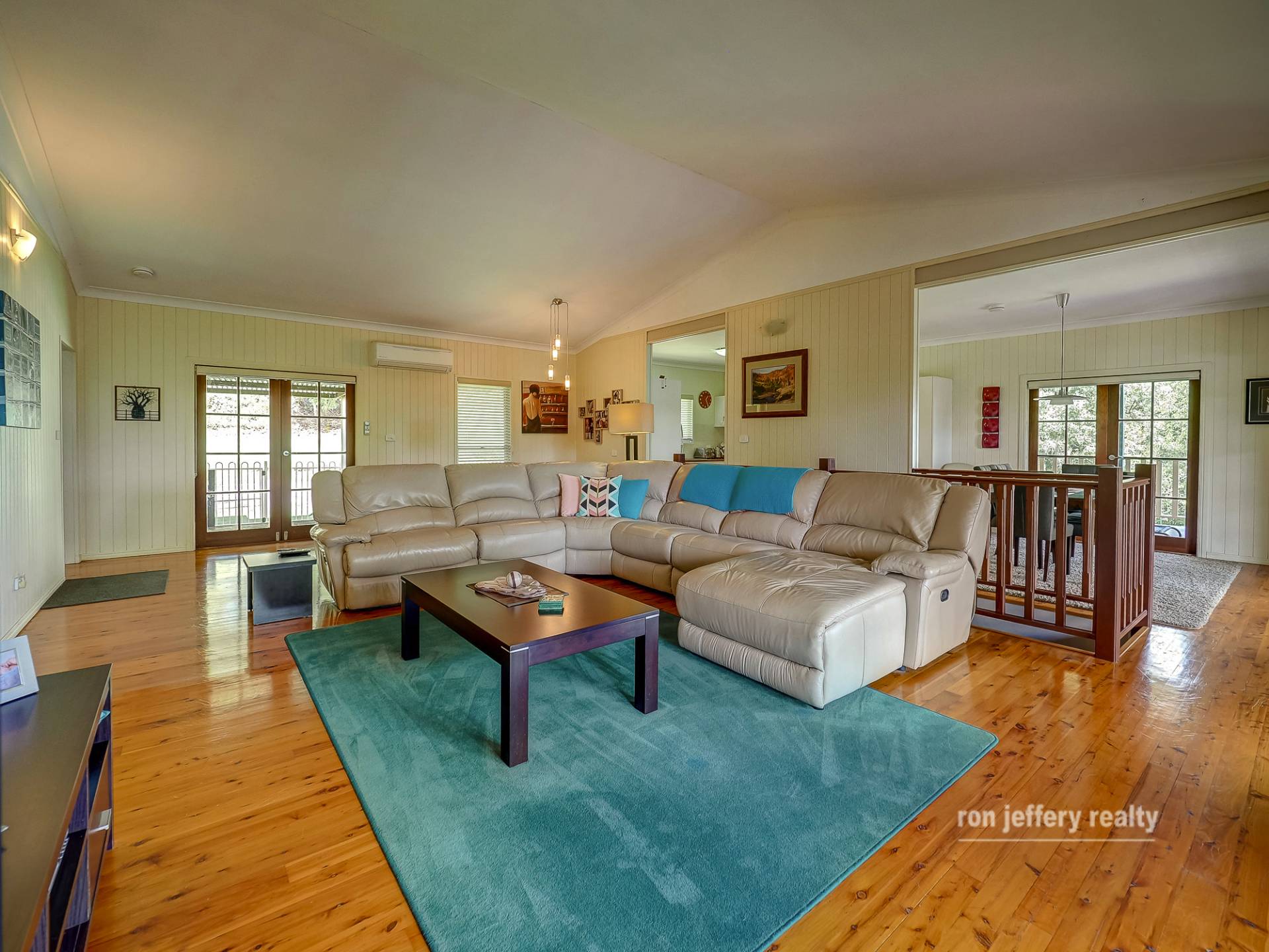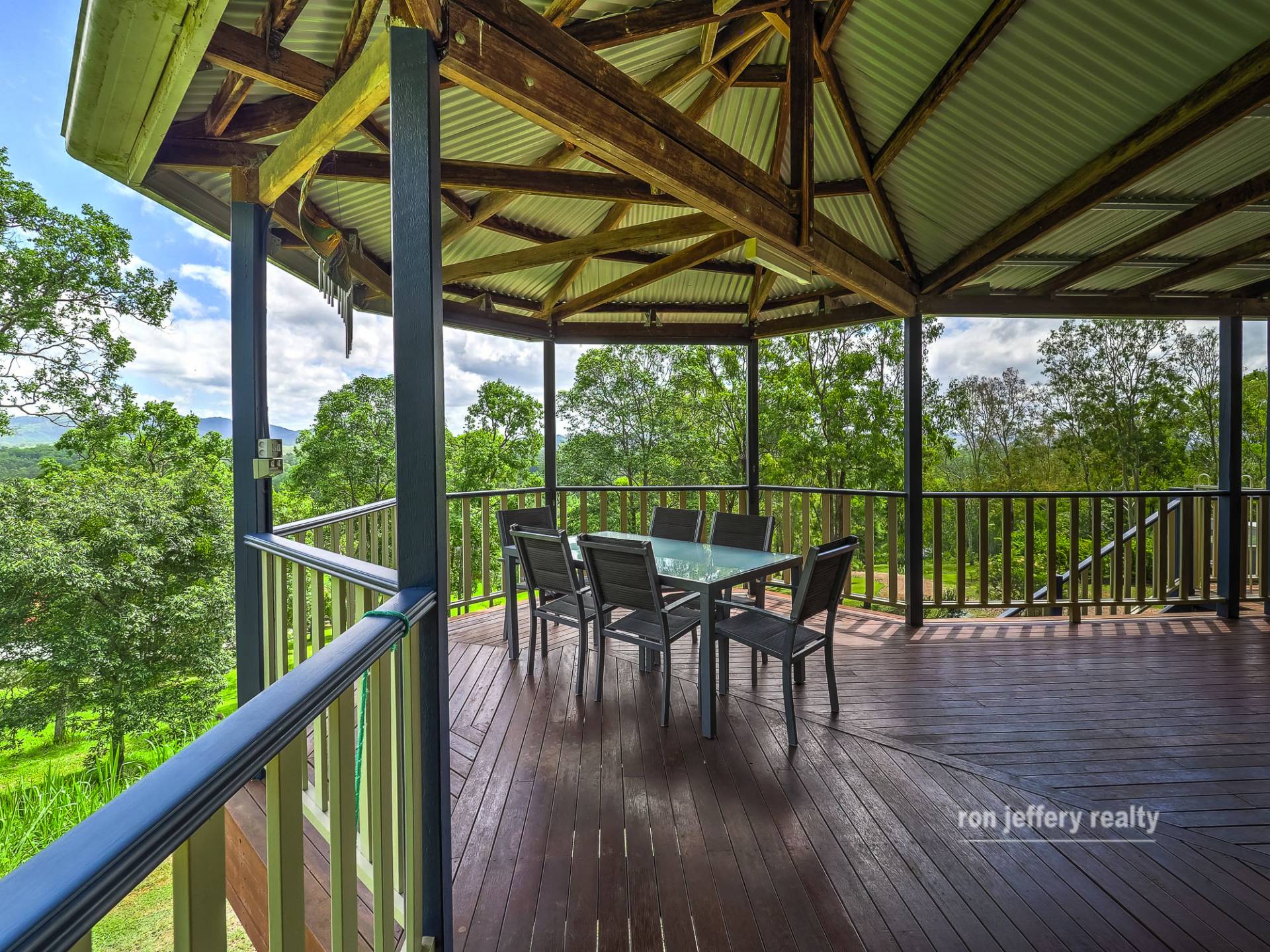 But it’s all about the outside. A wide deck on two sides, plus an extra wide gazebo corner, can really take a crowd. Take a look at that view! The rear also has a place to relax. The property has vehicle parking under the house plus a double garage and workshop. A dam and 10,000 gals of tank water storage will look after all your water needs.