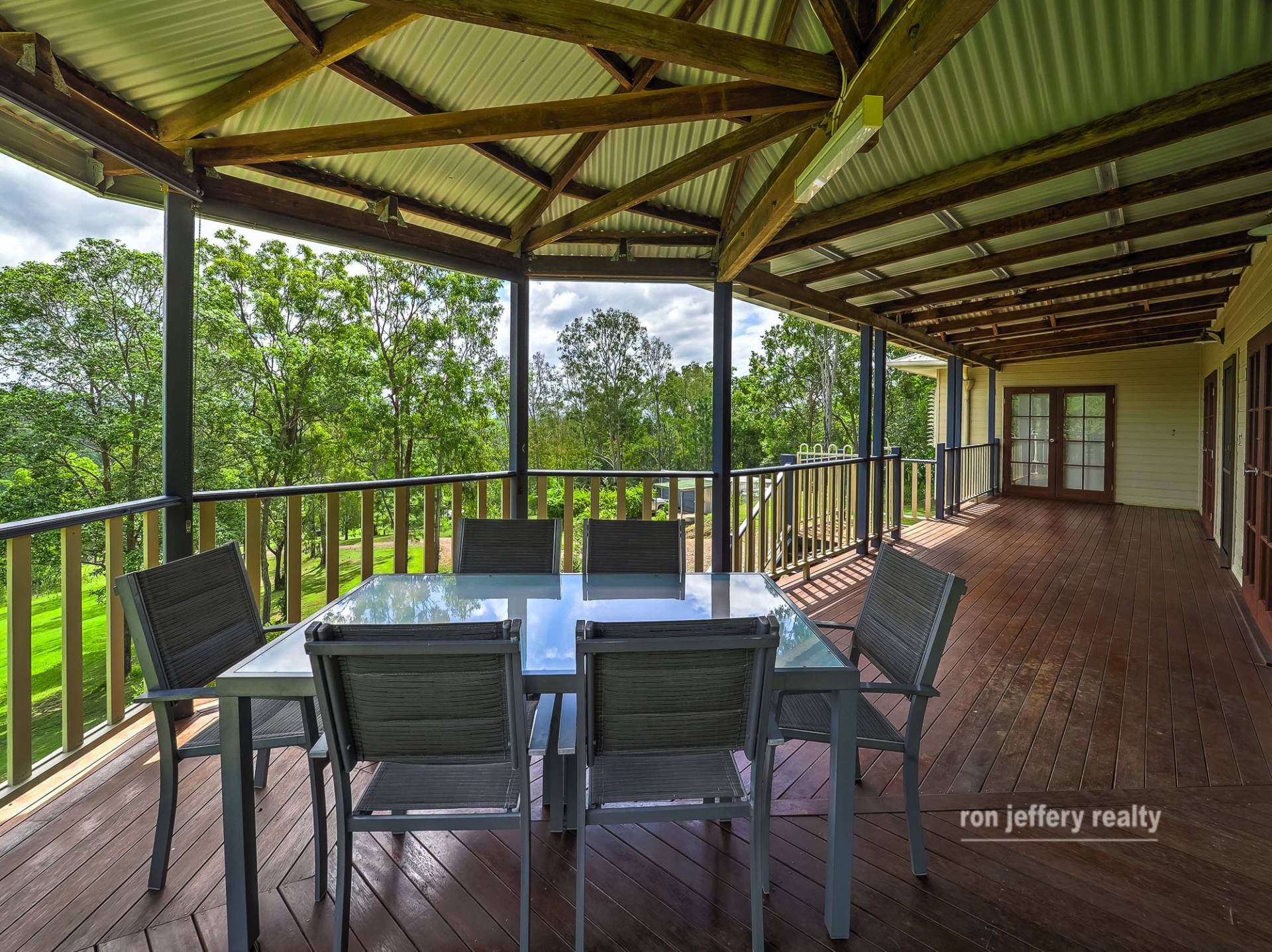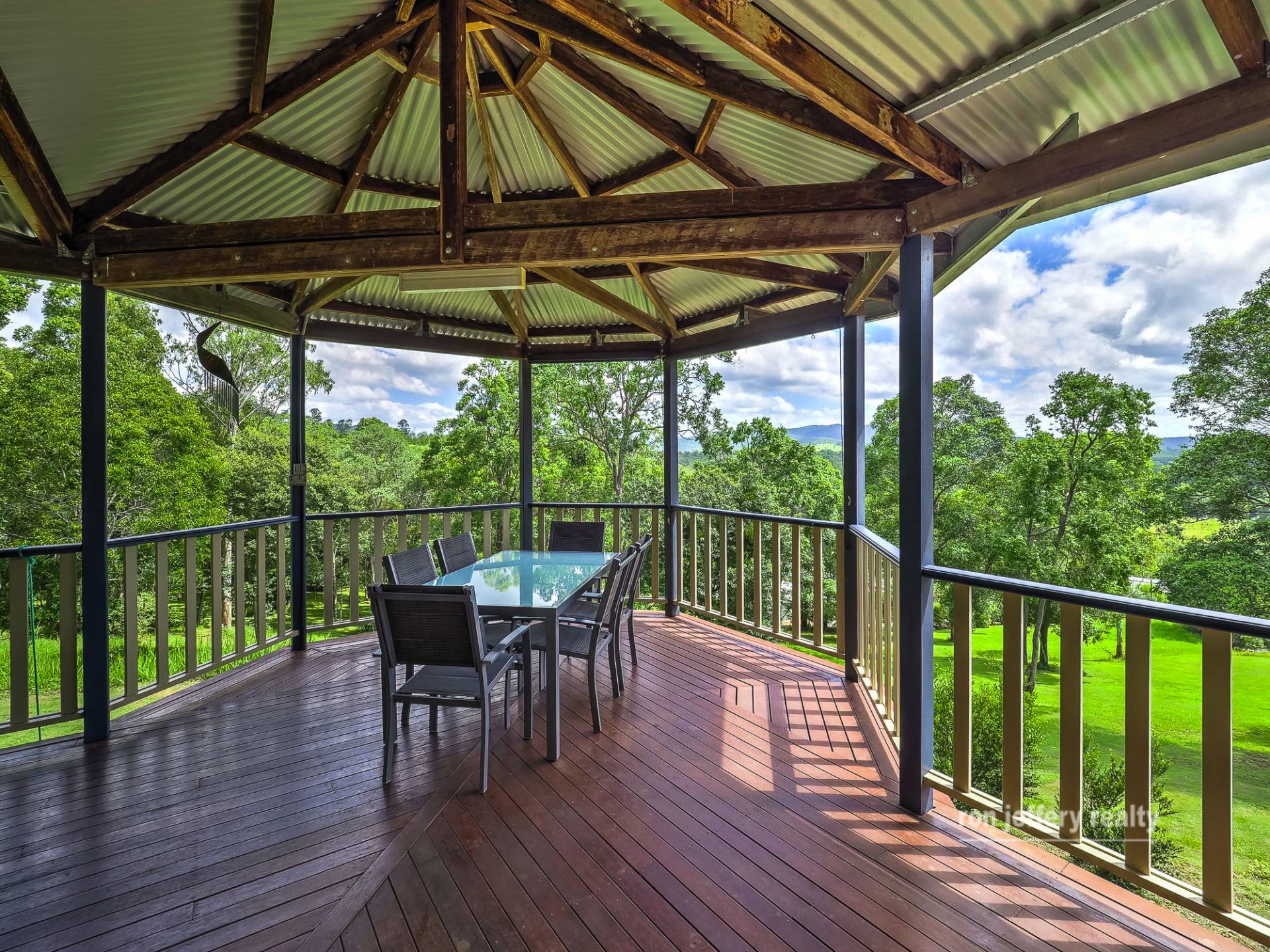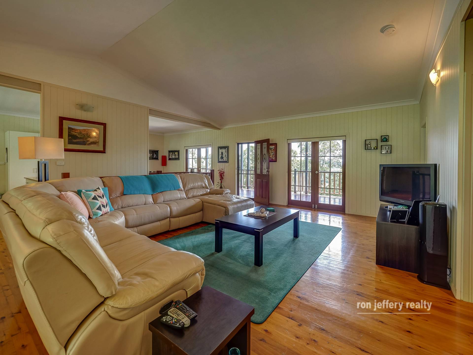 But it’s all about the outside. A wide deck on two sides, plus an extra wide gazebo corner, can really take a crowd. Take a look at that view! The rear also has a place to relax. The property has vehicle parking under the house plus a double garage and workshop. A dam and 10,000 gals of tank water storage will look after all your water needs.
