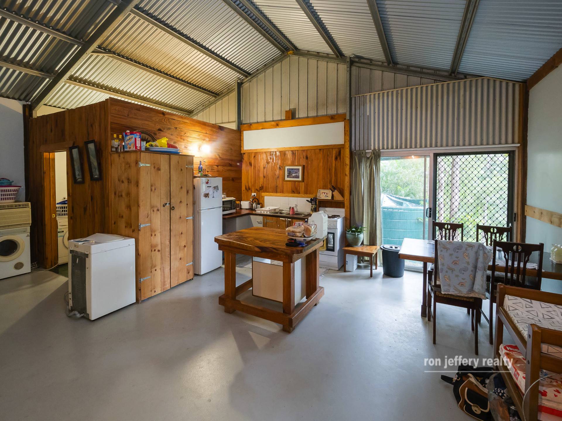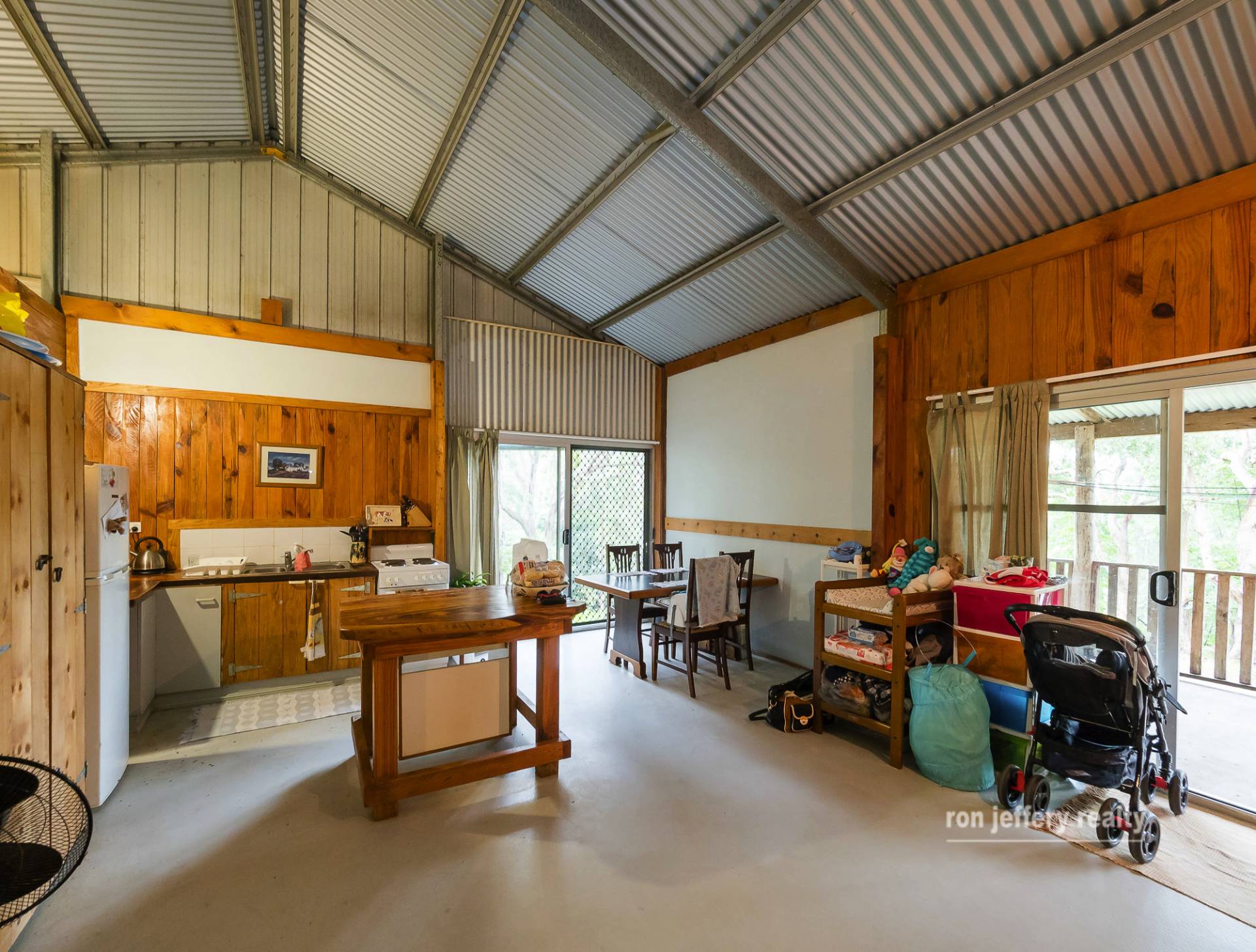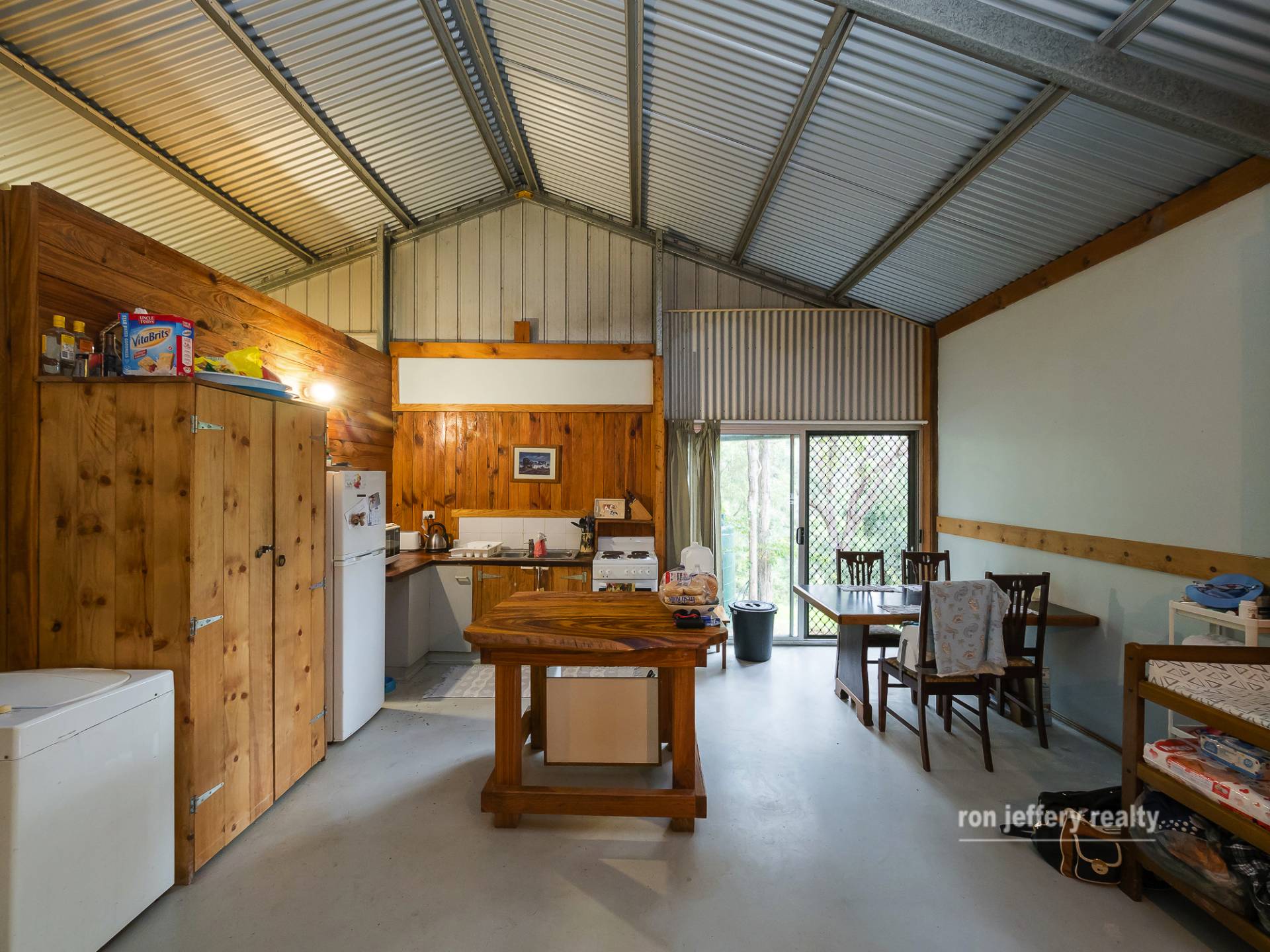 The property has a very comfortable “liveable shed”, perfect for a weekend retreat in the Hinterland, or a base while you build your dream home, in your dream spot. This is a high roofed, 5-bay shed with a slab floor and a full length paved and covered veranda. It has all the services including power, septic and water tank.