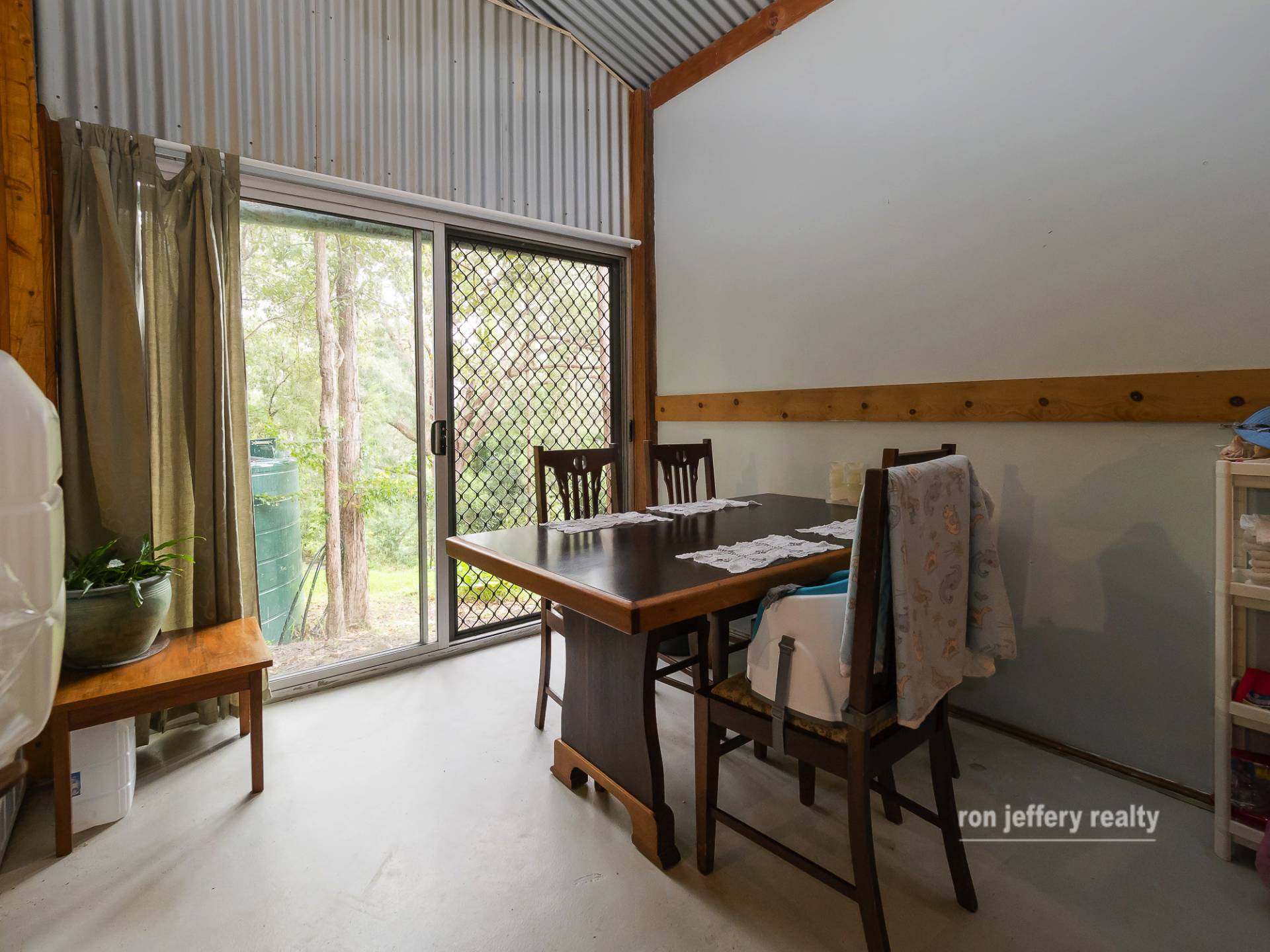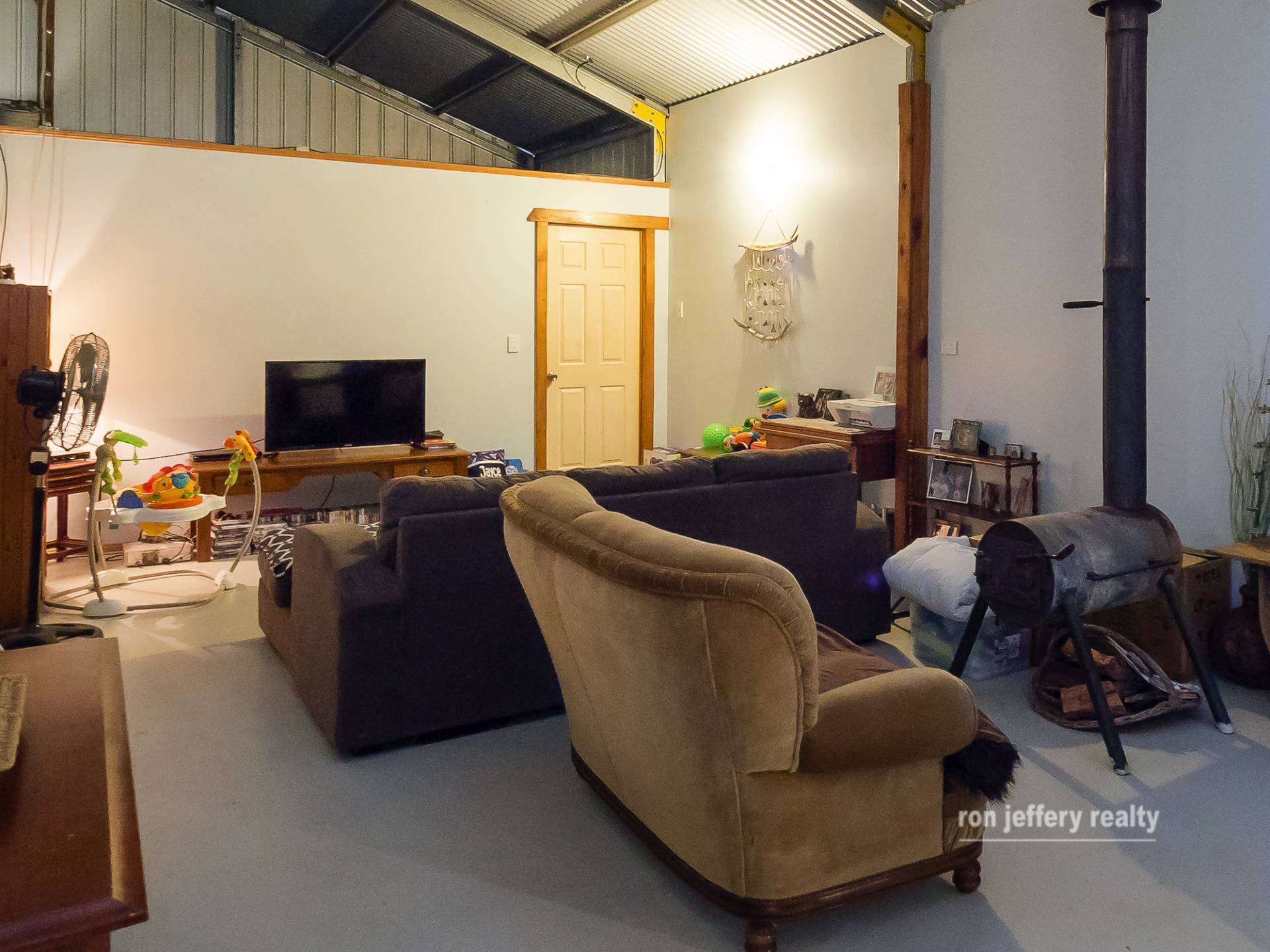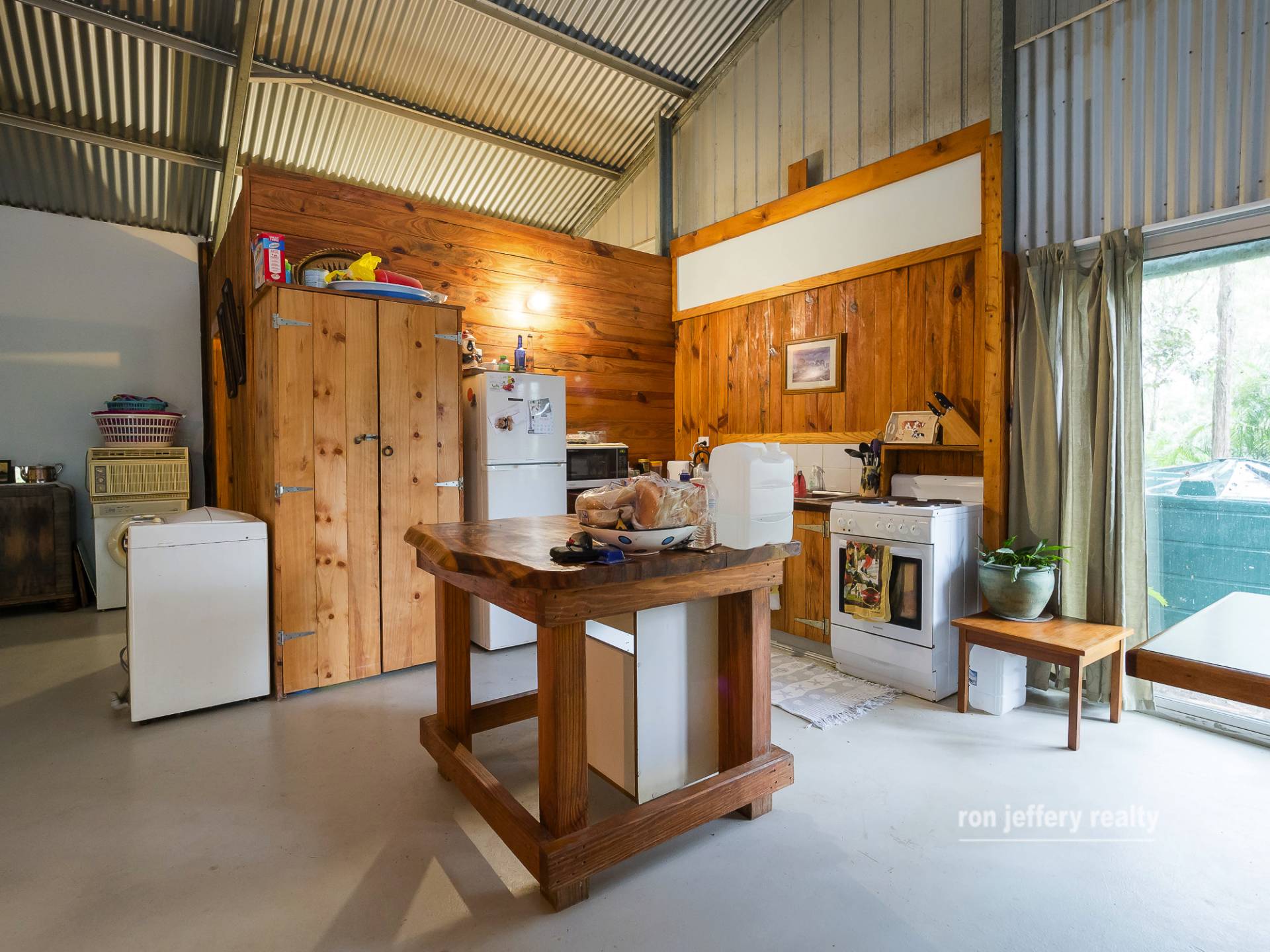 The property has a very comfortable “liveable shed”, perfect for a weekend retreat in the Hinterland, or a base while you build your dream home, in your dream spot. This is a high roofed, 5-bay shed with a slab floor and a full length paved and covered veranda. It has all the services including power, septic and water tank.