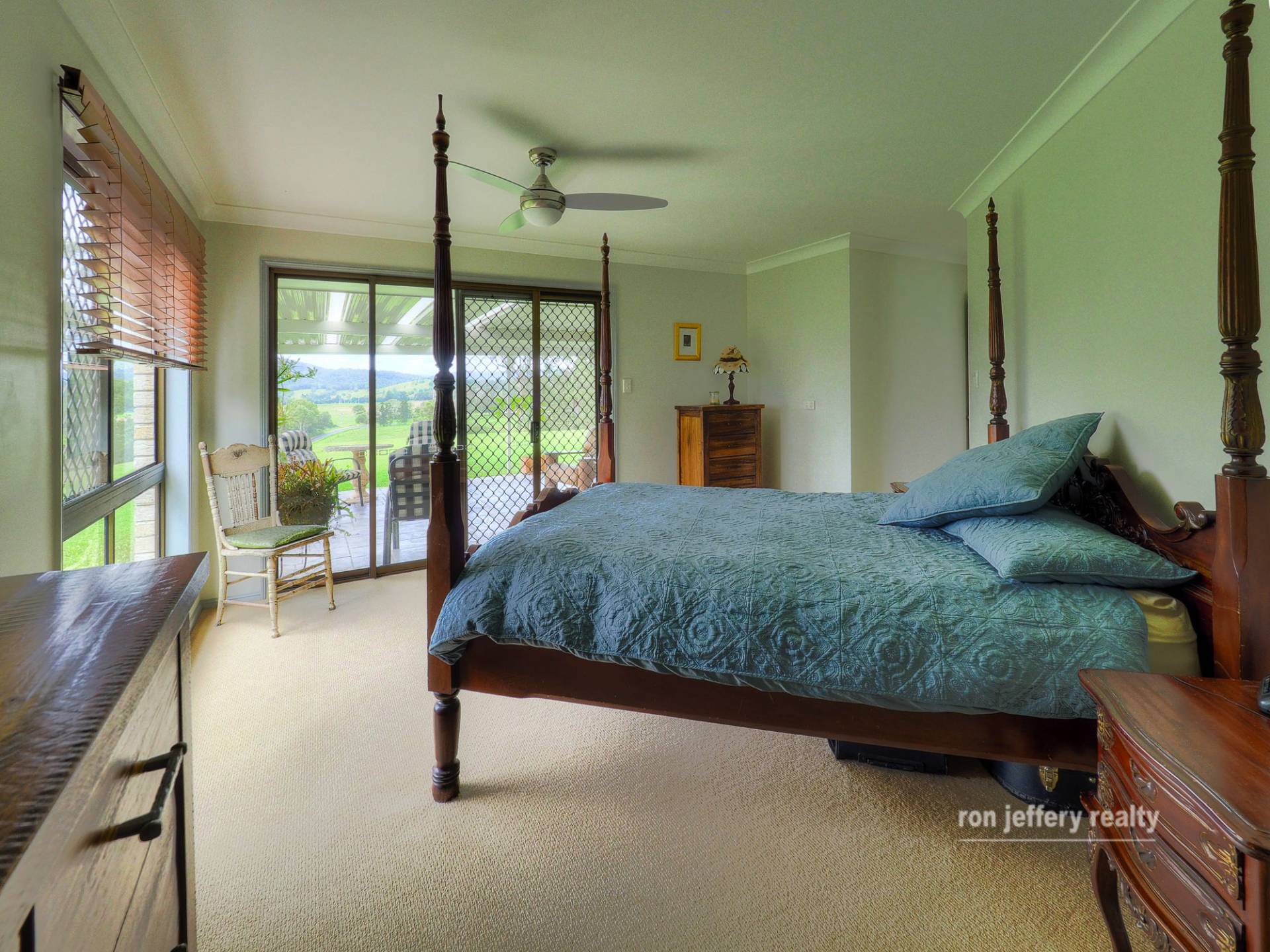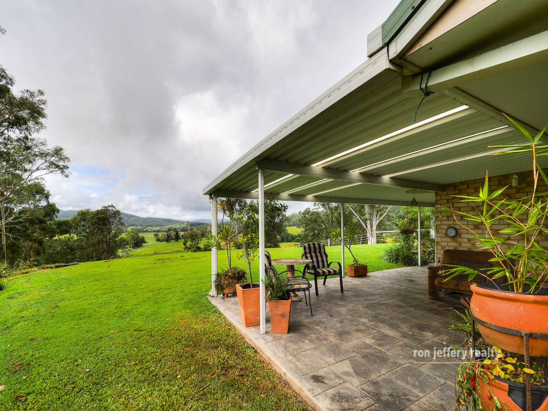 There are 5 bedrooms and 1 study. However, you can arrange the rooms to suit your own needs. The master bedroom suite has a walk-in robe, en-suite and direct access to the paved and covered entertaining area. And, that is the place to be to enjoy the valley views. With hills on both sides it’s a truly picturesque valley.