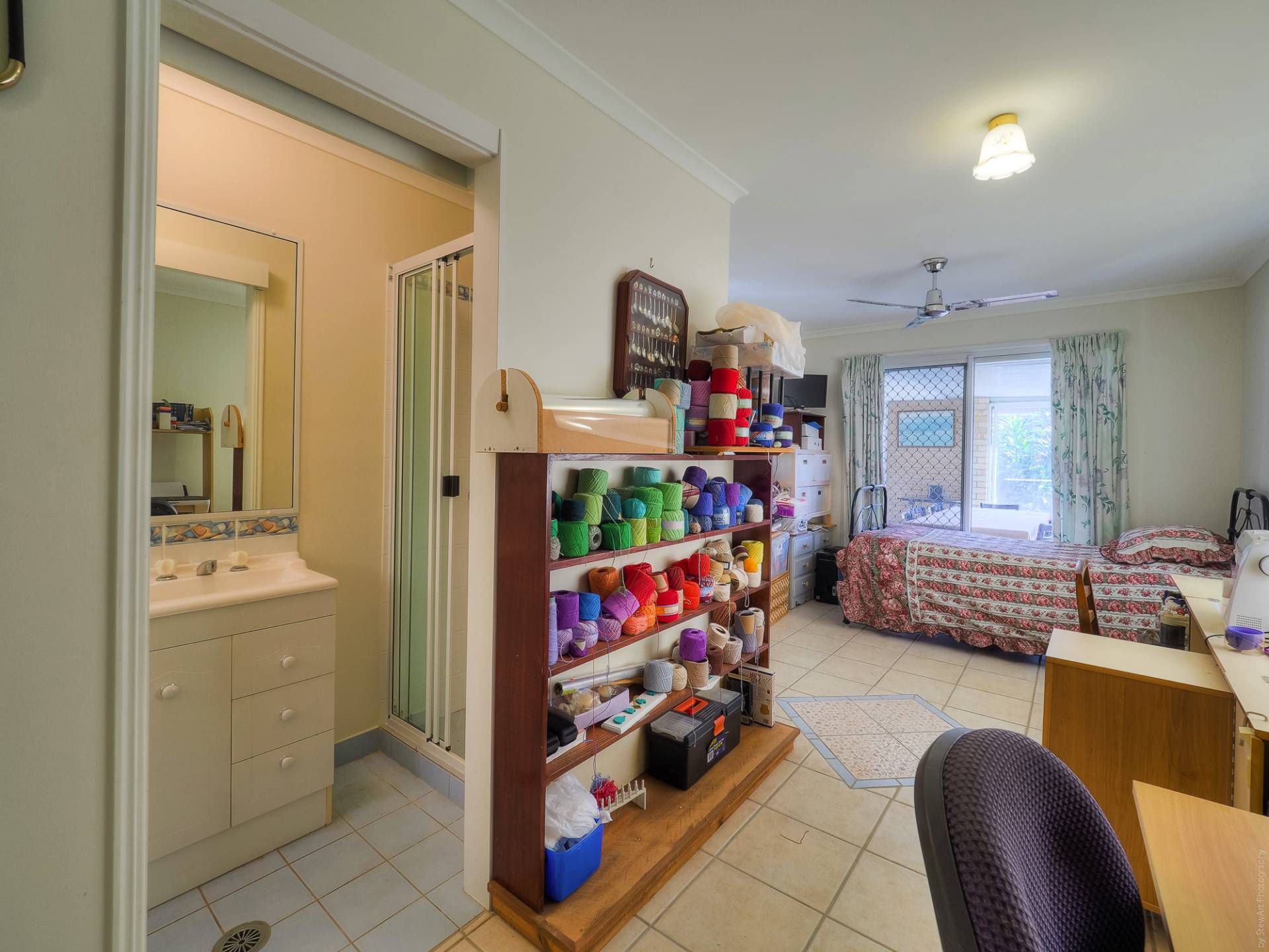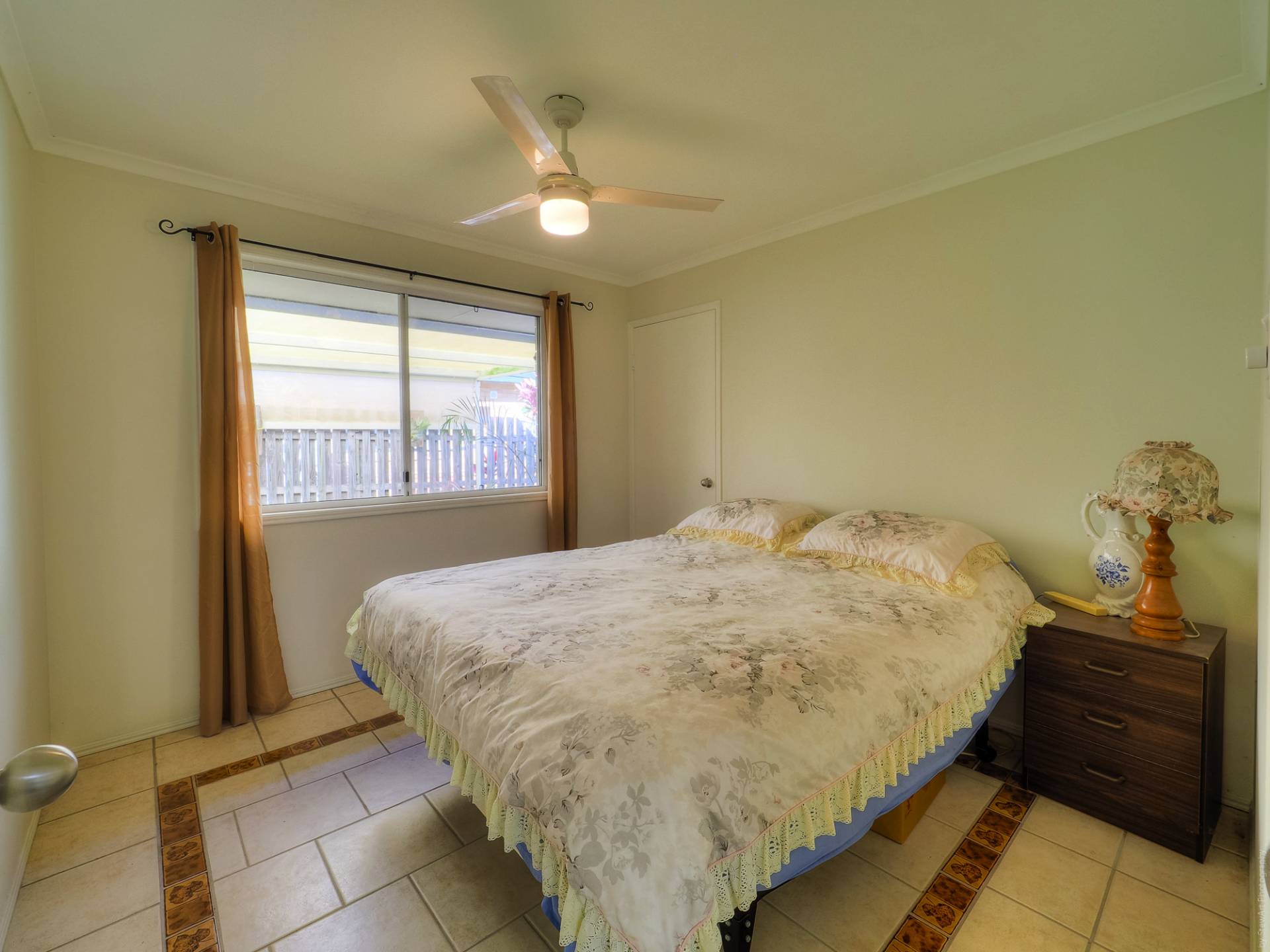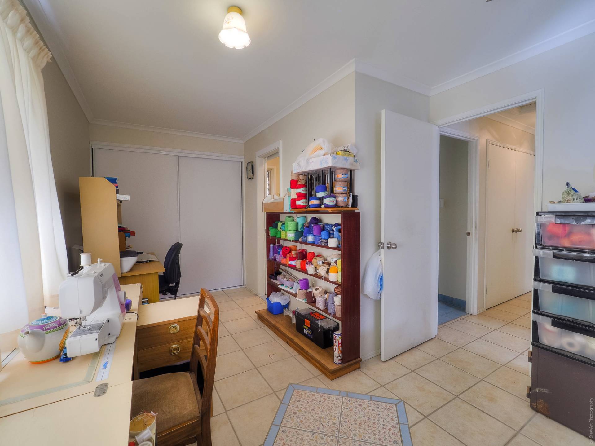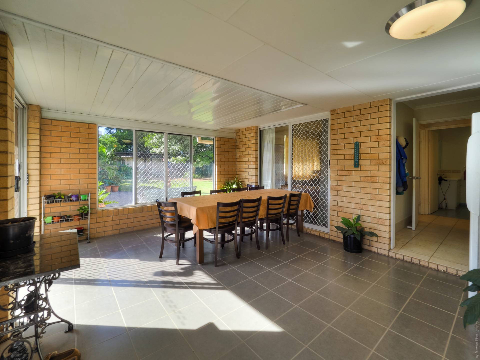 The house is a conventional brick and tile design, nestled into its leafy setting, on a level quarter acre (1,012m2) lot. Entry to the fully tiled home is via the front porch, straight into the living room. This air-conditioned room is L-shaped and has access to the casual living area and the galley kitchen. The casual living area really adds to the living space here. The kitchen has electric cooking and plenty of cupboard and bench space. There are 3 bedrooms, all with built-in-robes, and 2 bathrooms. The main bedroom, with an ensuite, is currently being used as a craft room. The main bathroom has a bath and separate shower. There is solar hot water and solar power, back to the grid.