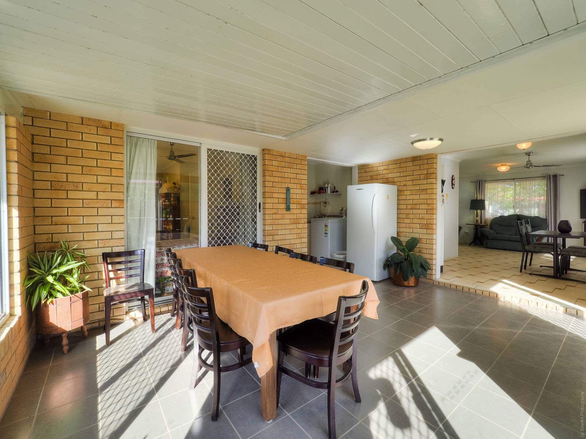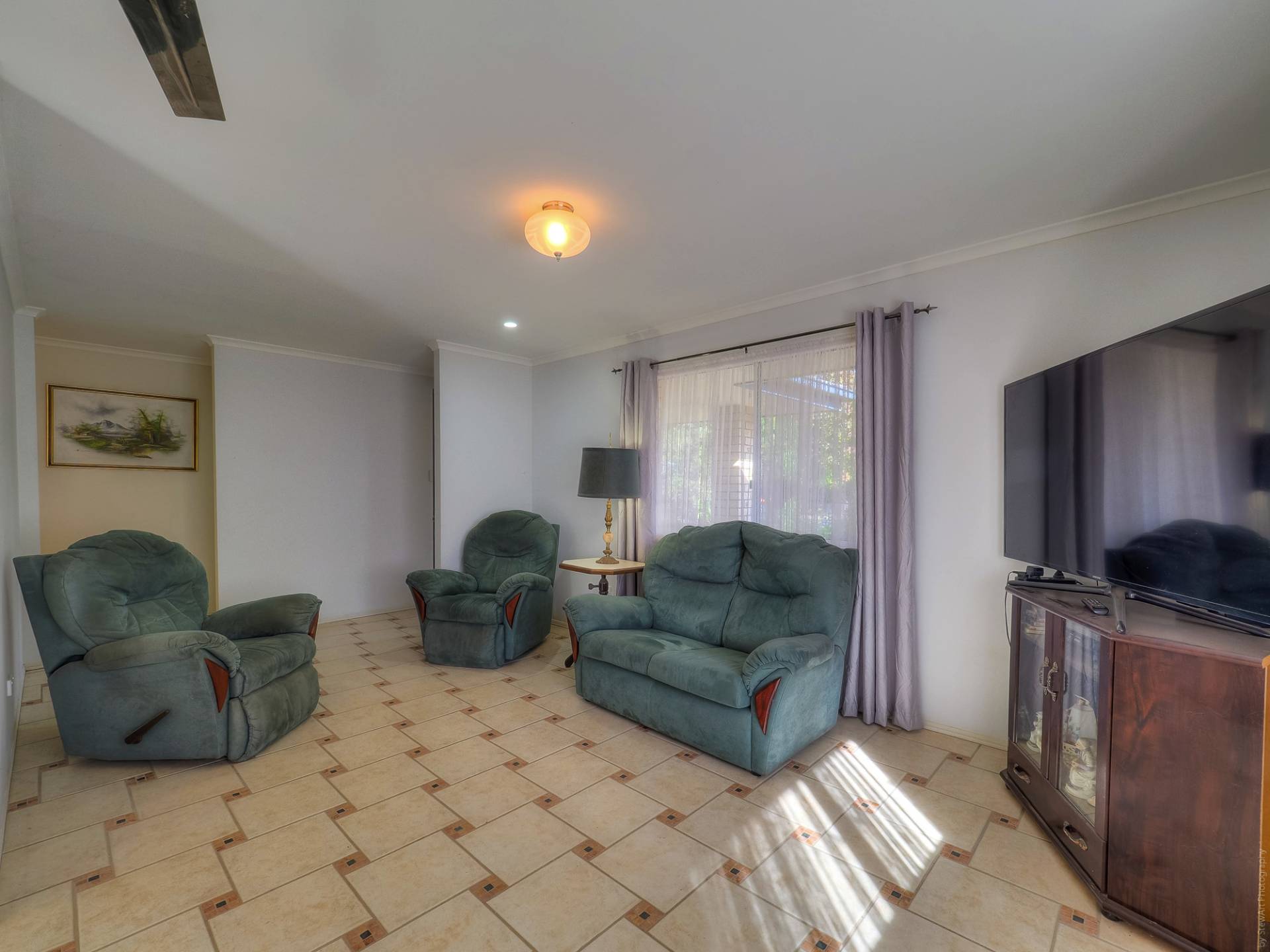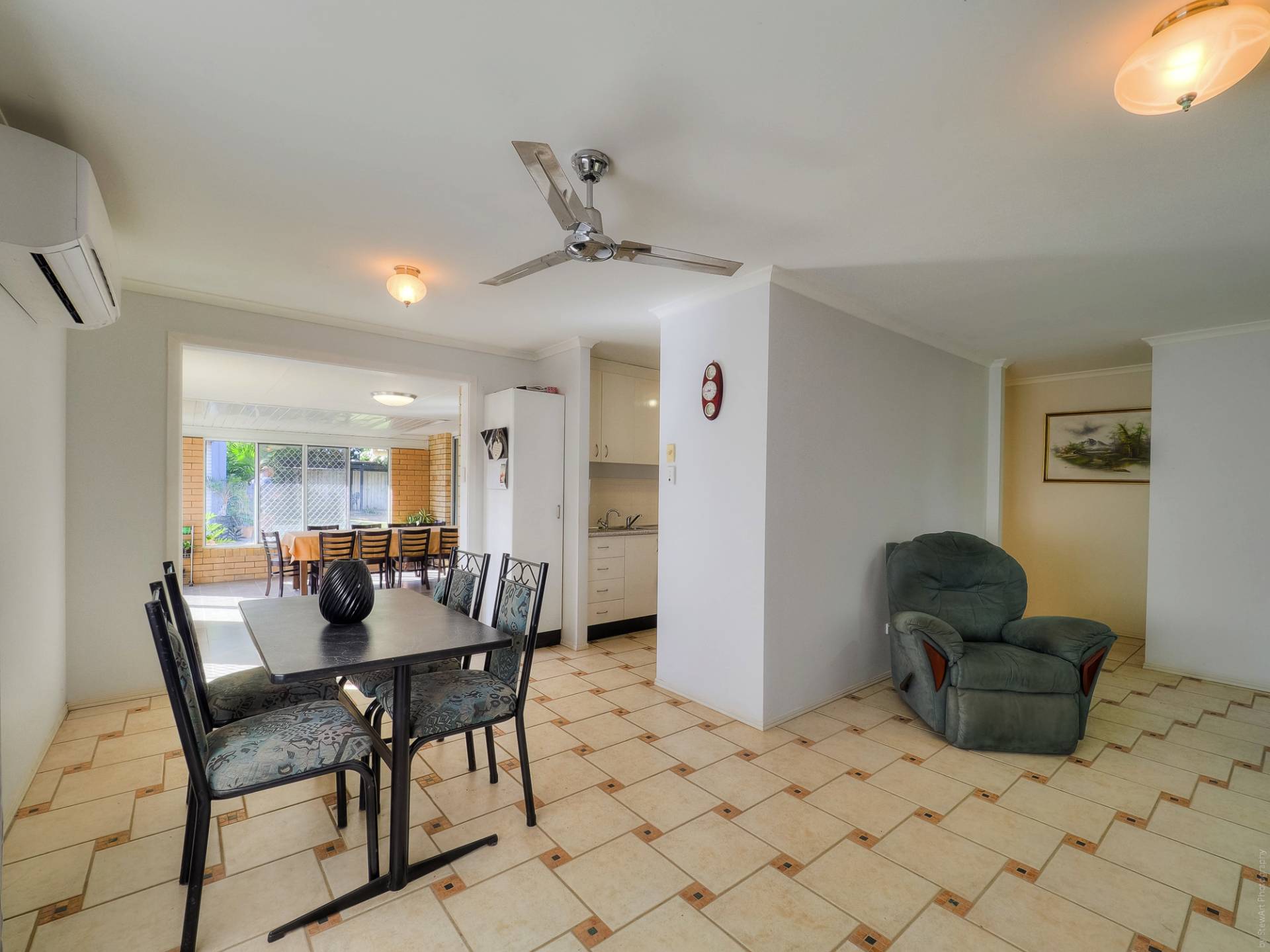 The house is a conventional brick and tile design, nestled into its leafy setting, on a level quarter acre (1,012m2) lot. Entry to the fully tiled home is via the front porch, straight into the living room. This air-conditioned room is L-shaped and has access to the casual living area and the galley kitchen. The casual living area really adds to the living space here. The kitchen has electric cooking and plenty of cupboard and bench space. There are 3 bedrooms, all with built-in-robes, and 2 bathrooms. The main bedroom, with an ensuite, is currently being used as a craft room. The main bathroom has a bath and separate shower. There is solar hot water and solar power, back to the grid.