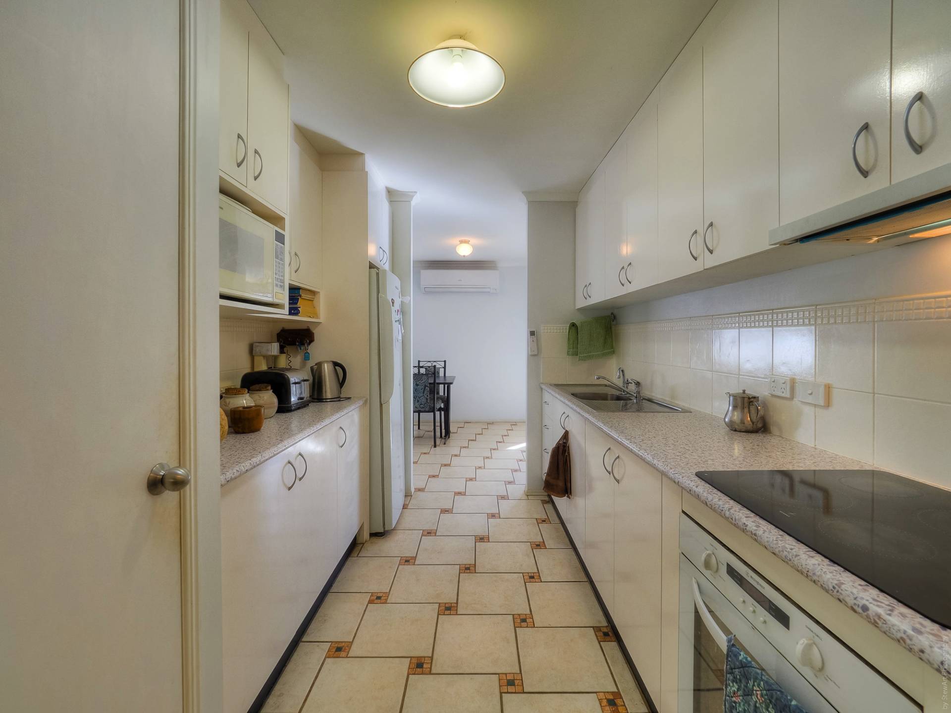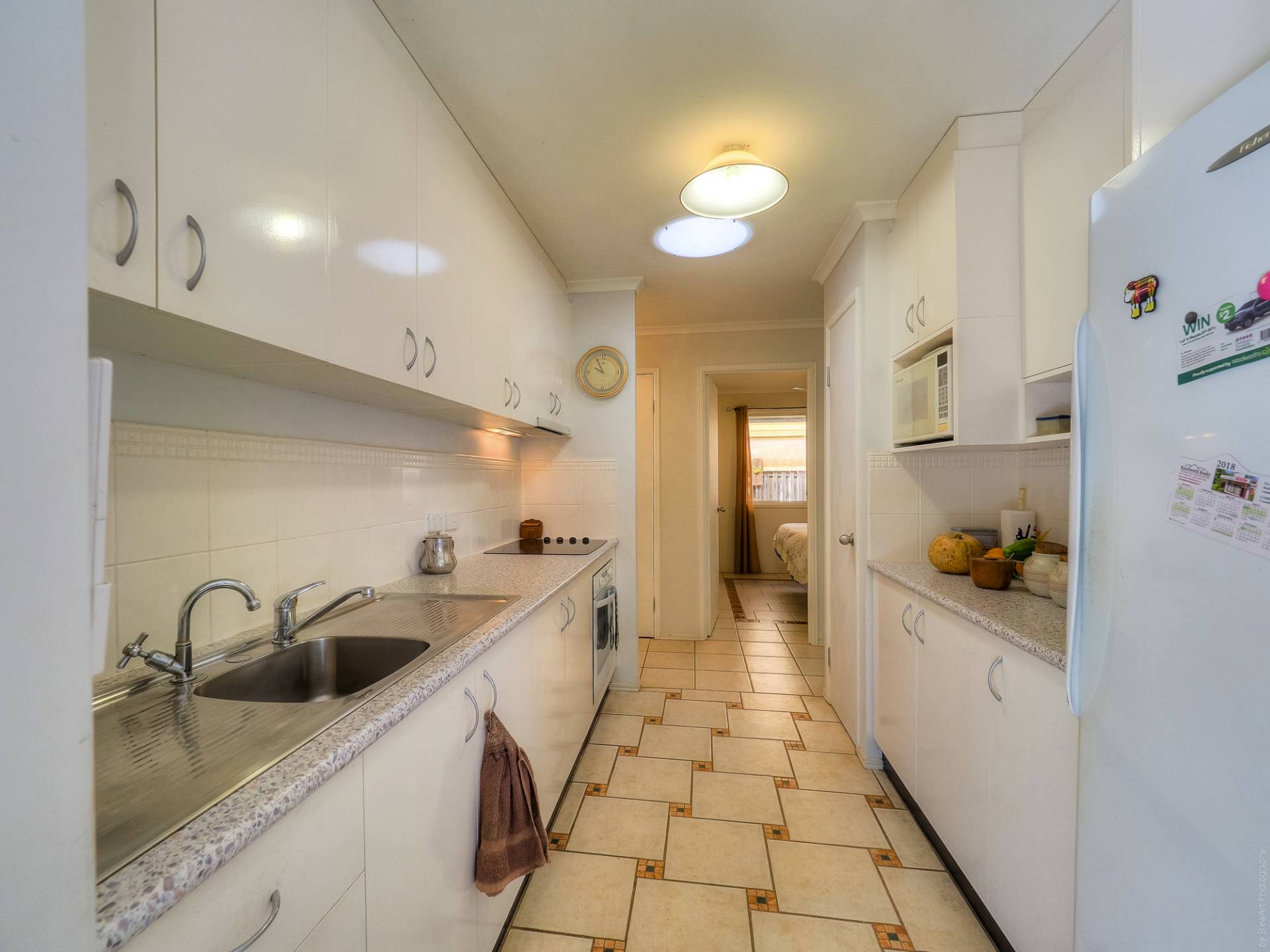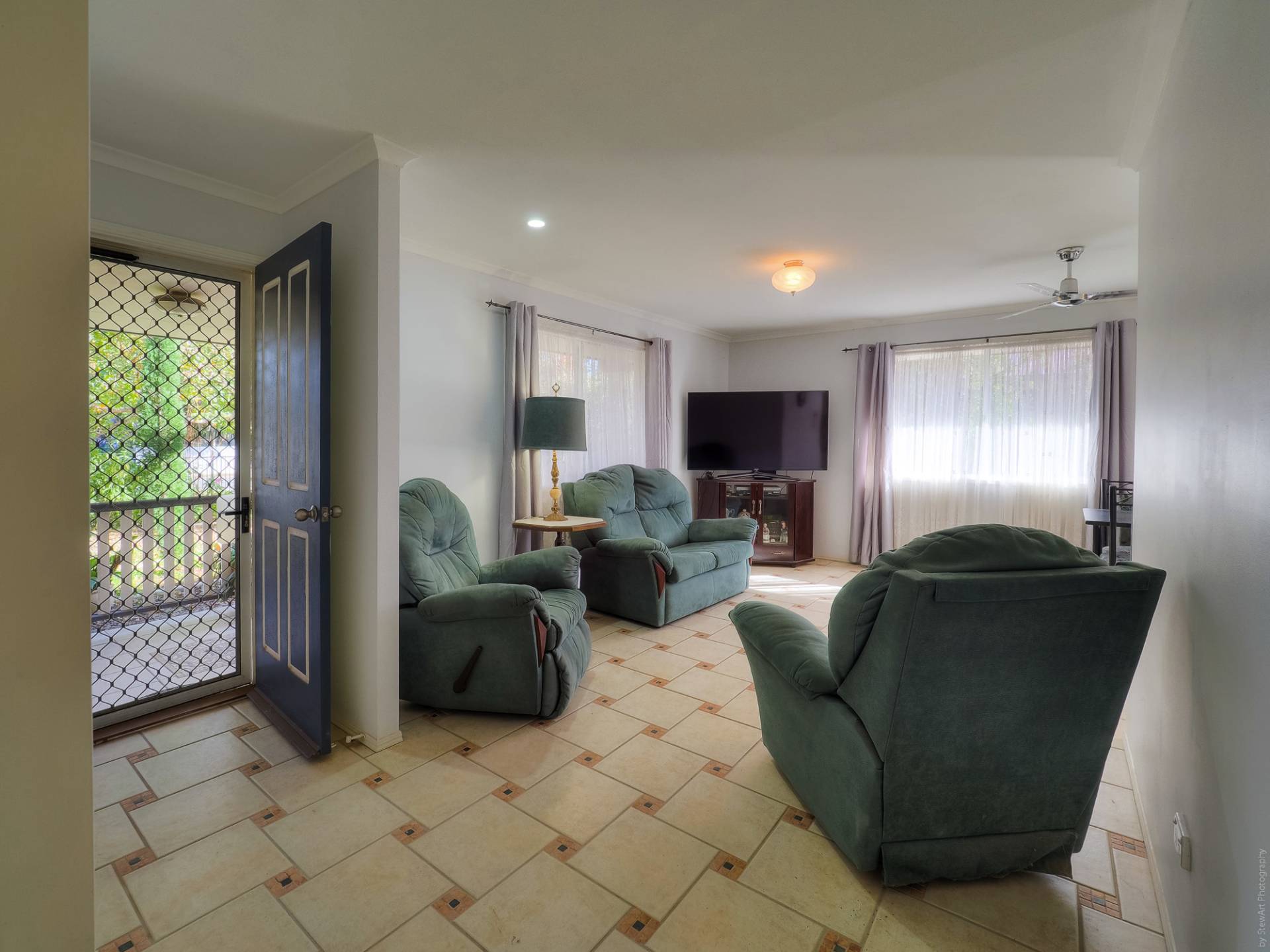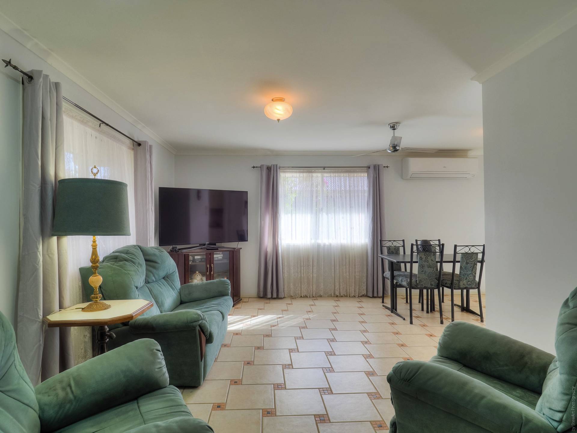 The house is a conventional brick and tile design, nestled into its leafy setting, on a level quarter acre (1,012m2) lot. Entry to the fully tiled home is via the front porch, straight into the living room. This air-conditioned room is L-shaped and has access to the casual living area and the galley kitchen. The casual living area really adds to the living space here. The kitchen has electric cooking and plenty of cupboard and bench space. There are 3 bedrooms, all with built-in-robes, and 2 bathrooms. The main bedroom, with an ensuite, is currently being used as a craft room. The main bathroom has a bath and separate shower. There is solar hot water and solar power, back to the grid.