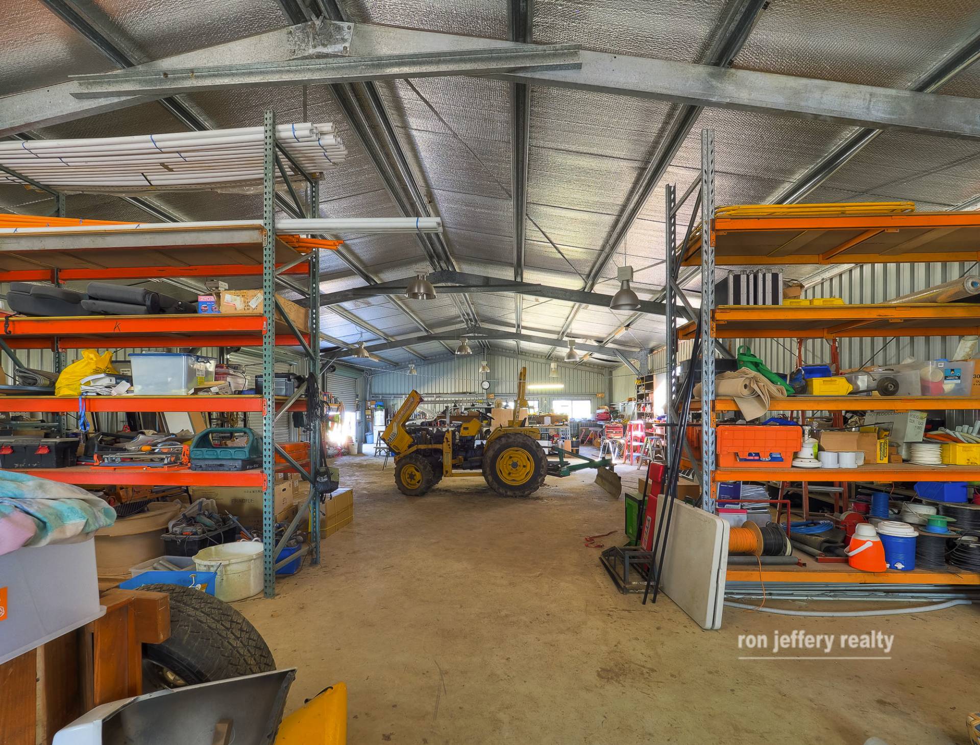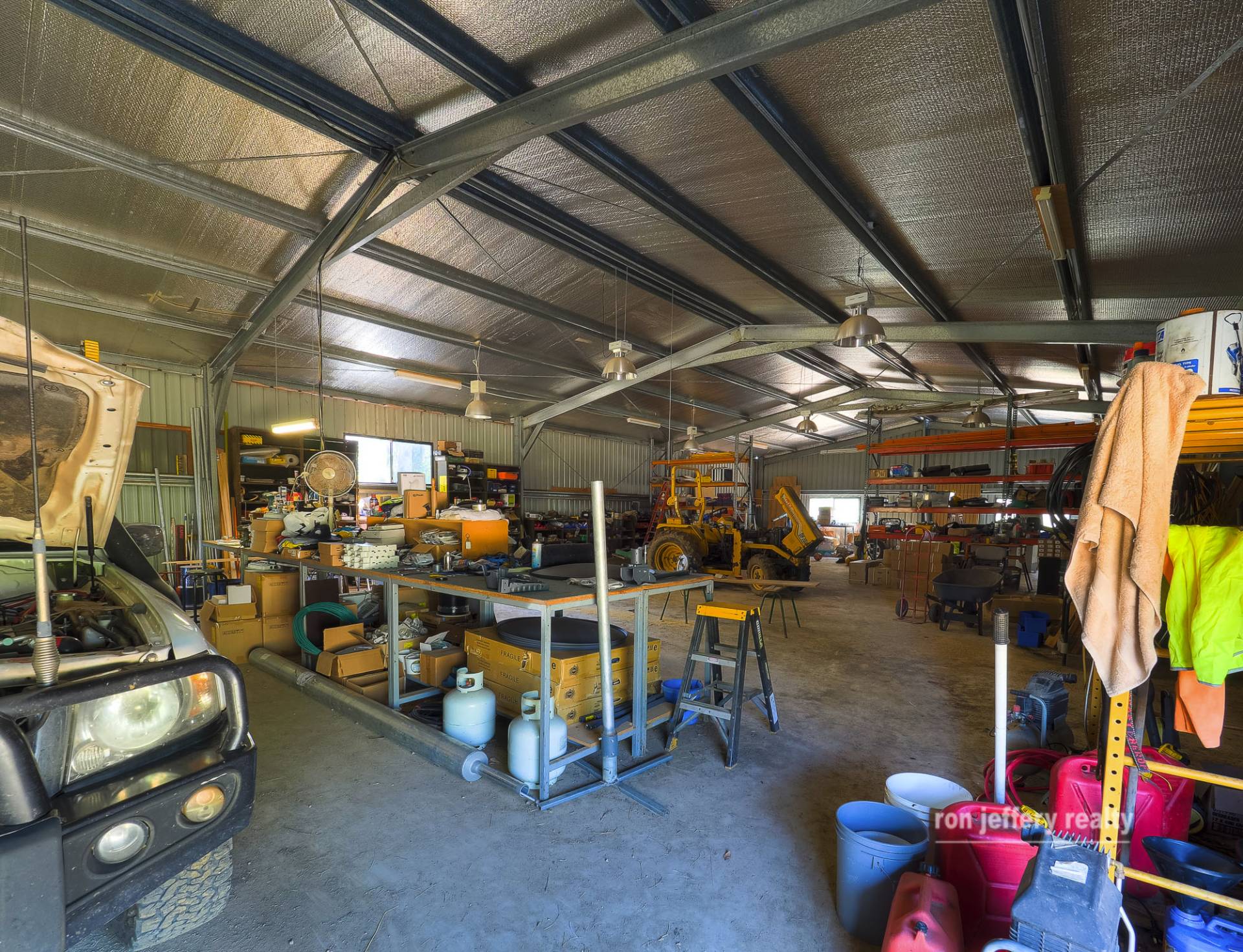 The shed is awesome. Approximately 12M X 24M, the 4-bay shed has high access, a concrete floor, power and great lighting.