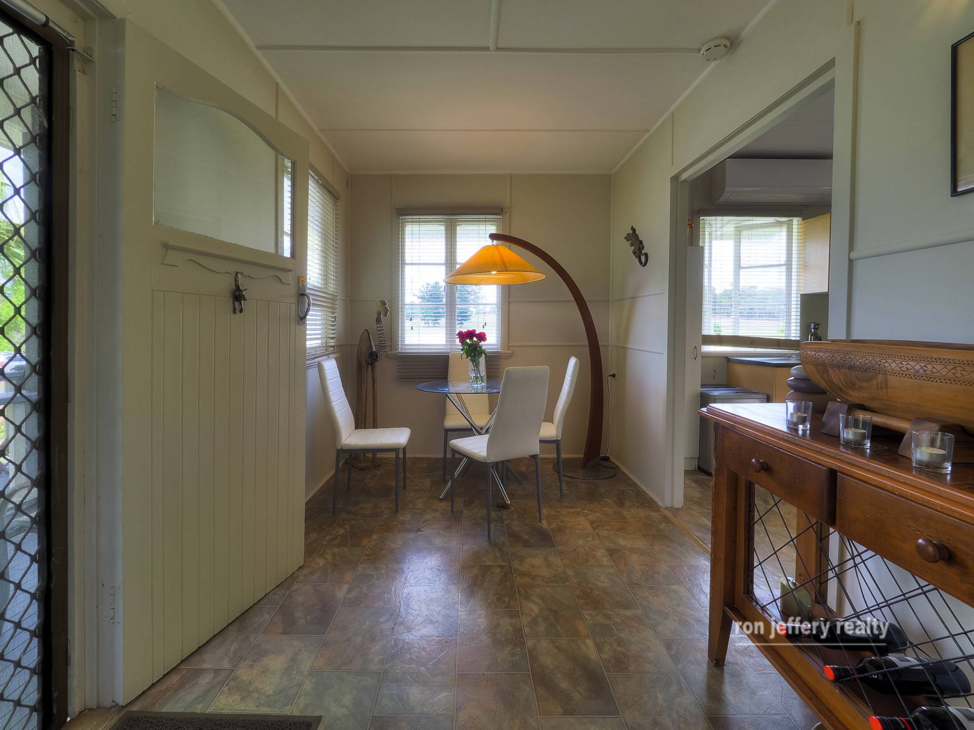 Upstairs, the front veranda, with an extensive rural view, gives access to a living area split into three rooms. The dining room is also the entry room, with access to both loungeroom and kitchen. The kitchen is quite spacious and capable of being a true country, eat-in style, kitchen. The kitchen has an air conditioner capable of cooling the whole house while the loungeroom has a centrally located slow combustion heater. There are 4 bedrooms, 3 with built-in robes, an updated bathroom and separate toilet.