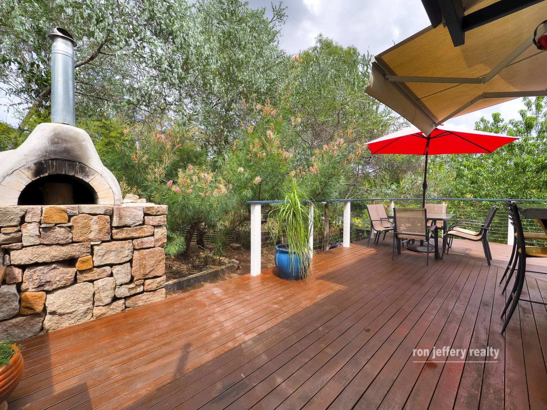 The kitchen connects directly to a large rear deck complete with a built-in pizza oven. Vehicle parking for two cars is provided under the house as well as one dedicated visitor parking bay adjacent to the house. The quarter acre block is securely fenced and fully landscaped.
