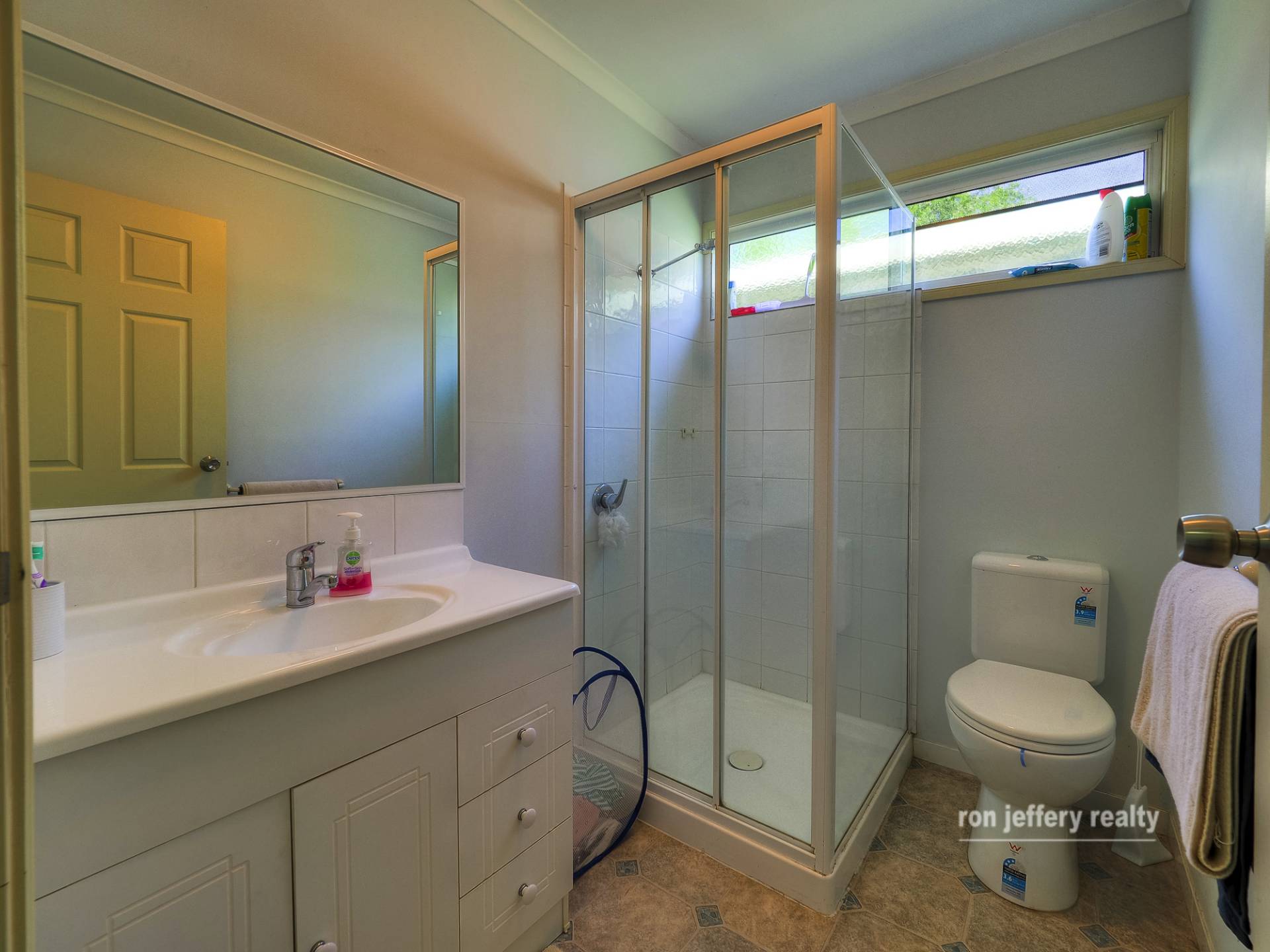 The living area of the house has cathedral ceilings and is semi-separated between an air conditioned loungeroom and a kitchen/dining room. The kitchen has a gas cooktop, a pantry and a space for the dishwasher (includes a single draw dishwasher ready to install). A central hallway services 3 bedrooms, the bathroom and laundry. Both the dining room and main bedroom have direct access to the rear deck.