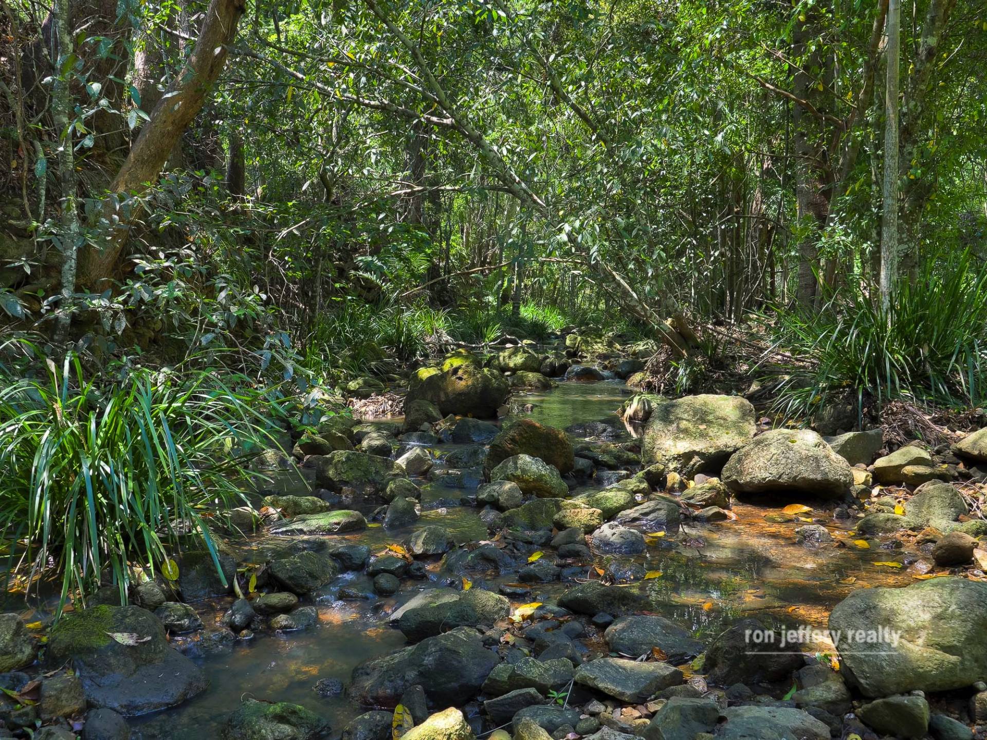 The creek flows through the property, close enough to the cottage to be a feature. The water cascades over the rocks to add to the background sound of the native birdlife.