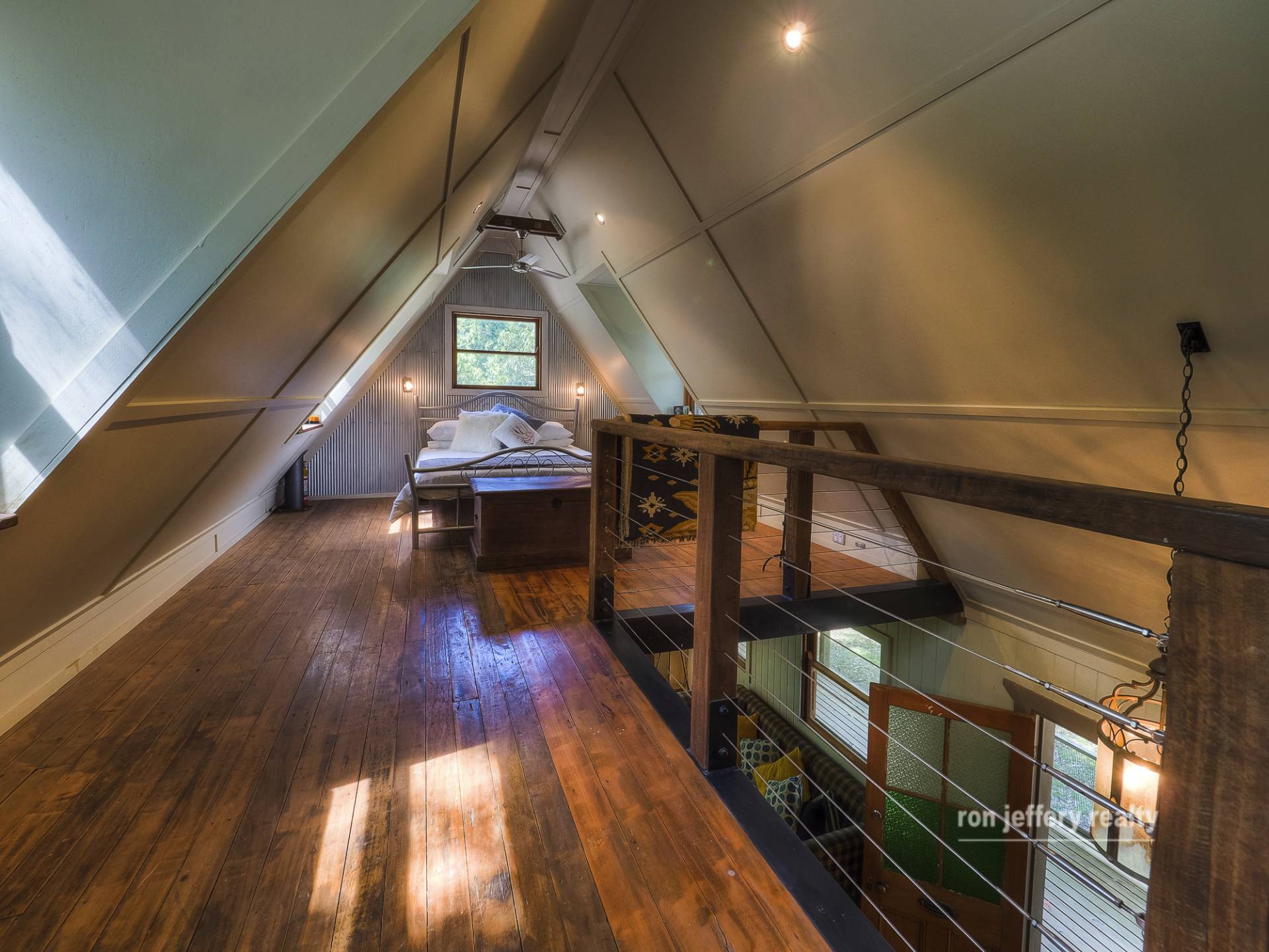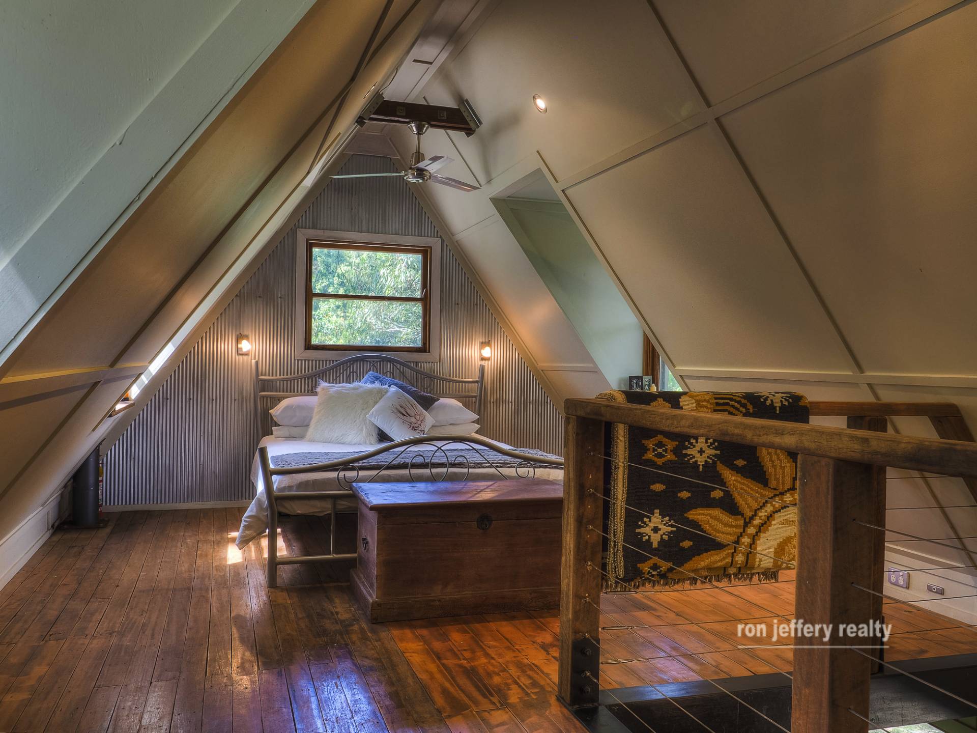 Externally, the SHOTTAGE is a timber clad SHACK with verandas on 3 sides and a high-pitched roofline complete with Dorma windows. Inside, the COTTAGE has an open plan living space that features polished timber floors, slow combustion heating and bi-fold door access to the wide, covered deck. The ceiling is timber, the underneath of the loft style bedroom. The kitchen, while simple, has everything that a weekender needs including a built-in bench or breakfast bar and plenty of storage. The bathroom is first class with a sunken bath, with a rain-head shower over, and quality finishes. The bedroom is upstairs on the loft/mezzanine floor, with plenty of head space.