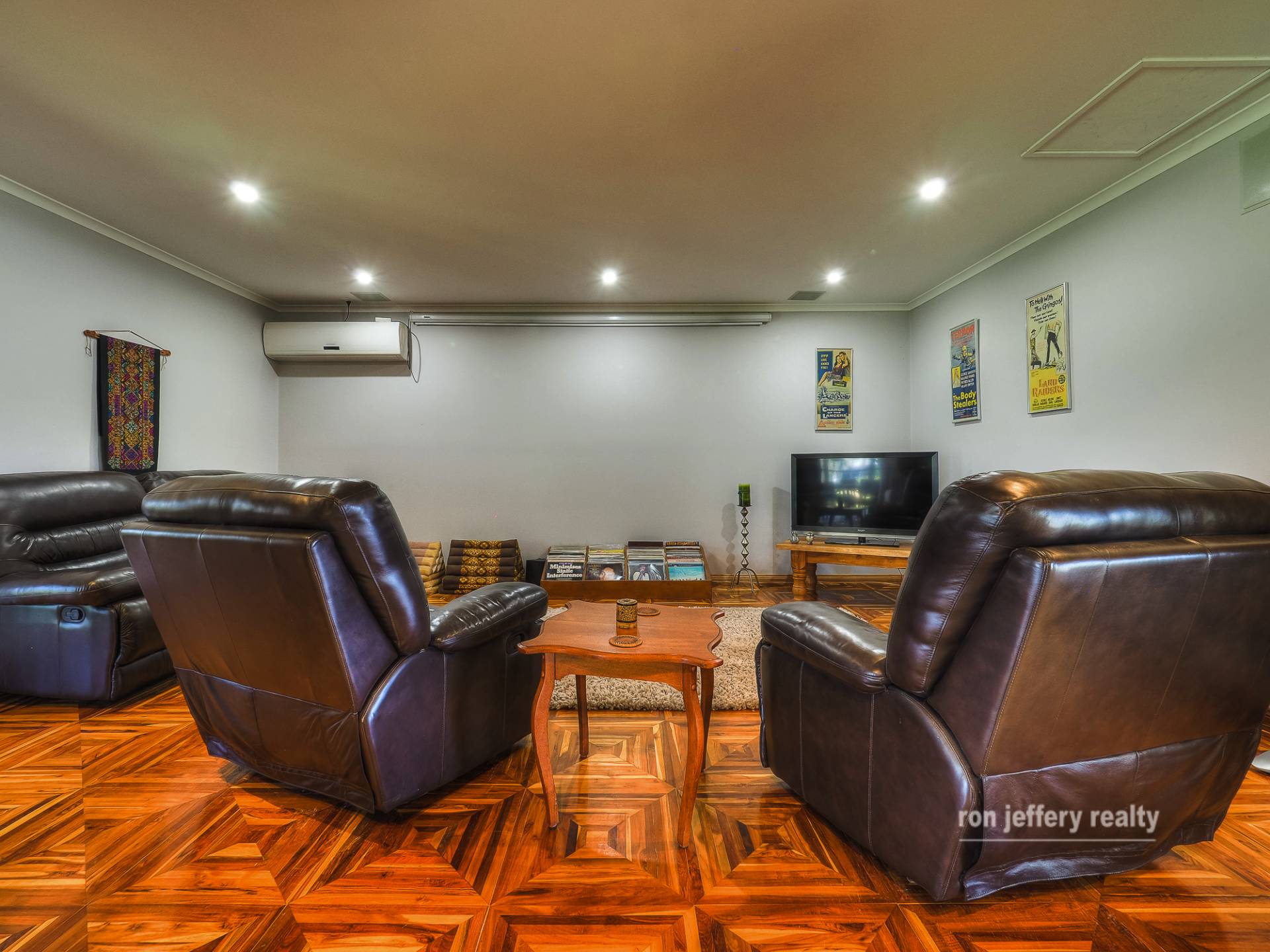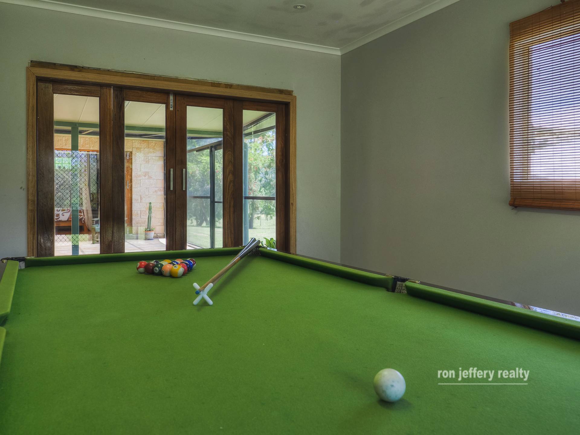 The timber kitchen, separated from the family room by a large island bench/breakfast bar, has stone benchtops, plenty of storage that includes a pantry, a gas cooktop and feature rangehood. The media room comes complete with a large pull-down screen and overhead projector, and no home should be without a pool/table tennis room.