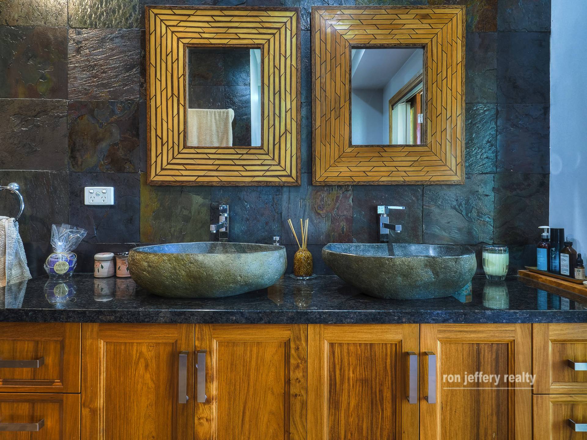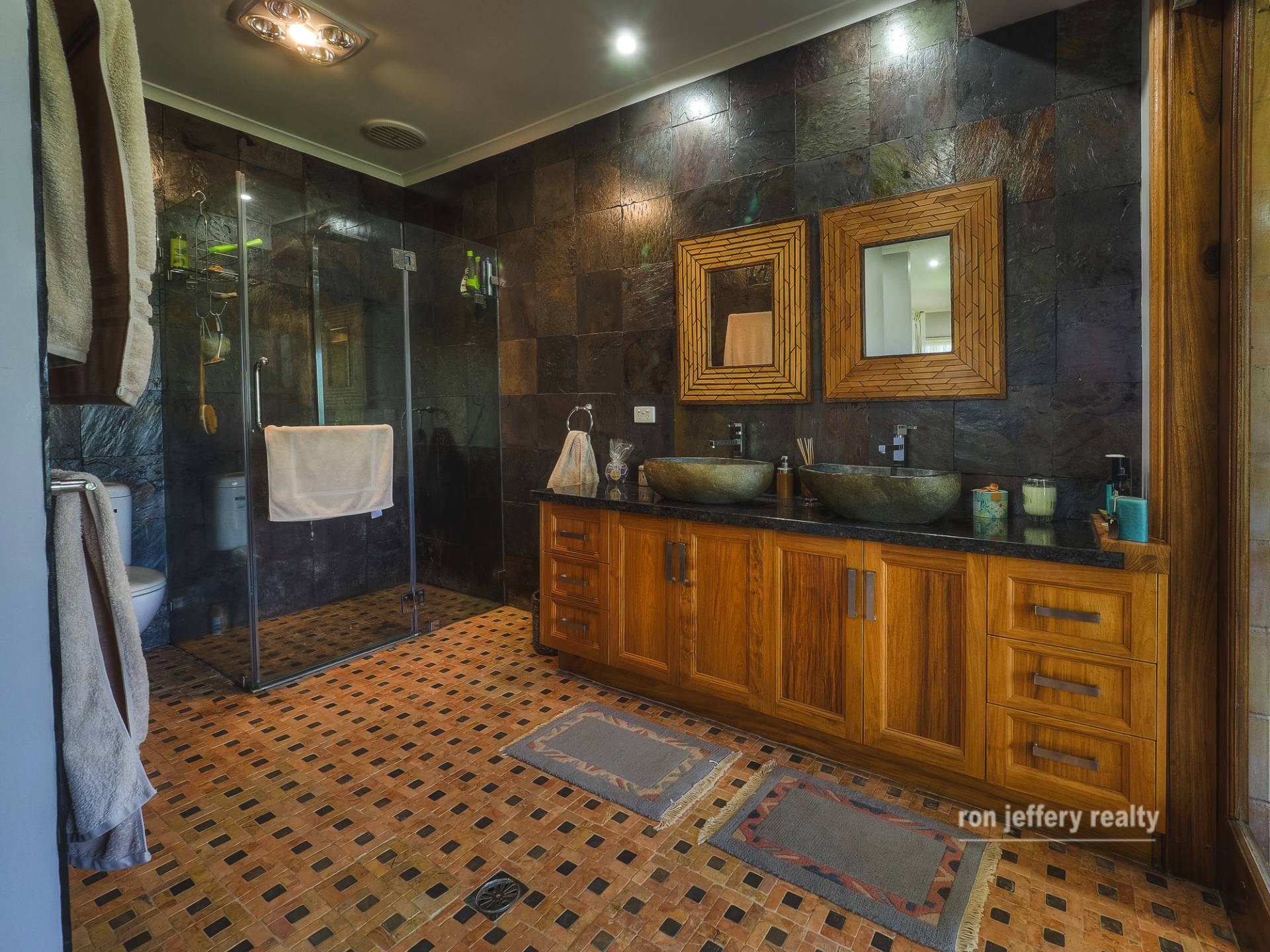 The main bedroom is a true master suite with bi-fold door access to the entertaining area, a walk-in robe and a modern en-suite that includes a stone bath in a fernery setting. There are three other bedrooms, that include the en-suited guest bedroom, plus the office.