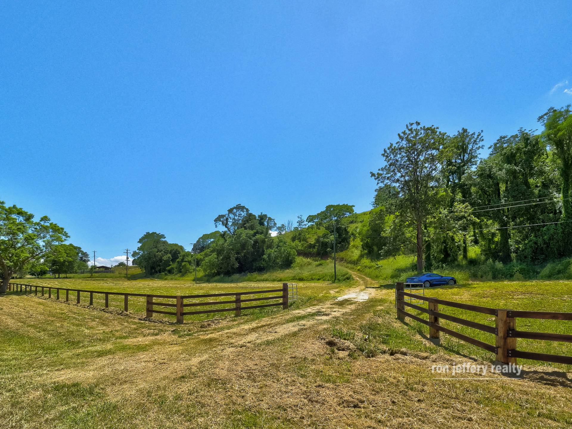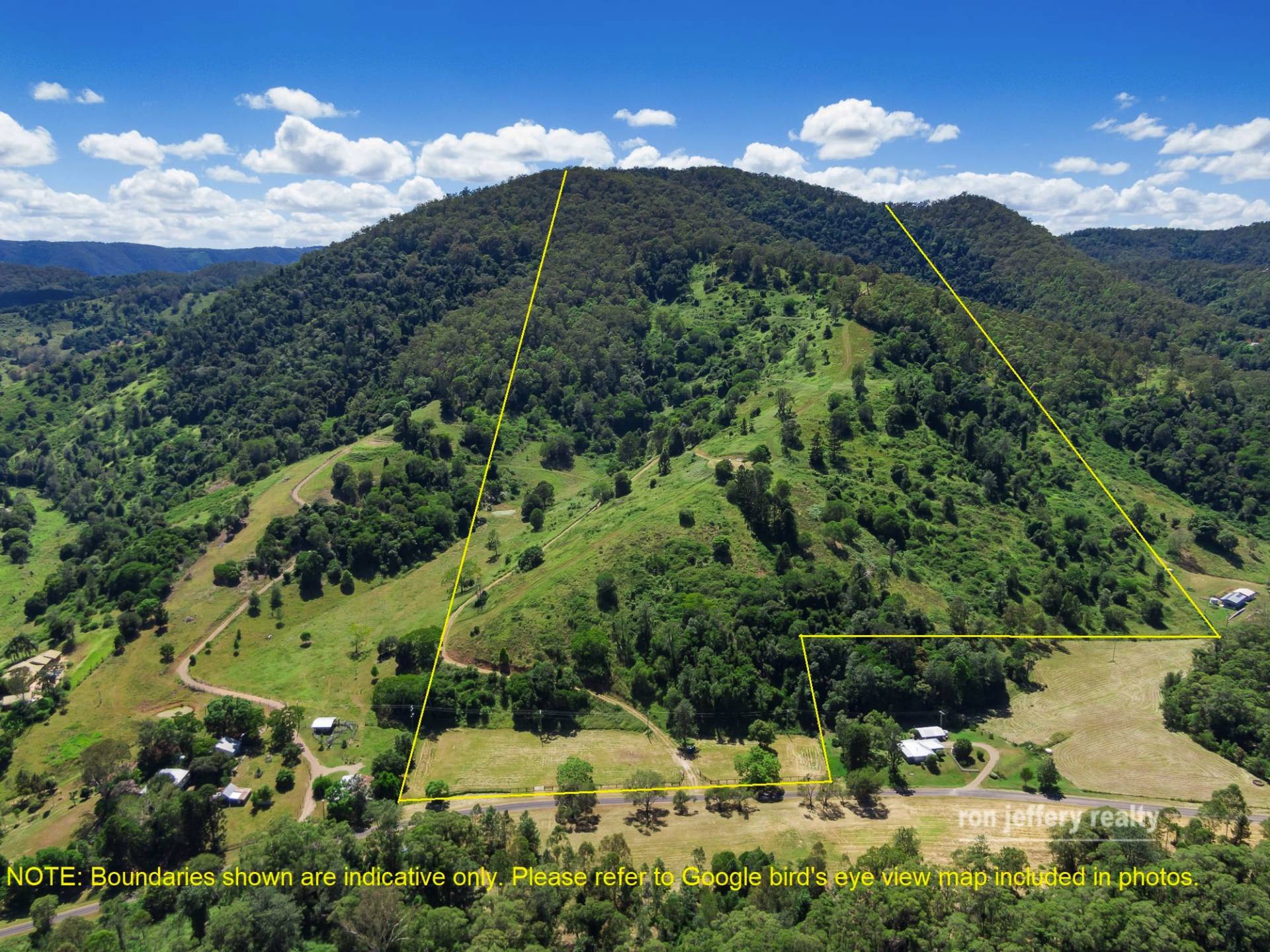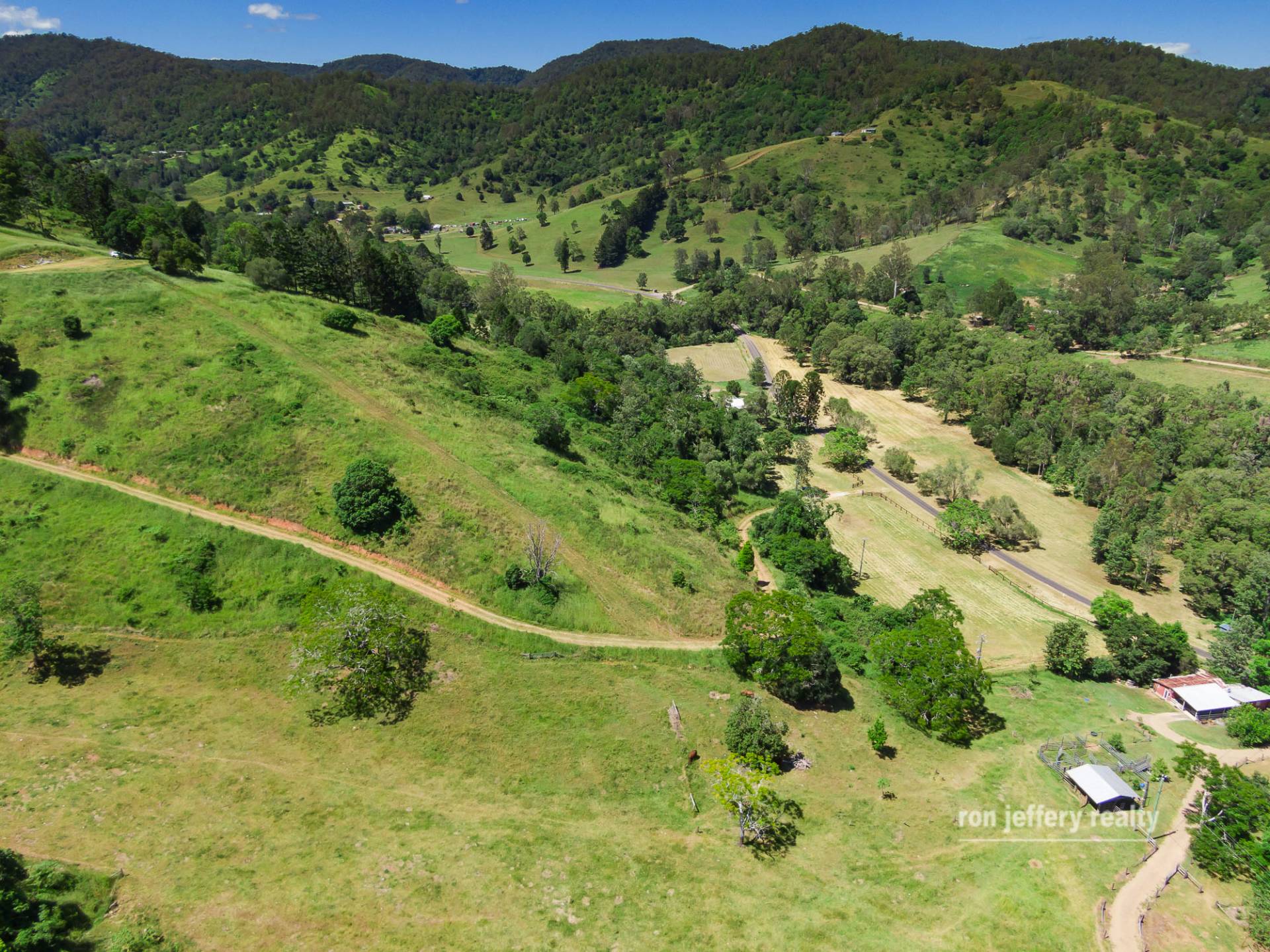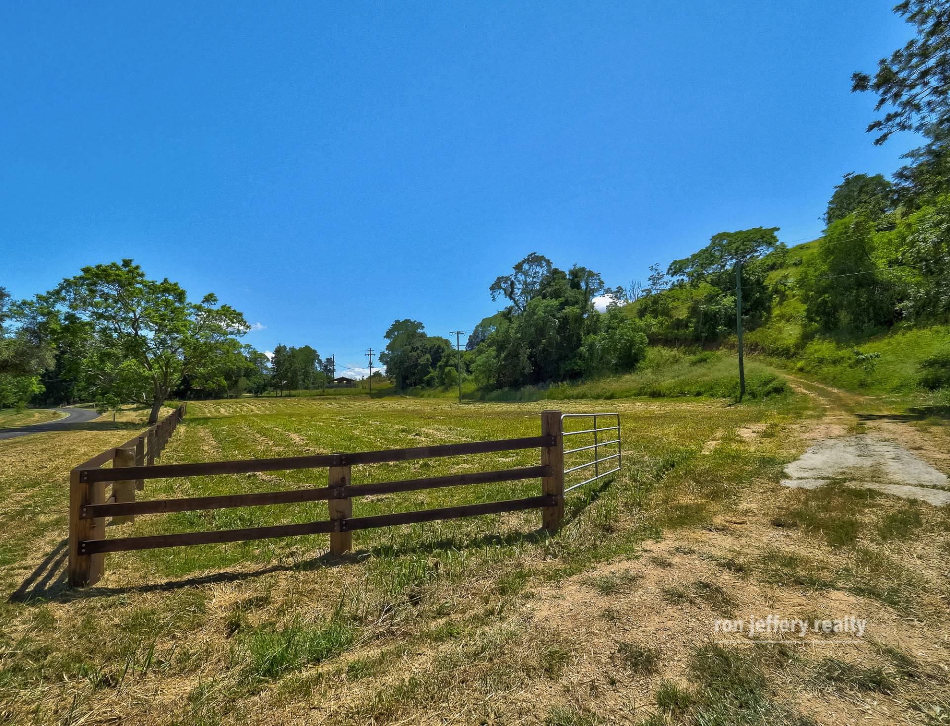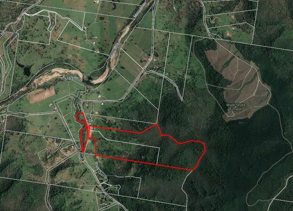 Walli Creek (a seasonal creek) forms part of the boundary, with a narrow strip of productive land on the creek side, together with the fully equipped bore. The other side of the road is flat at the base of the hill, then rises quite steeply all the way to the top of the hill. It backs onto Walli State Forest!