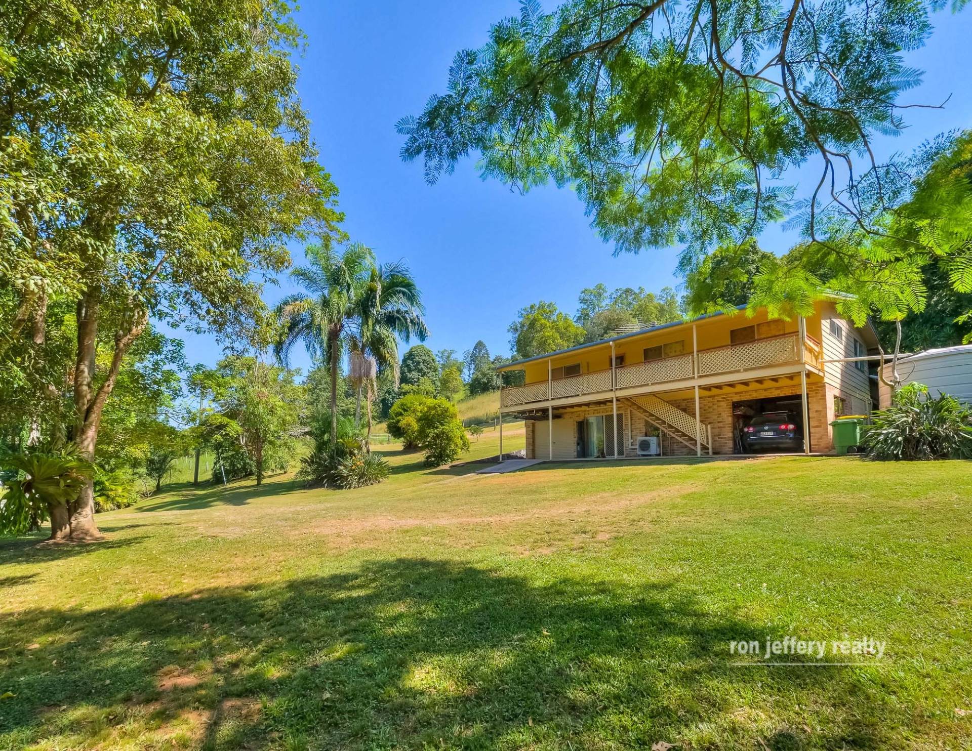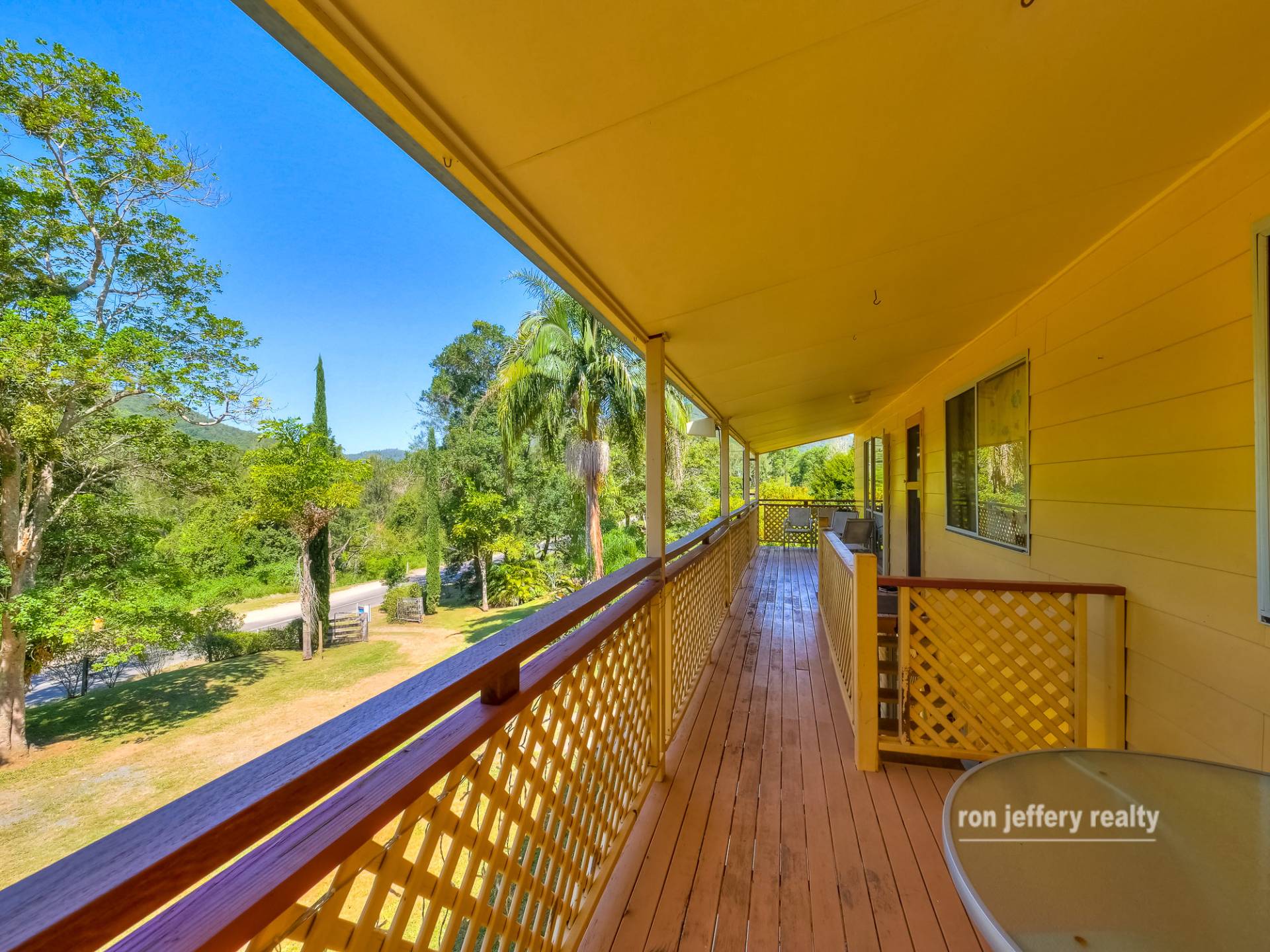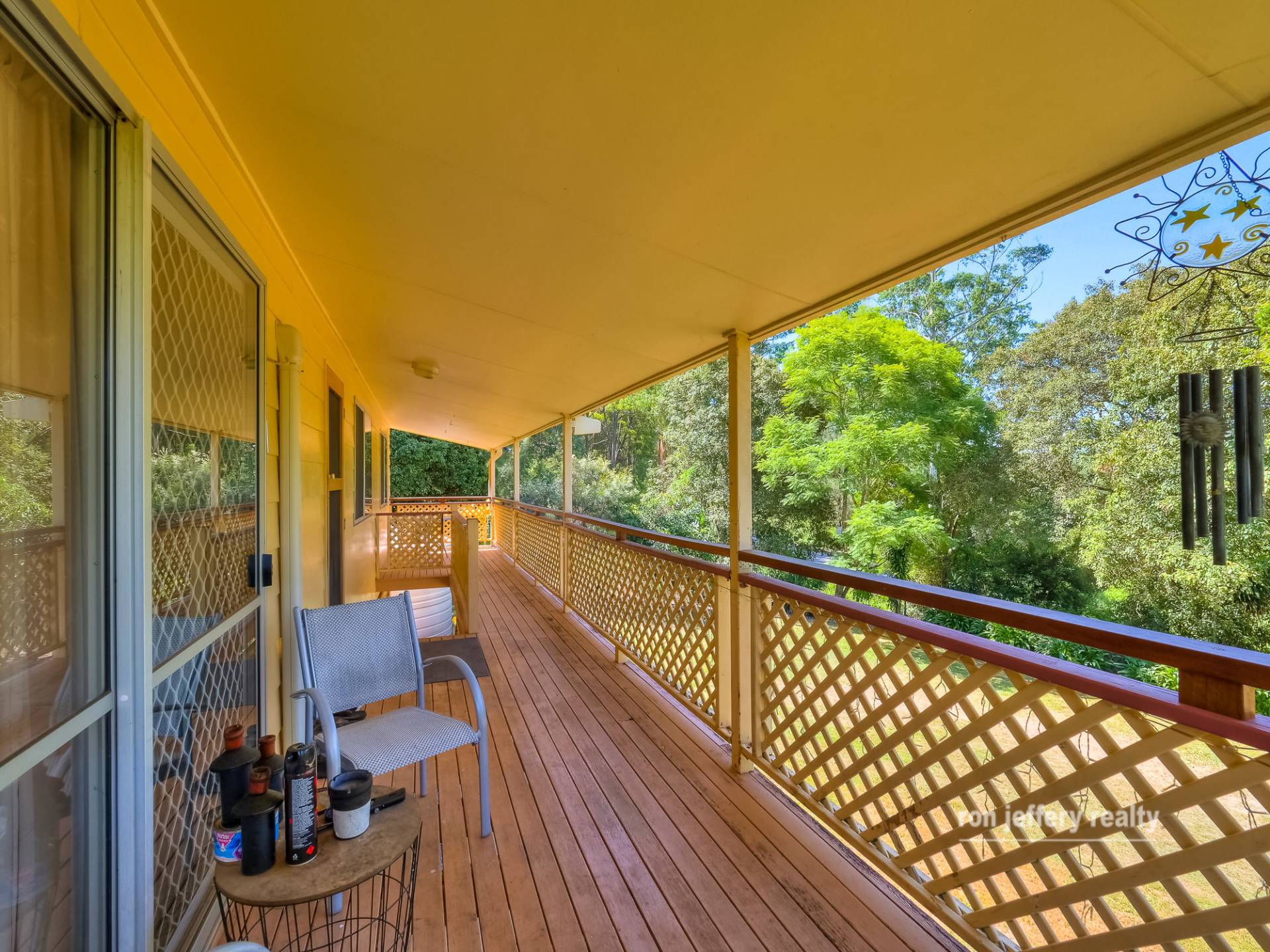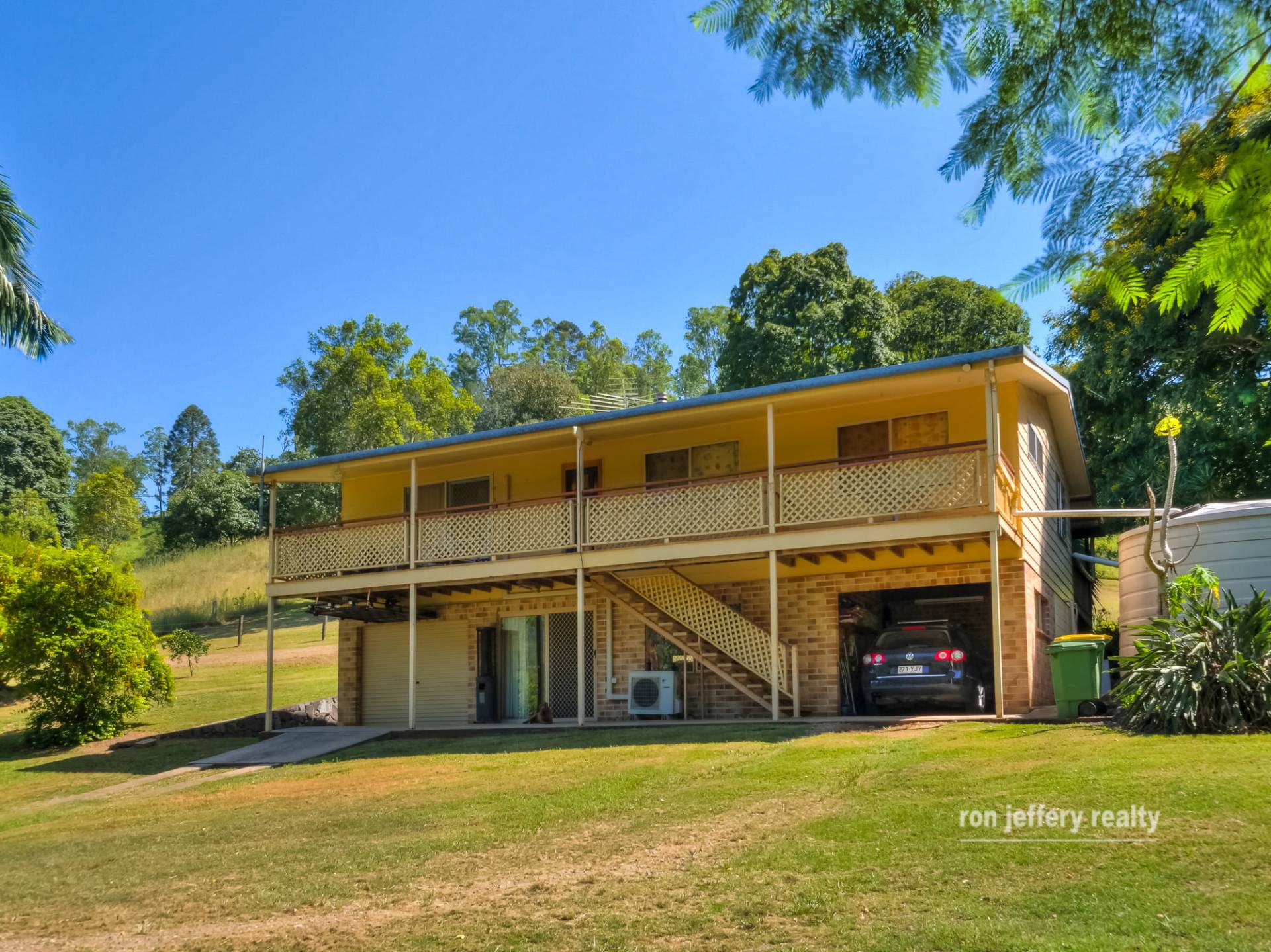 The colonial styled house at 3027 Maleny Kenilworth Rd is HardiPlank clad upstairs, on a solid brick base. It has a full-length veranda at the front and a wide full-length deck at the rear. It is set on the front corner of a 5-acre (1.98 ha) bush block, straight across the road from the Mary River. A retainer wall behind the house helps to create a level house yard that is fully established and well maintained.