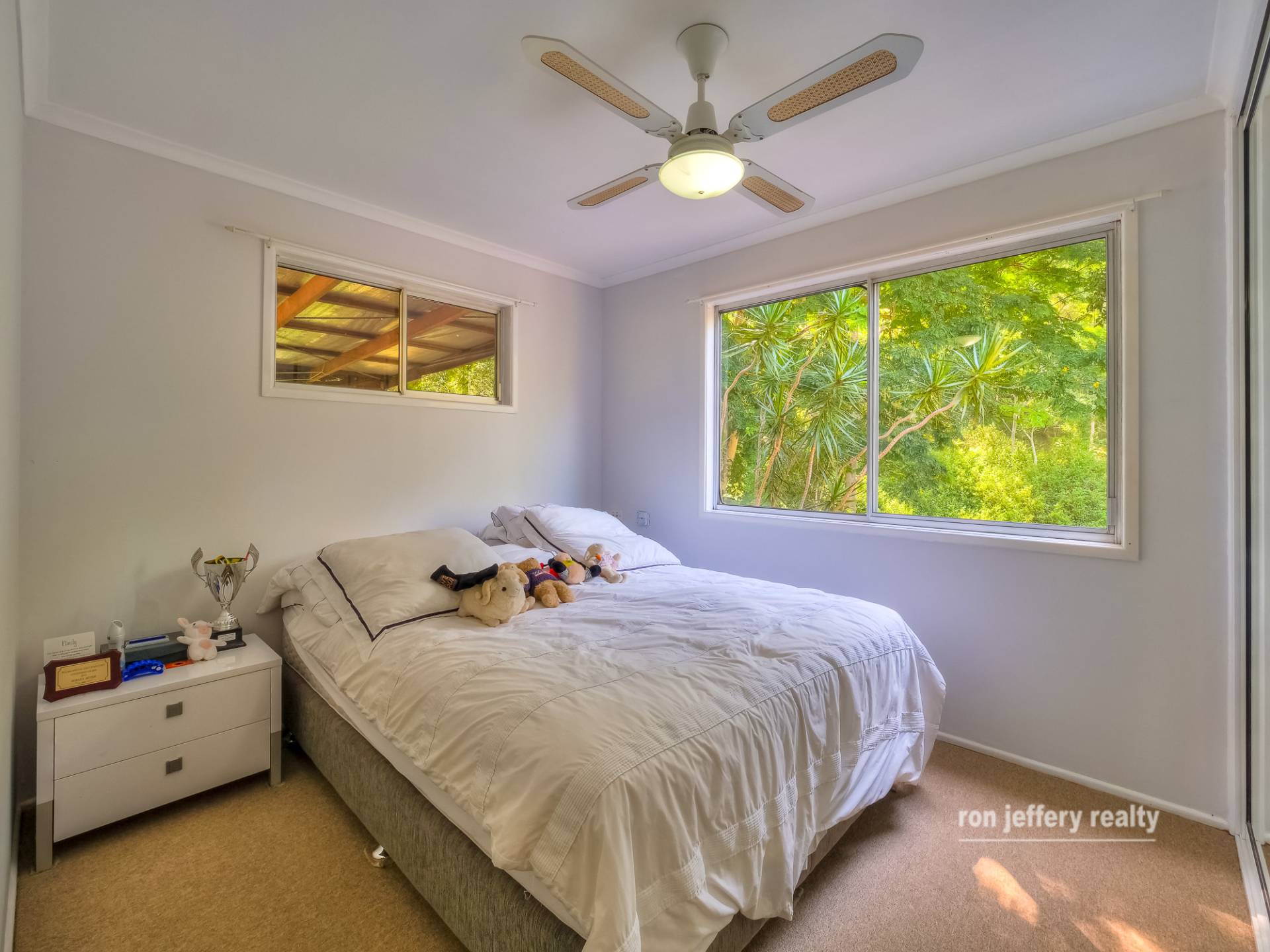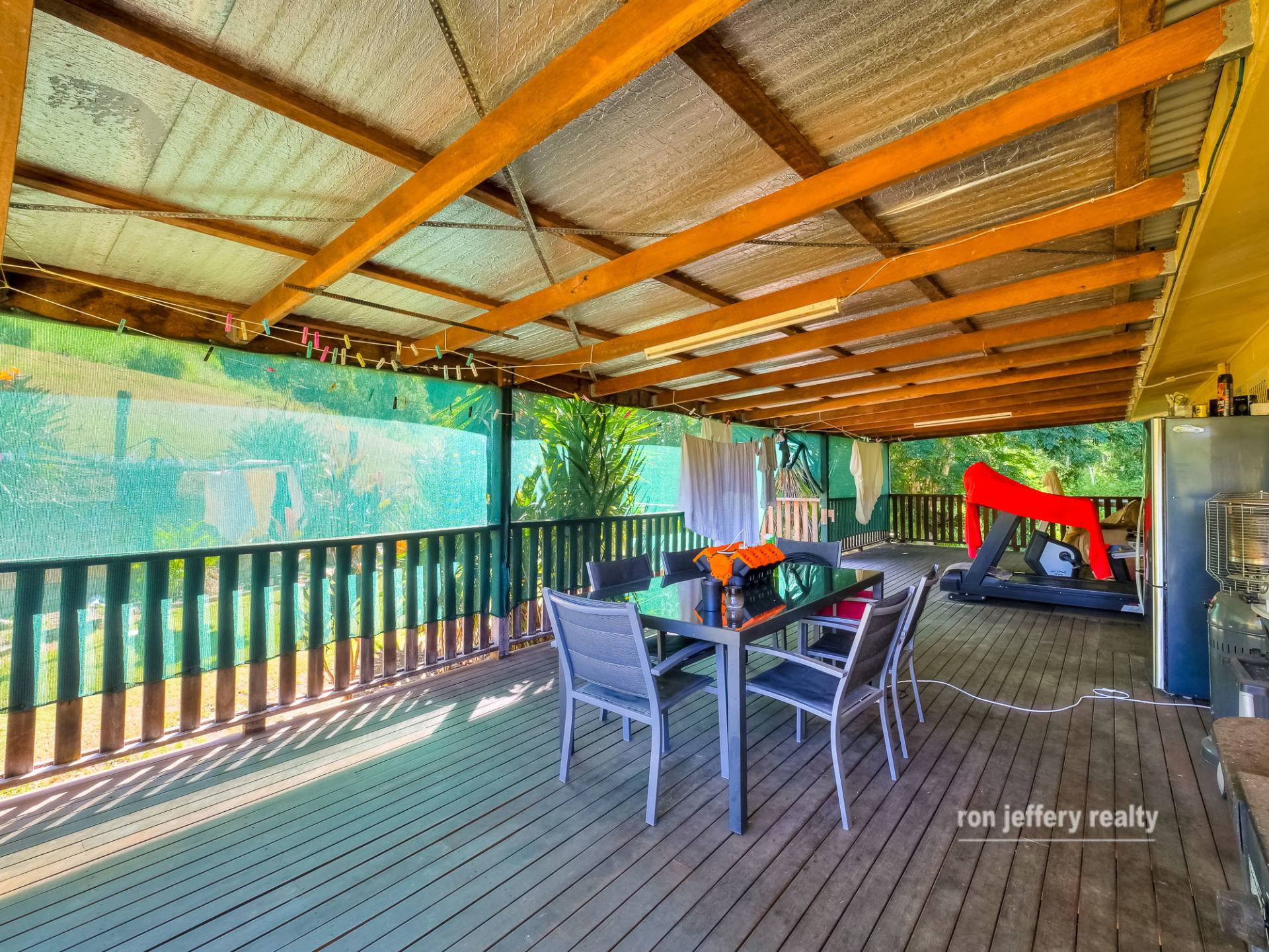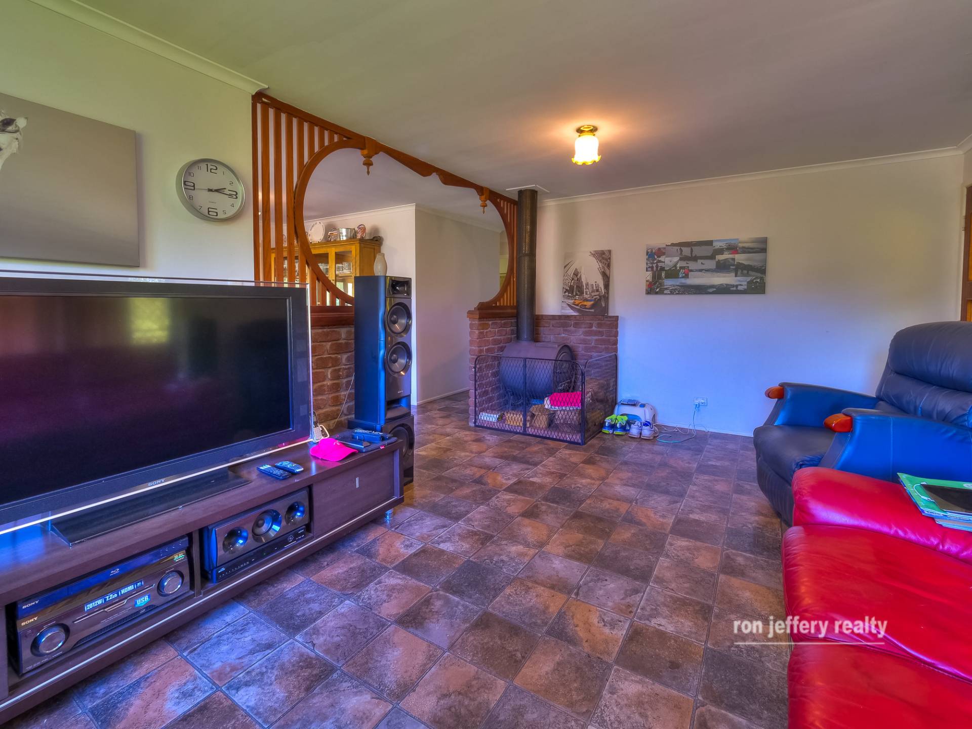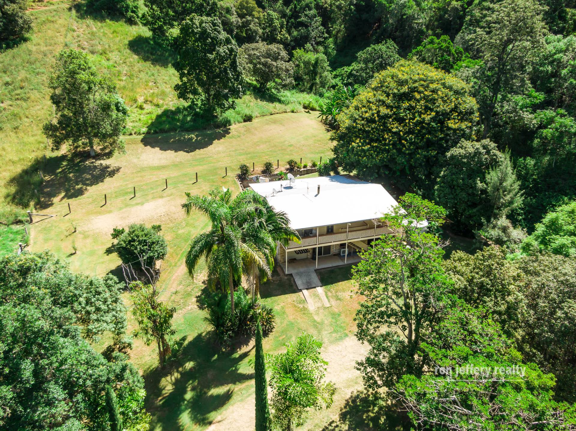 The colonial styled house at 3027 Maleny Kenilworth Rd is HardiPlank clad upstairs, on a solid brick base. It has a full-length veranda at the front and a wide full-length deck at the rear. It is set on the front corner of a 5-acre (1.98 ha) bush block, straight across the road from the Mary River. A retainer wall behind the house helps to create a level house yard that is fully established and well maintained.