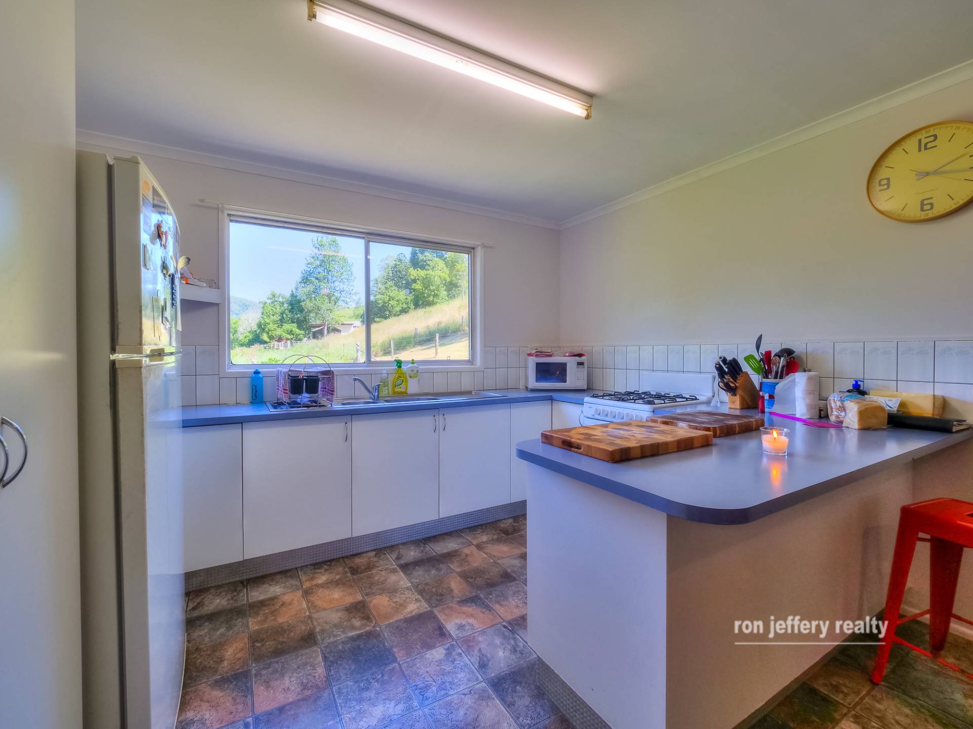 Entering the house from the front, you arrive straight into a loungeroom with air conditioning and slow combustion heating. This room is semi- separated from the dining room and a kitchen that has electric cooking and good storage space that includes a pantry. There are three upstairs bedrooms, all with built-in robes, and one bathroom.