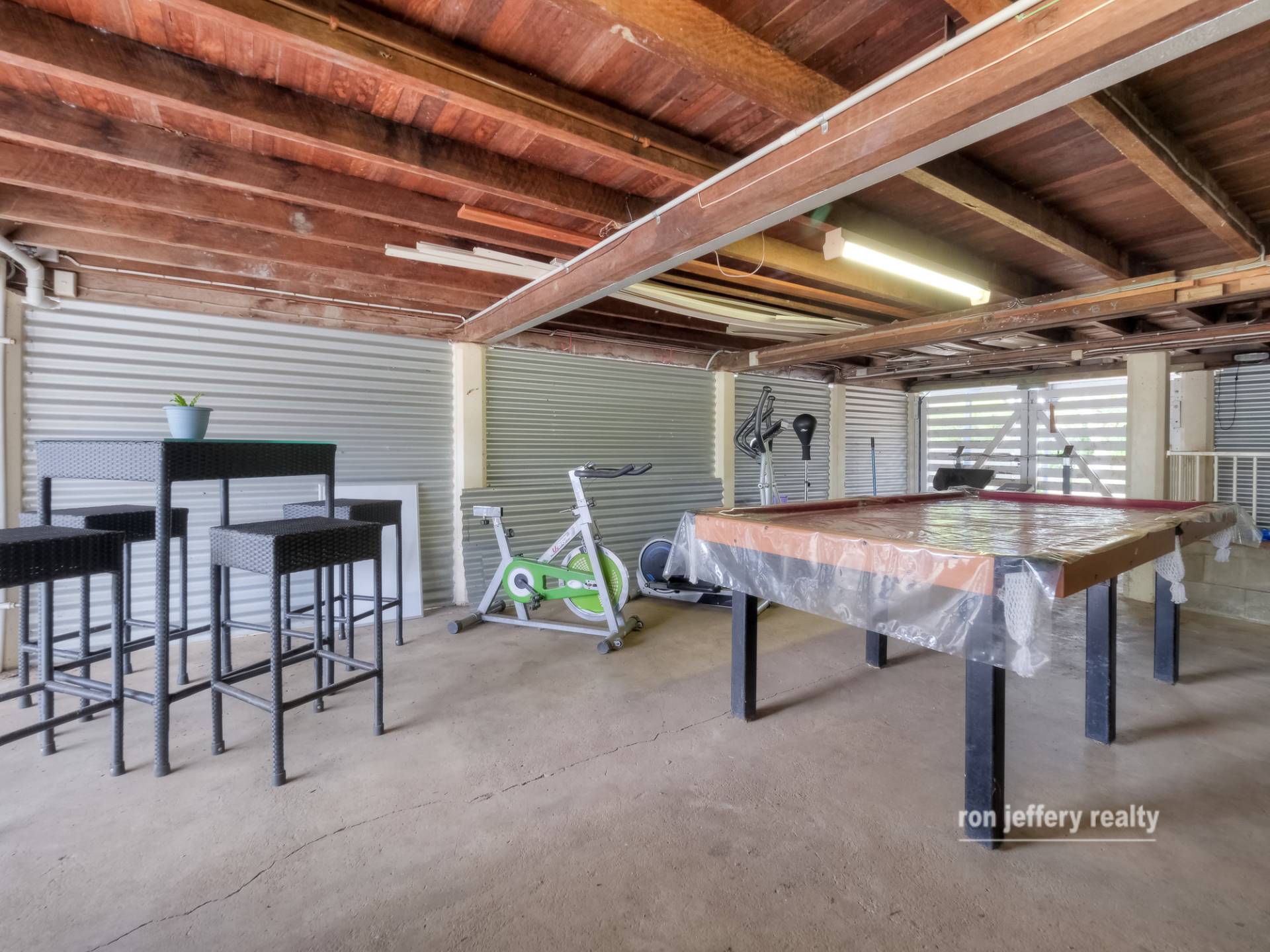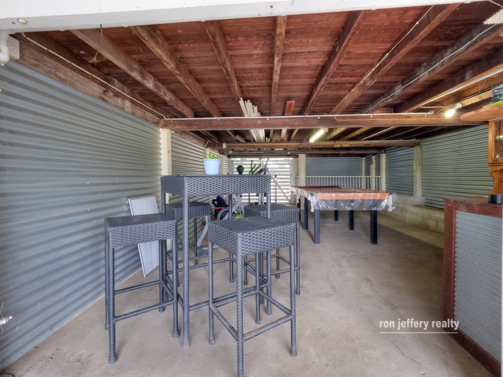 • An under-house rumpus, currently home to the “poolroom”.