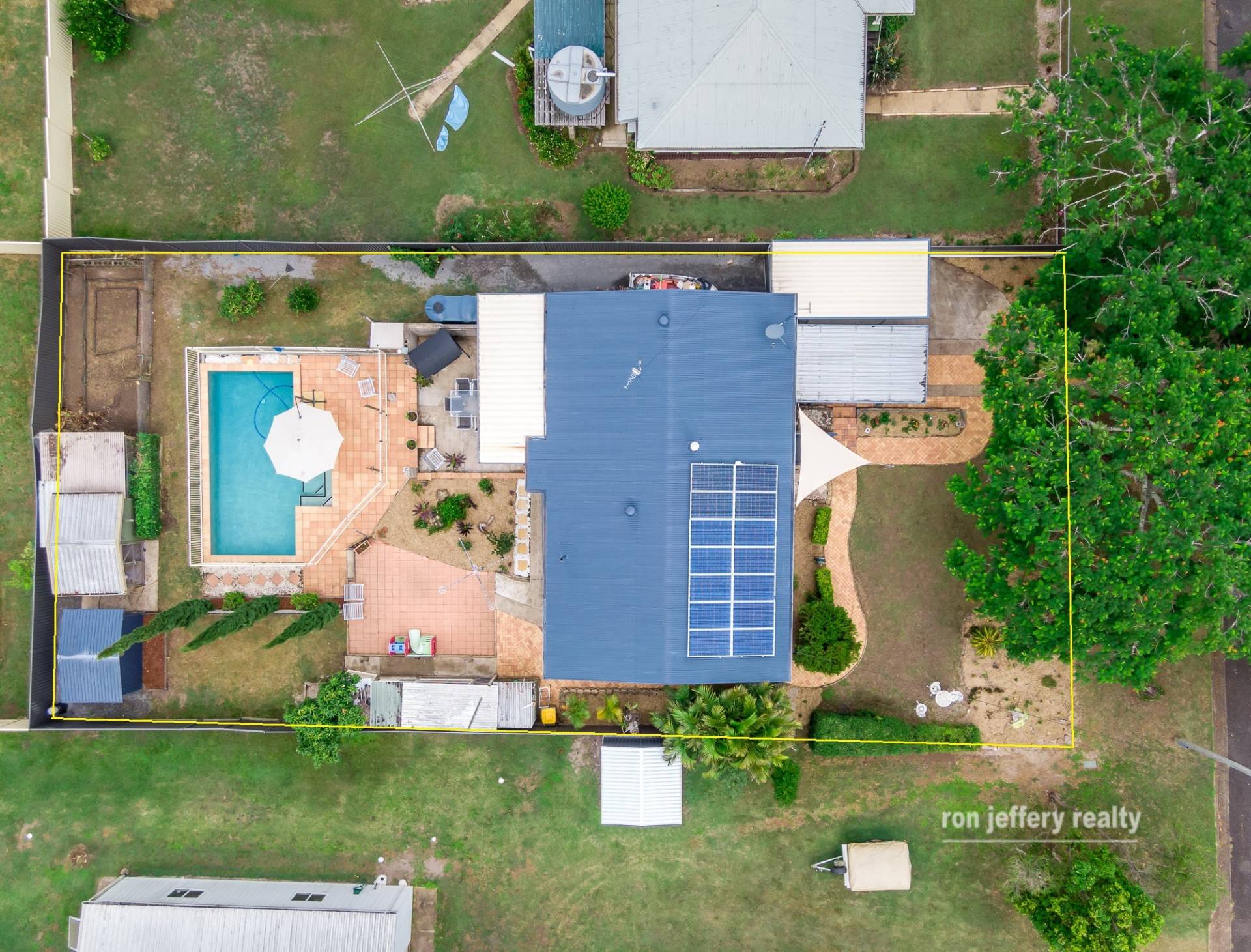 • An inground pool with spa, the centrepiece of a landscaped rear yard.