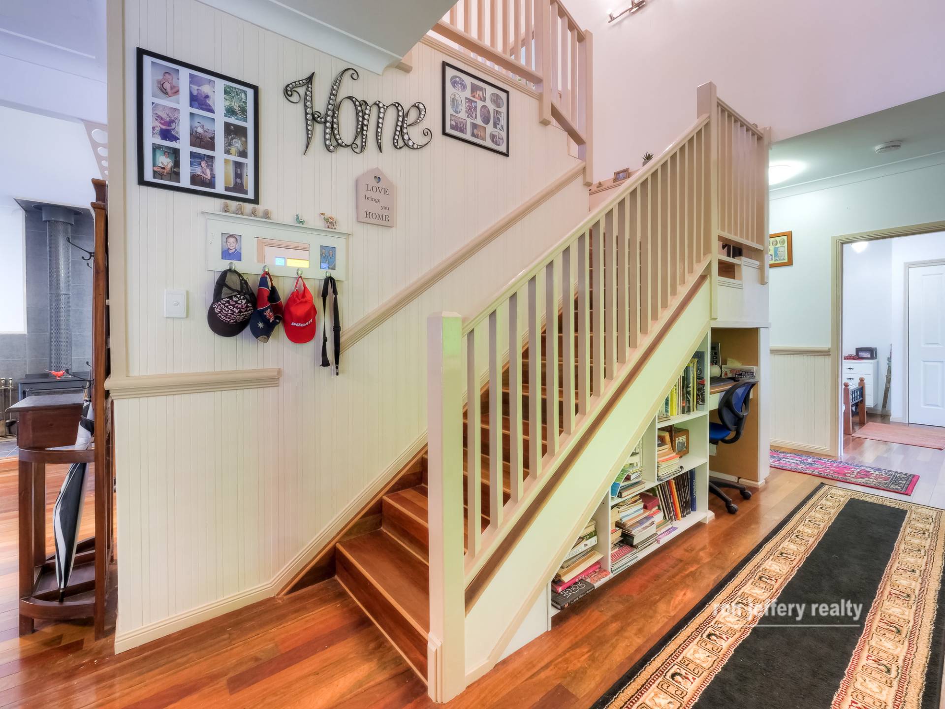 Vehicle parking includes a separate double garage, while additional sheds and under the house cover all storage options. The grounds are established and there is plenty of tank water storage.
