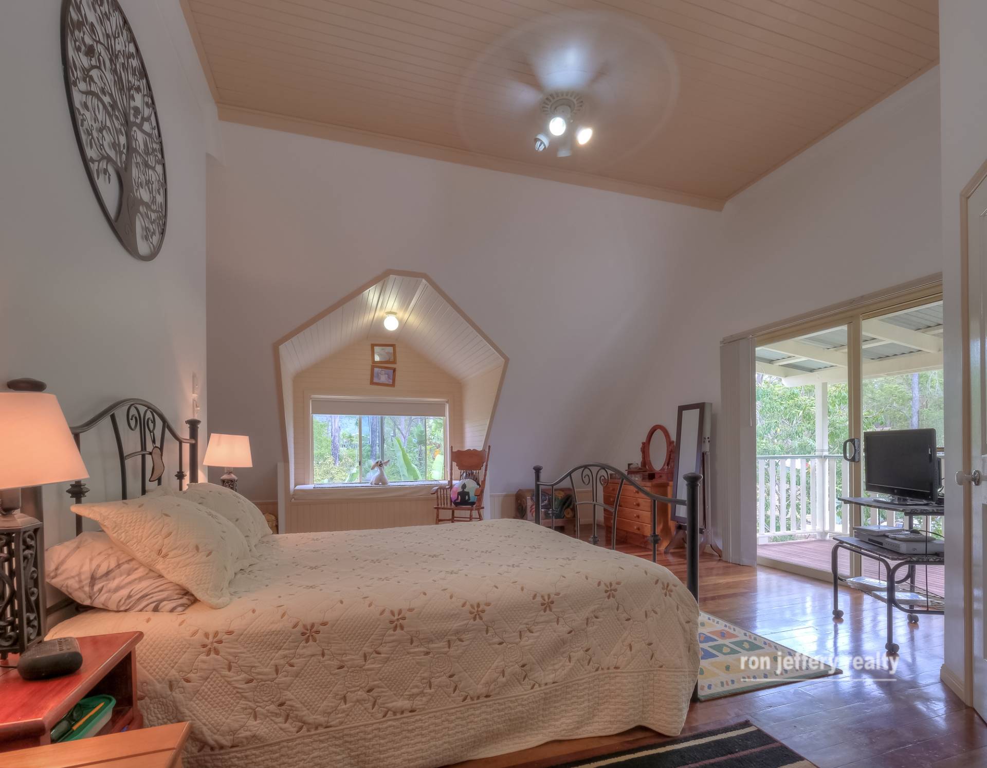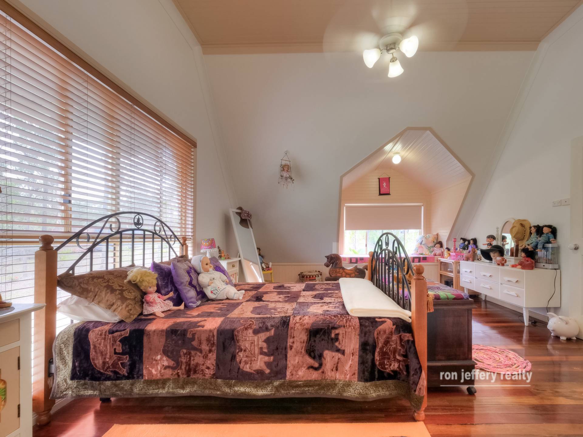 This Imbil property is located towards the end of a cul-de-sac road where the picture-perfect home sits in a natural bush setting on the 4- acre (1.61 ha) block, partially obscured from the road. However, what you can see of the house from the road tends to invites you in, and the semi-circular driveway delivers you right to the front stairs.