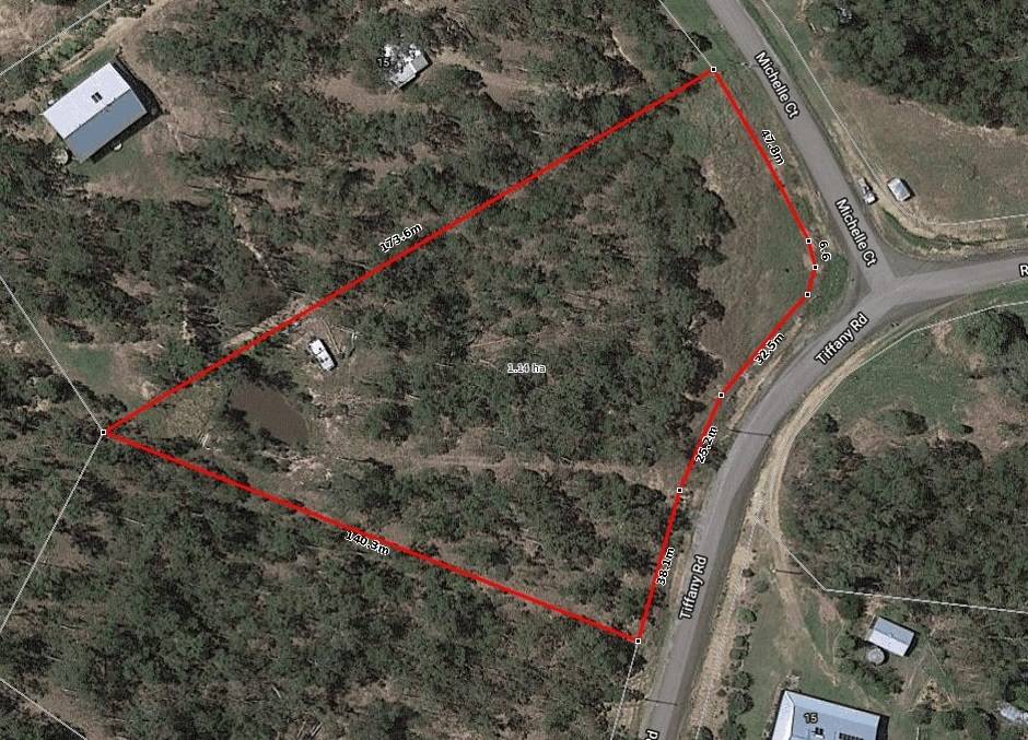 Lot 53 Tiffany Rd sits at the junction of Tiffany Rd/Michelle Ct/Ray Myers Rd. It is a fully fenced block with a large dam. It’s a well-treed block, providing an opportunity for privacy and seclusion. The property has sealed road frontage, and power is available at the boundary.