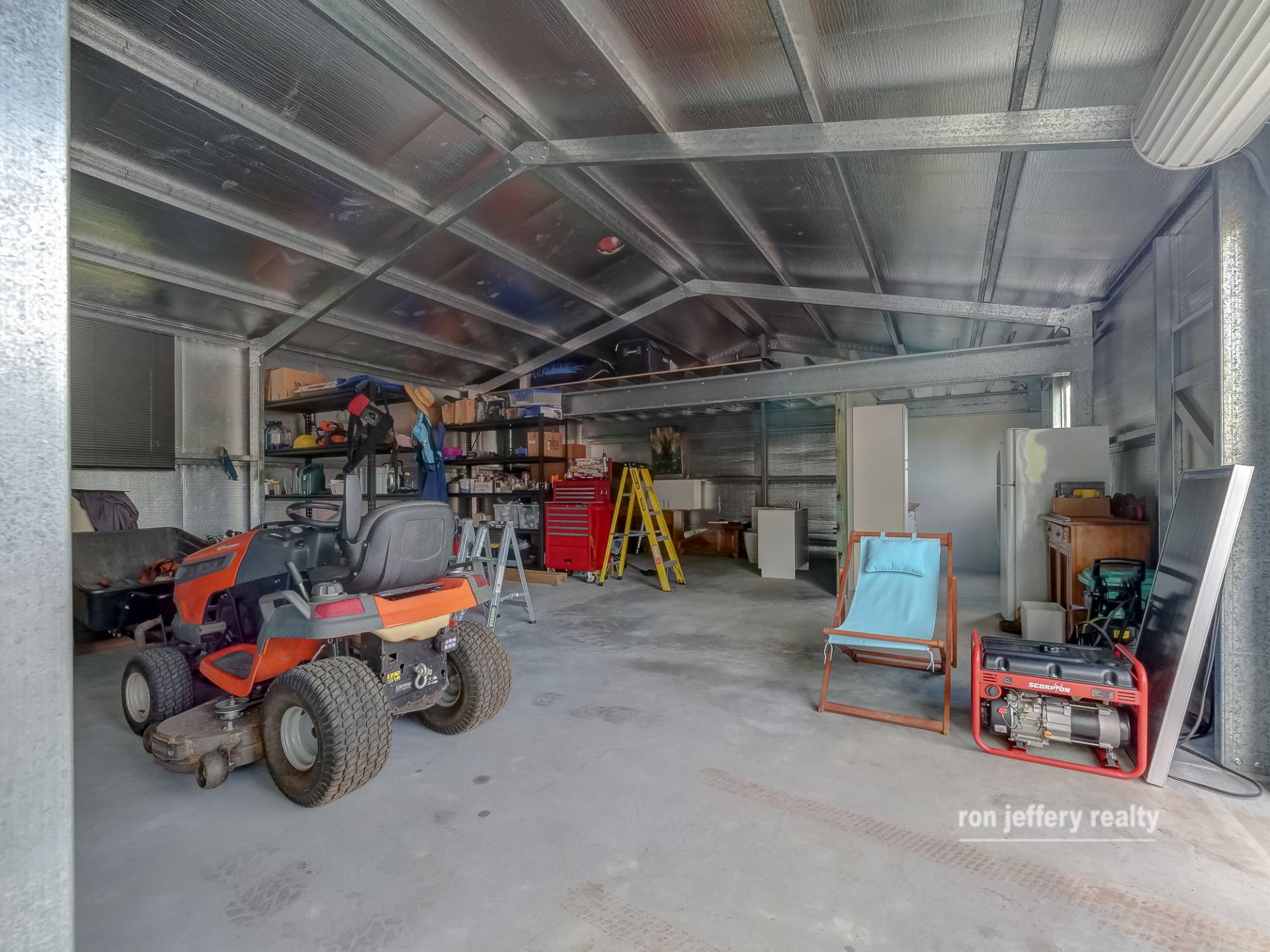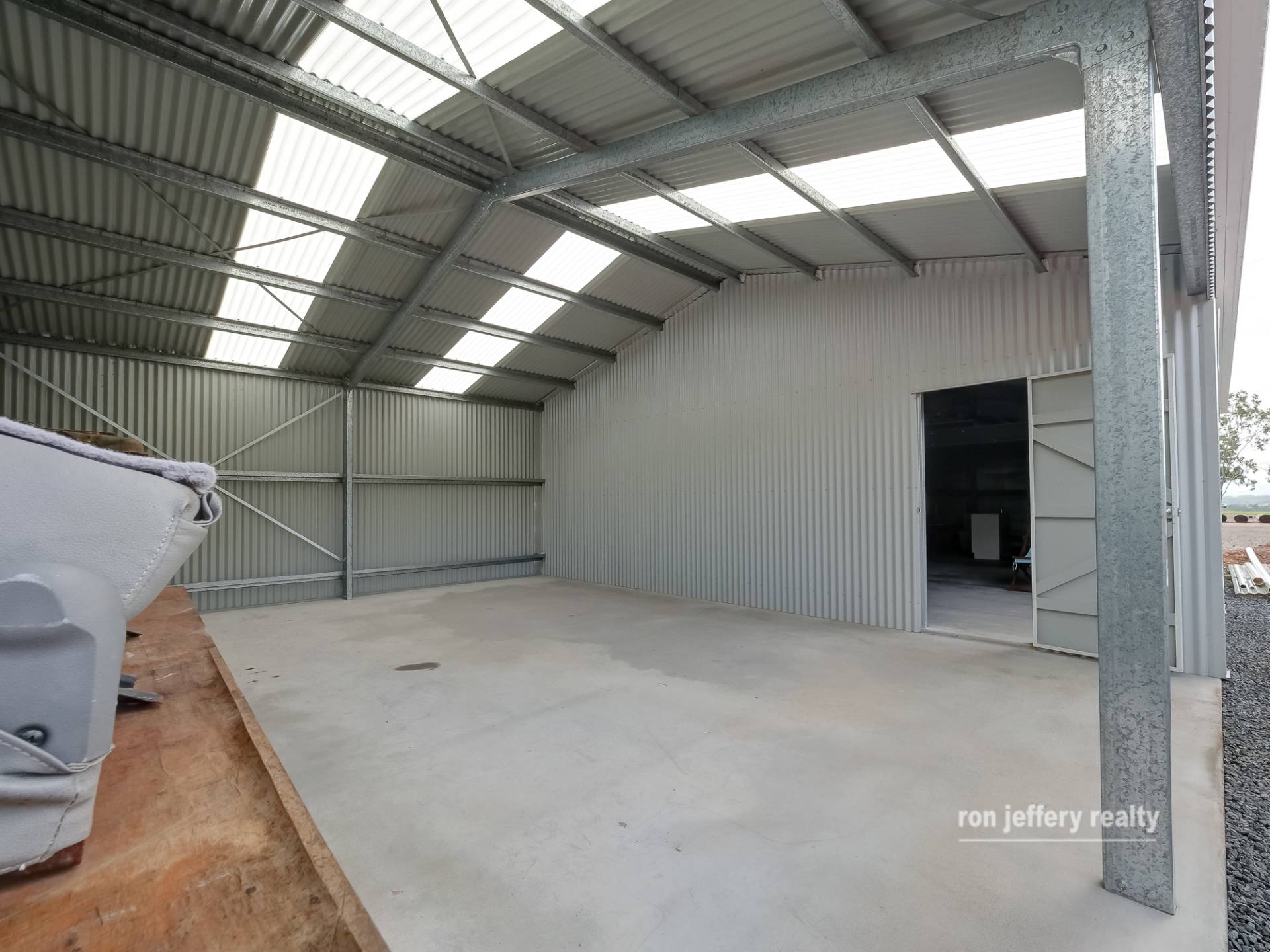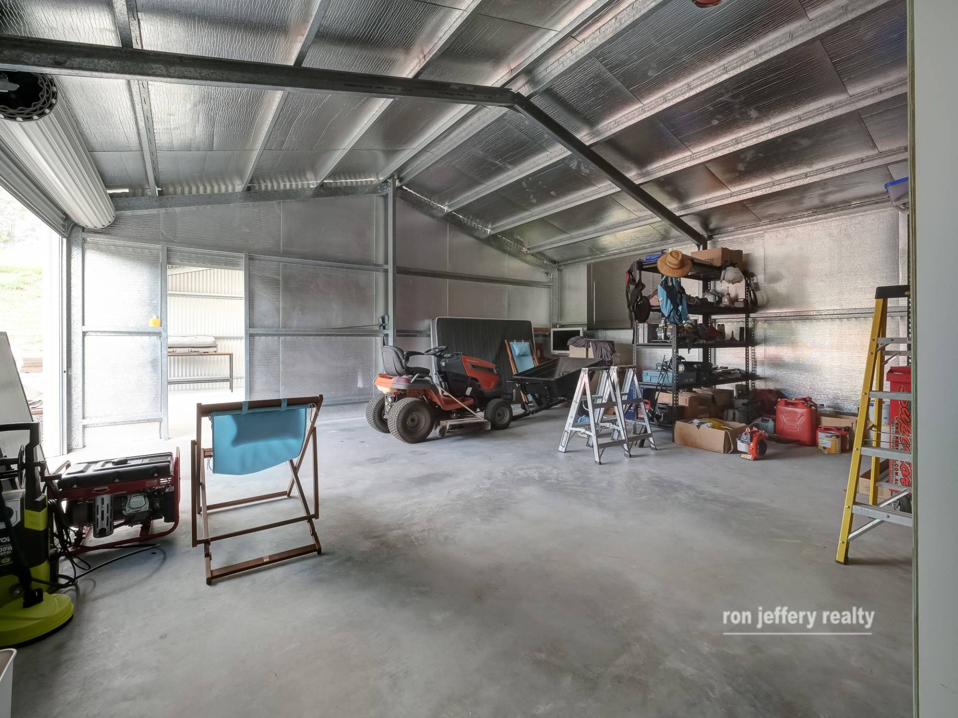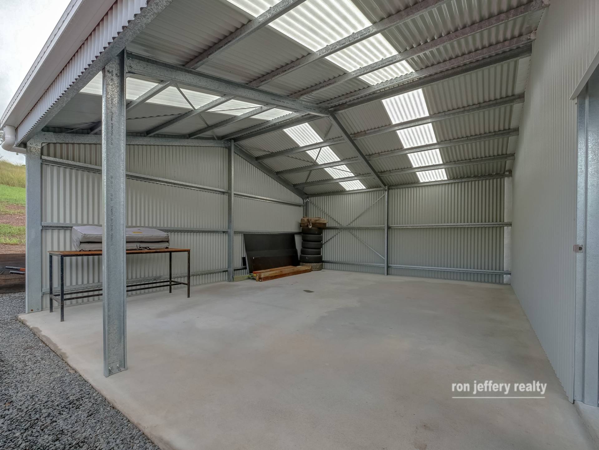 Not only does this block have a level house site, the garage/temporary accommodation base is already in place. The shed is divided between a 2-bay open machinery shed and a fully enclosed 3-bay section partially set up as living accommodation. It has a concrete slab right through, power is ready to connect and the water tank is in place.