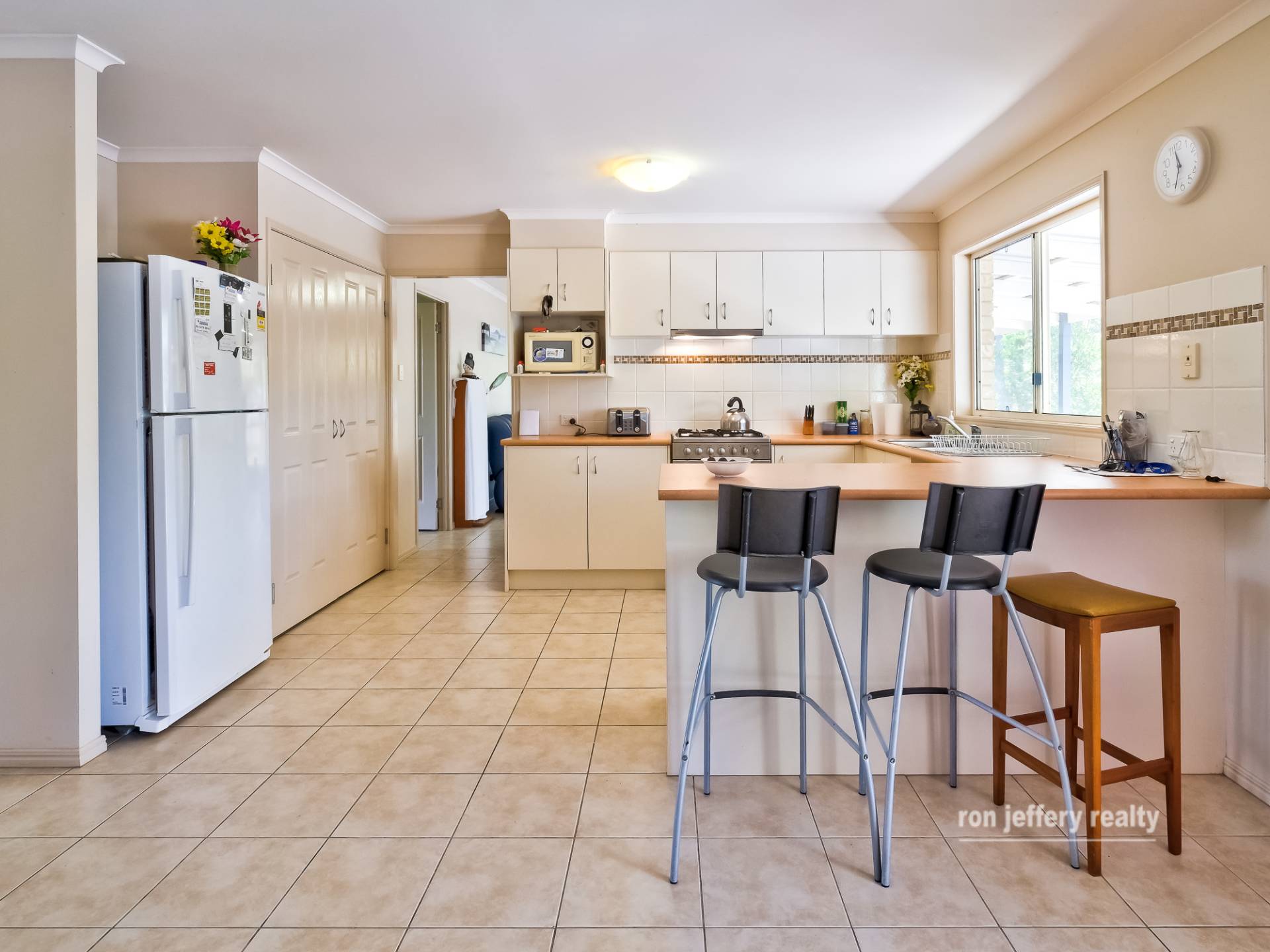 From the veranda, you enter the formal loungeroom, a generous sized room separated from the more casual kitchen/family room. The kitchen has gas cooking and plenty of cupboard storage and the whole house has tiled floors, including the four bedrooms. The main bedroom has a walk-in robe and en-suite. The main bathroom has a separate toilet. While the front of the home has the gravel forecourt, the back has lawn leading to a fully enclosed veggie garden. It keeps the fauna in the bush, instead of the veggie garden.