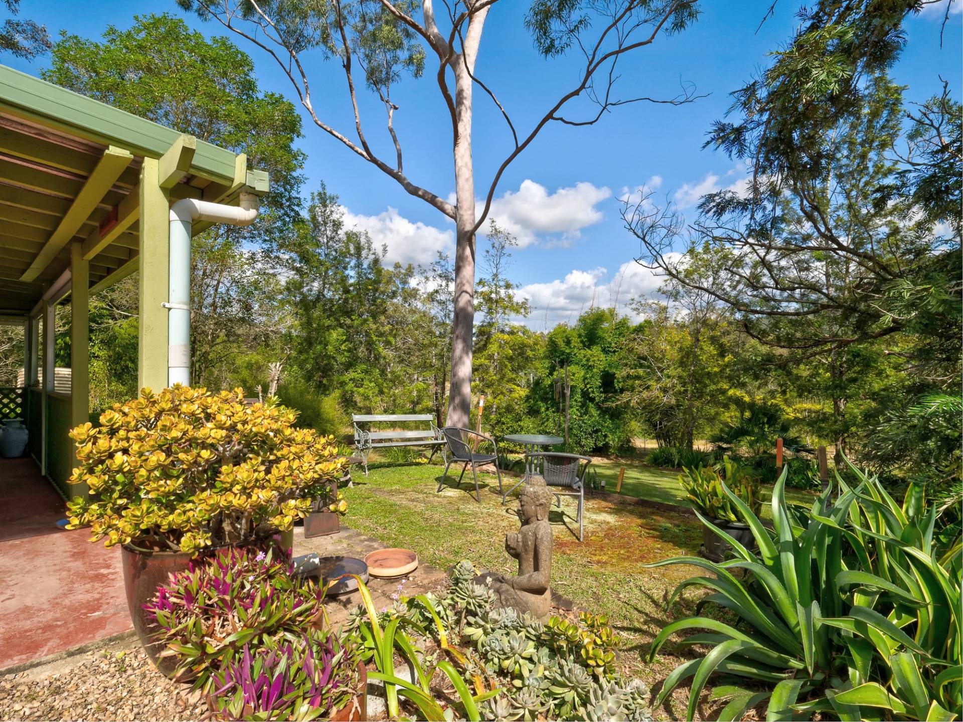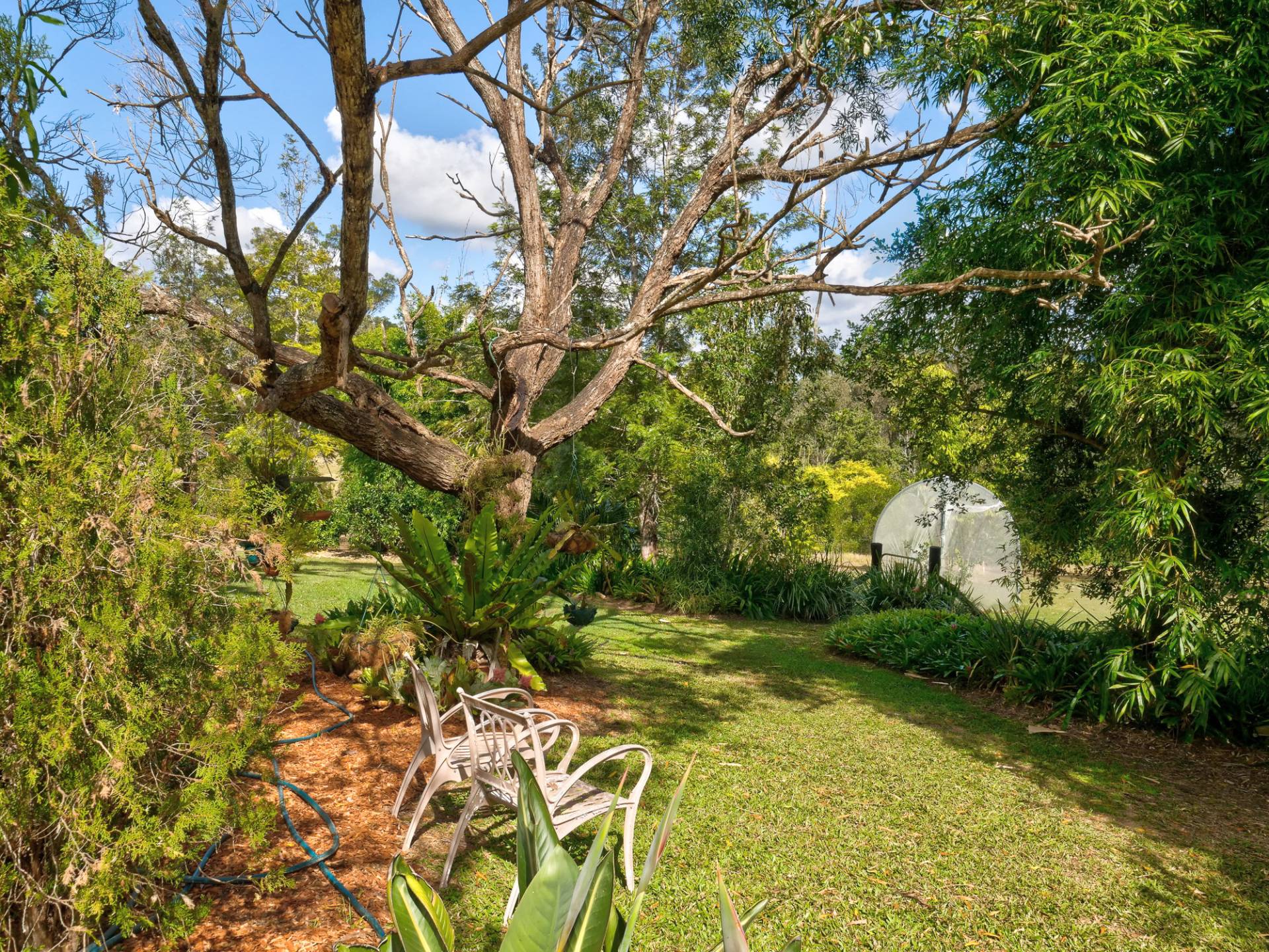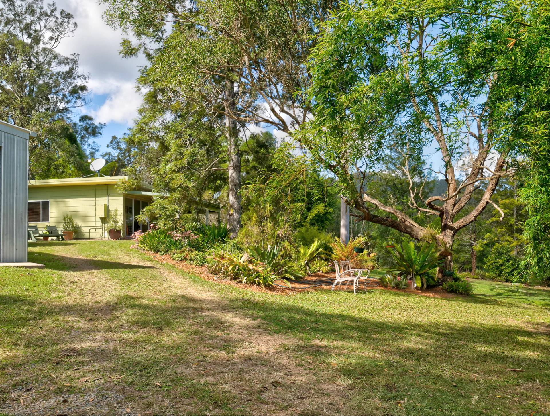 The setting for the cottage at Chapple Rd Cambroon is magic with mature trees, established grounds, meticulously-maintained lawns and the unmistakable sound of Bellbirds. There are a number of places to sit in the garden to enjoy the serenity. It’s perfect! It is set among larger properties, affording the cottage total privacy.