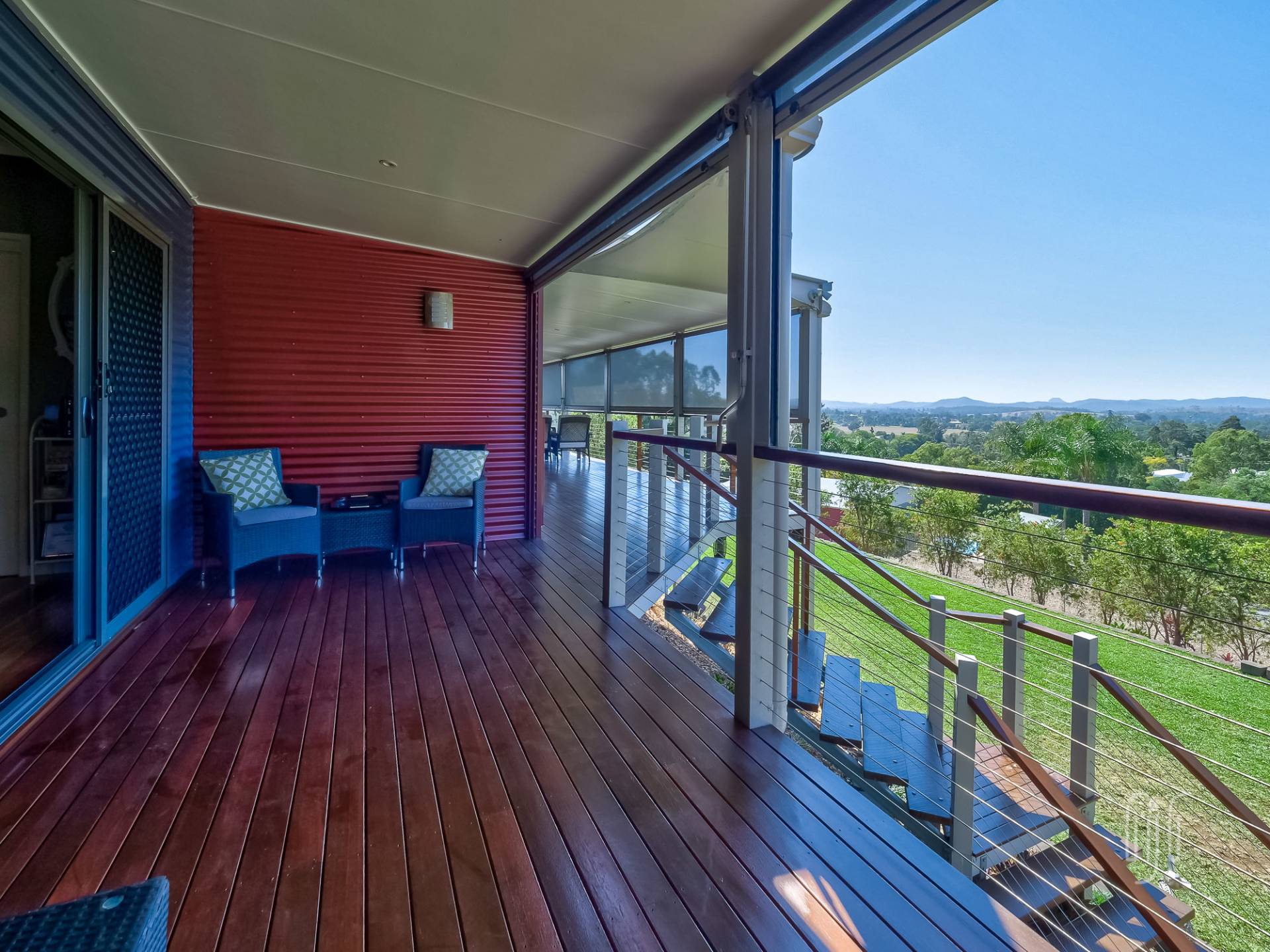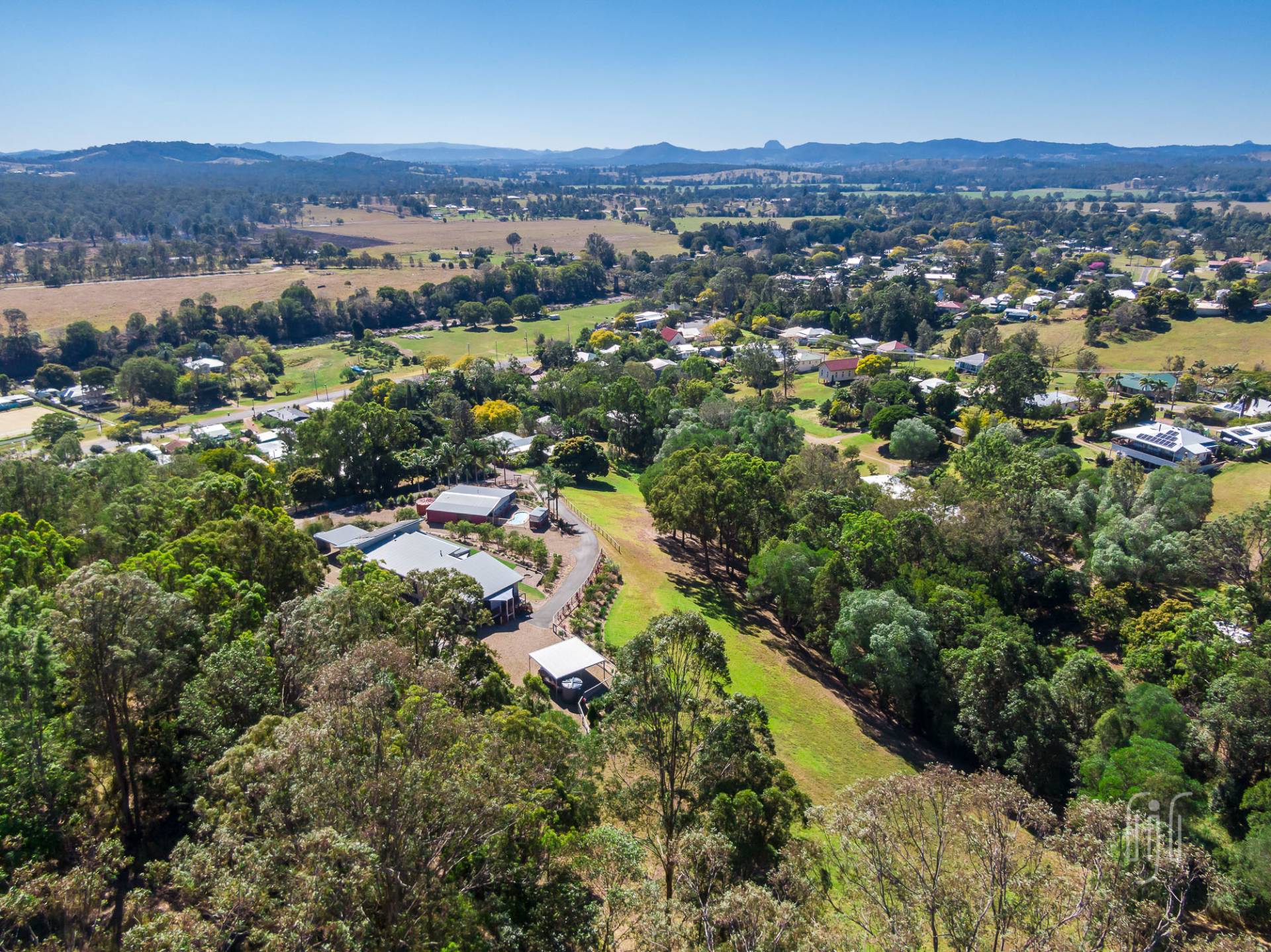 Mary Valley Views is sited on the very edge of the village of Imbil. The home, with access off York St, is largely hidden from view. However, the house has a commanding north-easterly view over the village and beyond.