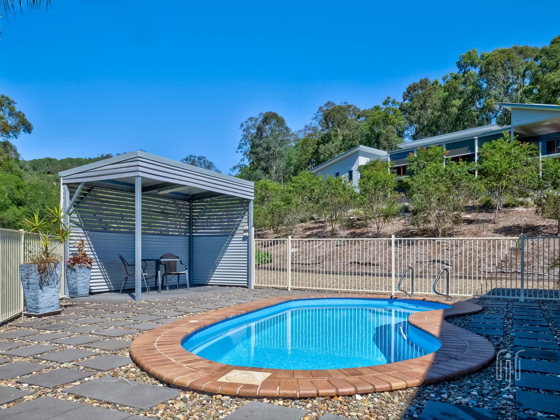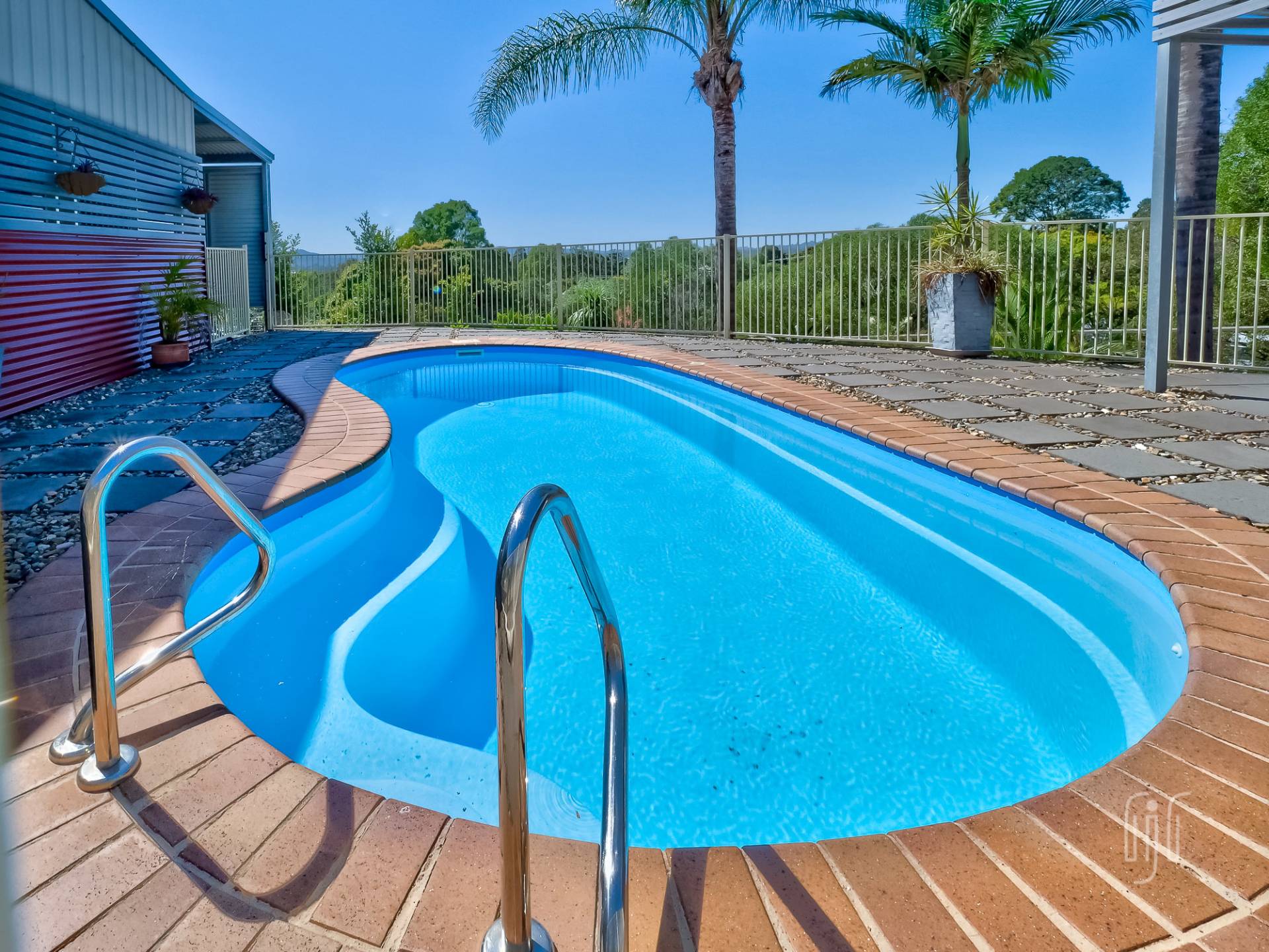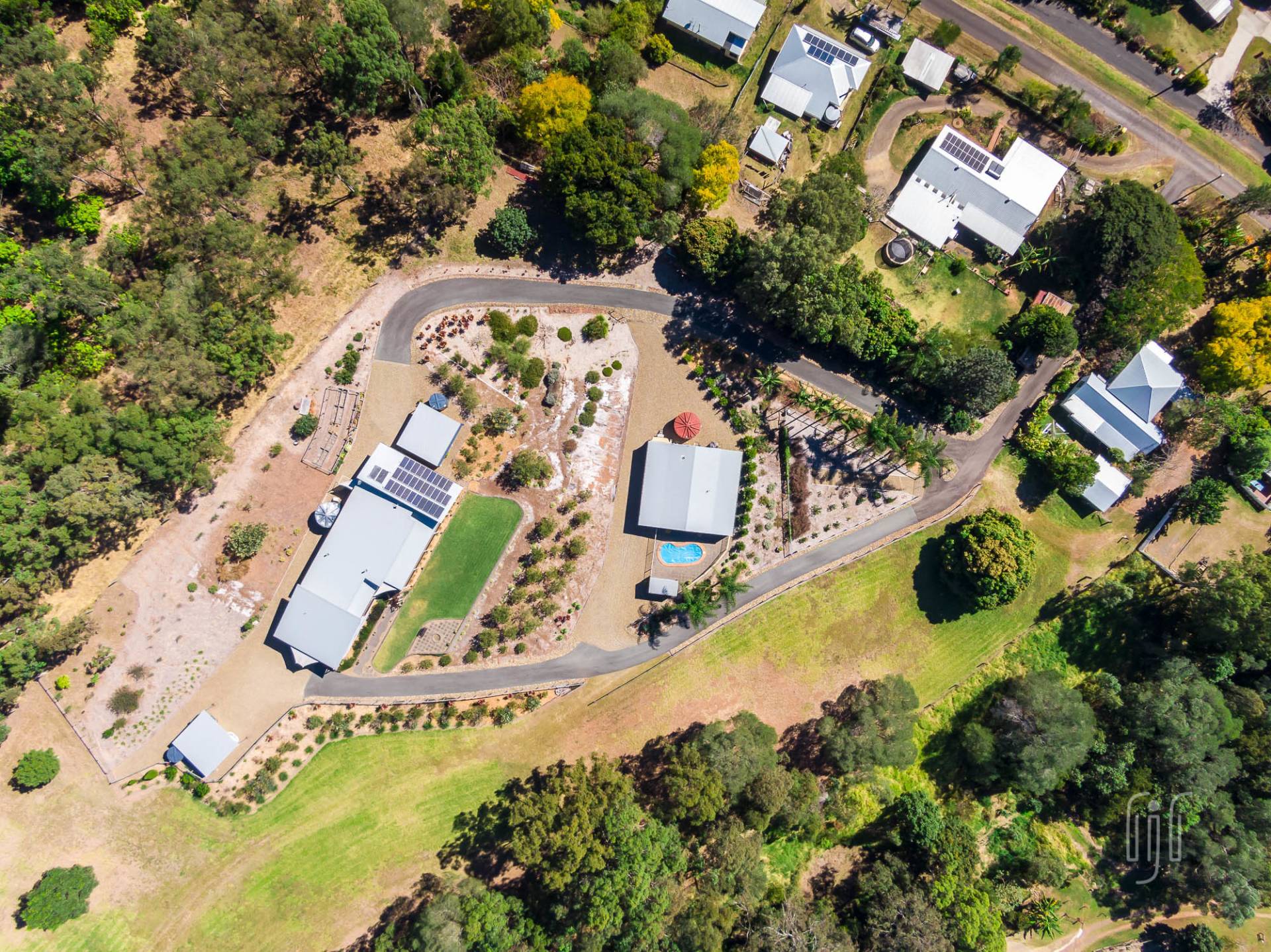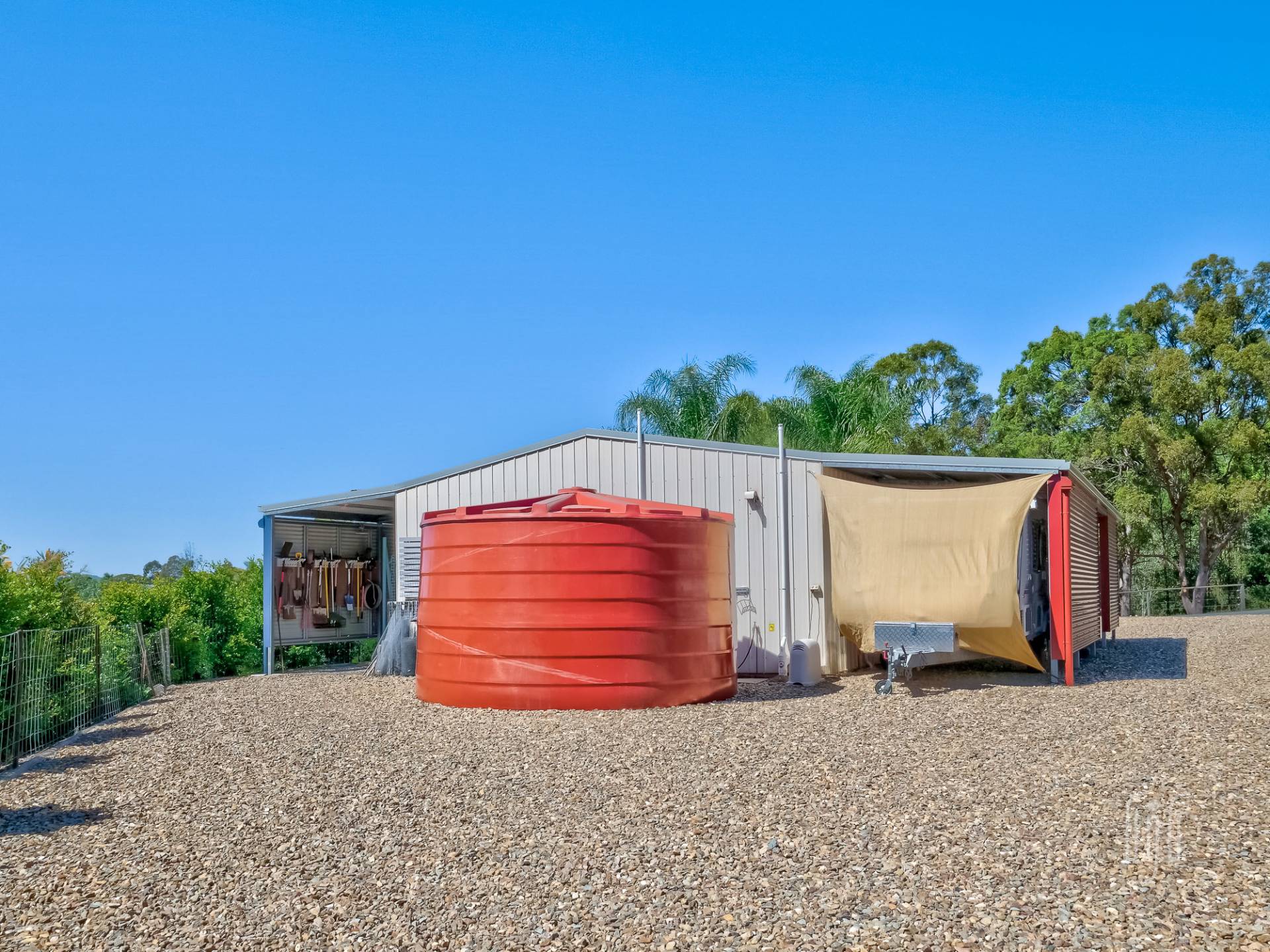 There are double carports on both sides of the house (guest & owners) plus a 4-bay garage with two side annexes. The garage, formally used as living accommodation, has bathroom facilities and adjoins the in- ground pool. The property has good tank water storage as well as town water and sewerage. The 4 acres (1.72 ha) are well fenced and include a paddock suitable for a horse or family pet. Solar power back to the grid is a bonus!
